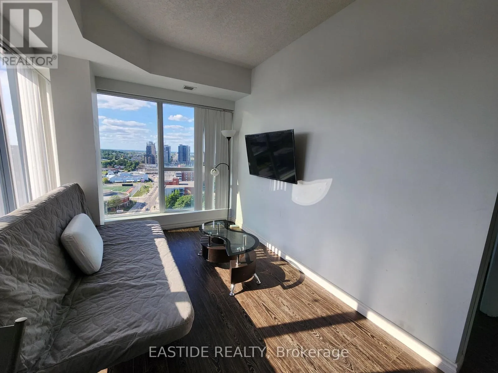 Cross Streets: KING ST N/UNIVERSITY. ** Directions: SOUTH/EAST CORNER OF KING ST&JAMES ST. Situated in the heart of the city, Close To Uptown Waterloo, just beside Wilfrid Laurier University And Park, Few Minutes Driving To University Of Waterloo. 2 Br With 2 Washrooms. Bright And Spacious 867 Sq Ft of living space. Modern Finishes With 9-Feet Ceiling, Custom Kitchen Cabinetry, Stainless Steel Appliances And High Quality Laminate Wood Floors. Large Den With Window Can Be Used As 3rd Bedroom. The bed room features extra-large windows, flooding the space with natural light and enhancing the airy ambiance of the unit. Take advantage of the prime rental income potential, surging population growth, excellent transit options. Discover urban living at its finest in this contemporary suite at K2 Condominium. Ideal for students, professionals, and families, this location offers endless opportunities for both residents and investors alike. (id:27476)