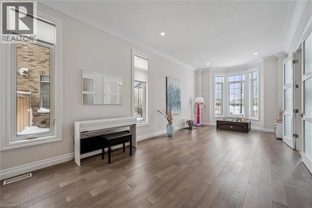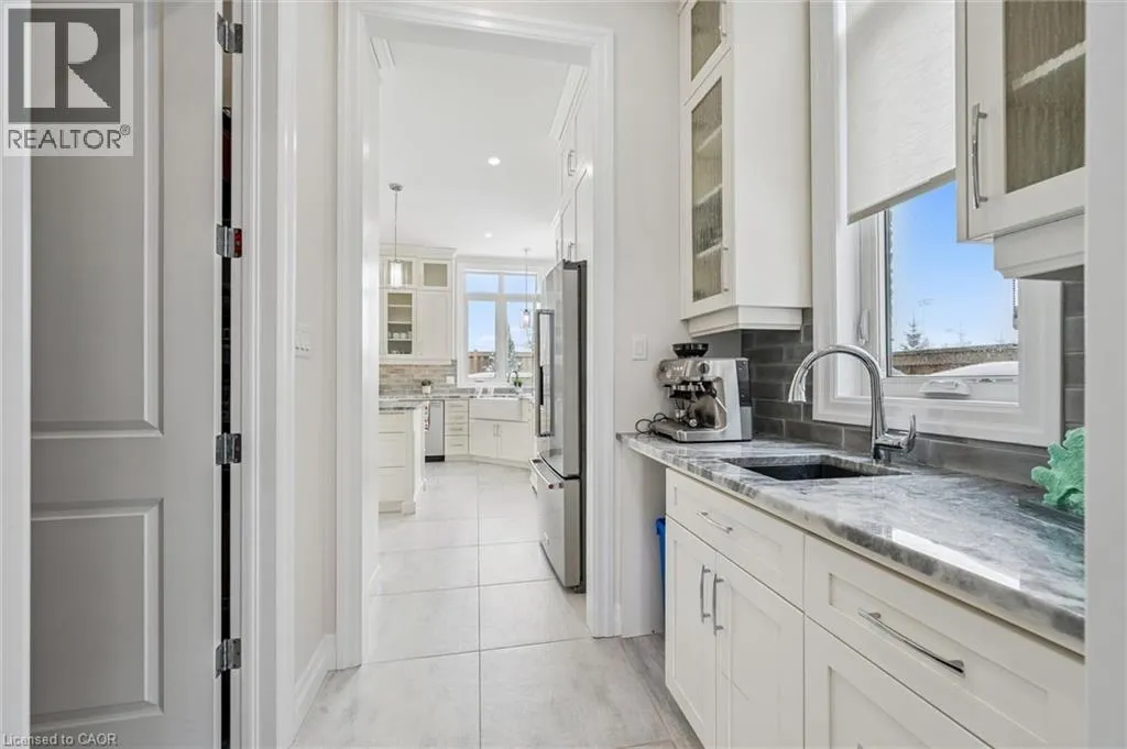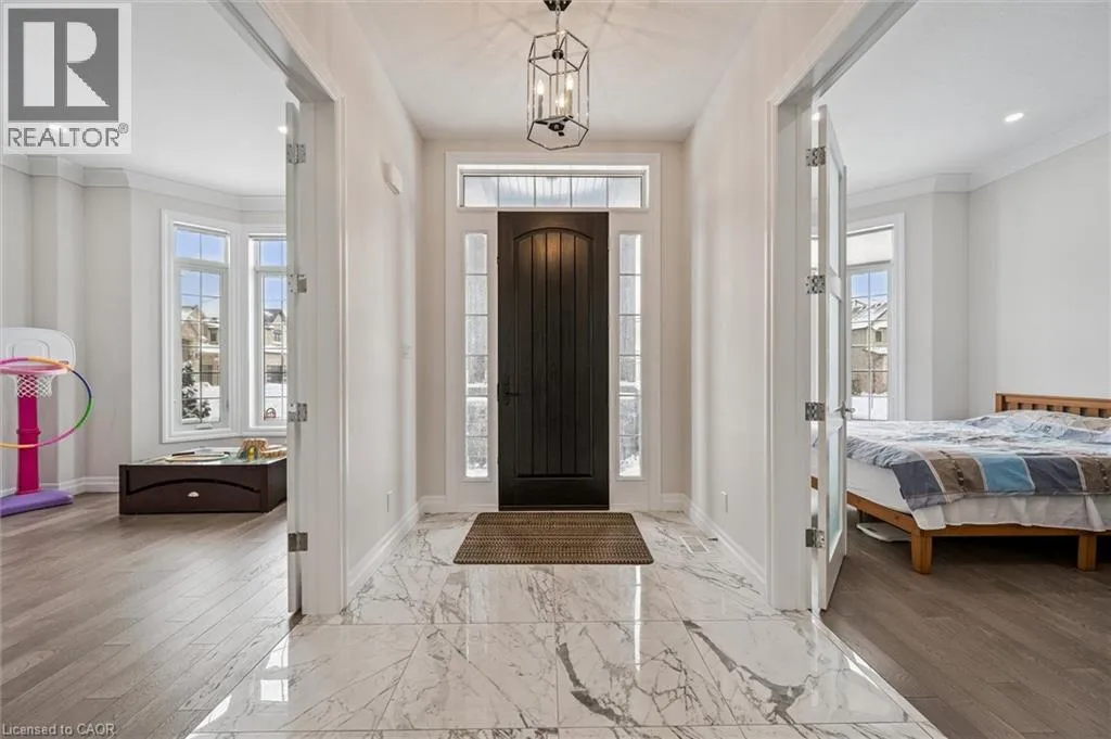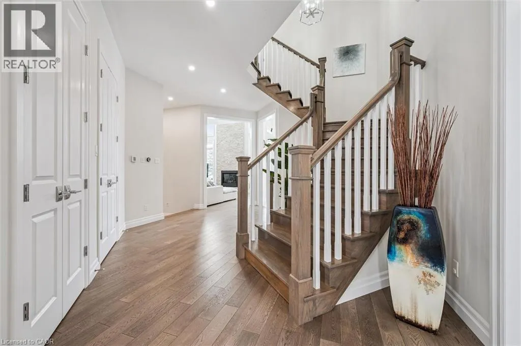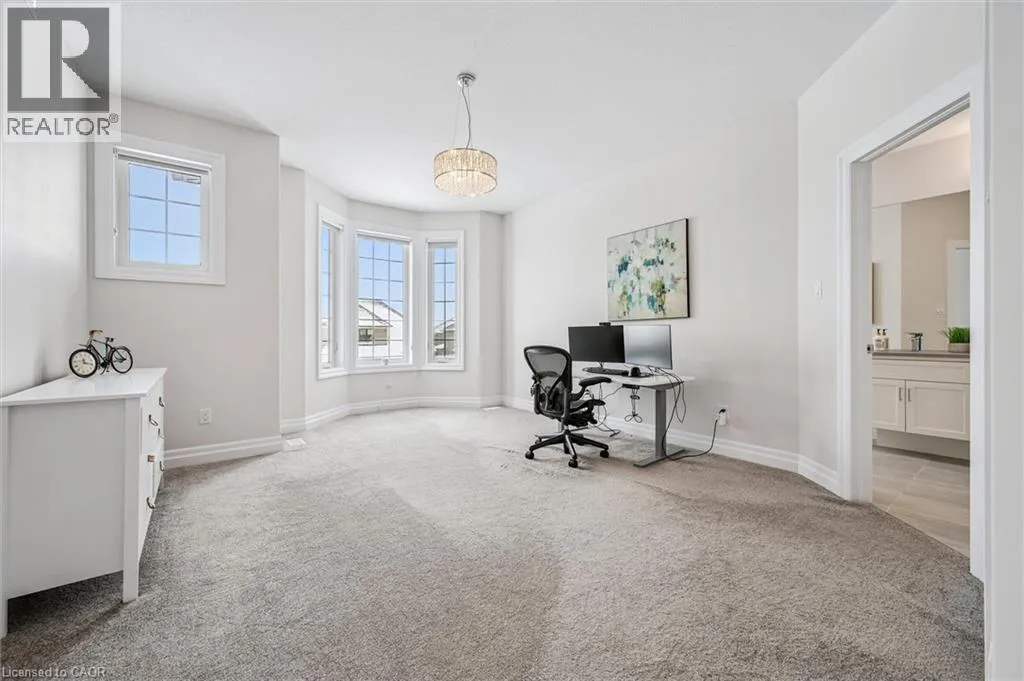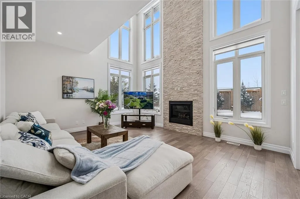 Deerfoot Trail Nearly 4,000 sq ft Luxurious Executive Home Backing onto Grey Silo Golf Club, nestled in the prestigious Carriage Crossing subdivision. Rare tandem garage parks up to 3 cars, impressive 10â ceilings on the main floor & 9â ceilings on the 2nd level. The main floor showcases a stunning custom gourmet kitchen featuring a large island & a walk-in pantry. The elegant open to above great room is highlighted by a coffered ceiling, bright windows overlooking the backyard, & a two-storey stone gas fireplace. A large formal dining / living room with French doors, while a 5th bedrm / office off the spacious foyer provides an ideal main floor living option. The breakfast area opens to a covered patio. A rare 3pc bathrm on the main floor, along with a mudrm featuring custom locker-style cubbies. Upstairs, the spacious primary retreat features high cathedral ceiling, a luxurious 5pc ensuite & walk-in closet. Three additional bedrms include one with a private 3pc ensuite & two connected by a 5pc Jack & Jill bathroom. An upper laundry room & a loft overlooking the great room add both function & architectural interest. High-end finishes including premium doors & windows, granite & quartz countertops, hardwood flooring, ceramic tile, & extensive pot lighting. The large unspoiled basement will easily fit multiple uses including a home gym & an entertainment hub. The exterior impresses with brick & stone construction, an interlock driveway, & professionally designed landscaping. This one of Waterloo's most desirable neighbourhoods is adjacent to the famous Rim Park Sportsplex with various indoor or outdoor sports facilities such as hockey rinks & soccer fields etc. The Grey Silo's golf course or the Eastside Public Library, also the great natural environment with paved trails along the Grand River, be prepared to enjoy your life here & meet wildlife such as geese or deer etc. Within walking distance to Blackberry tech sector & bus route, a short drive to Universities & Conestoga Mall. (id:27476)