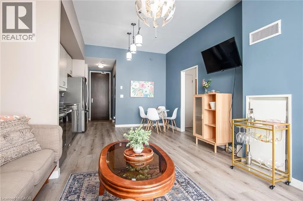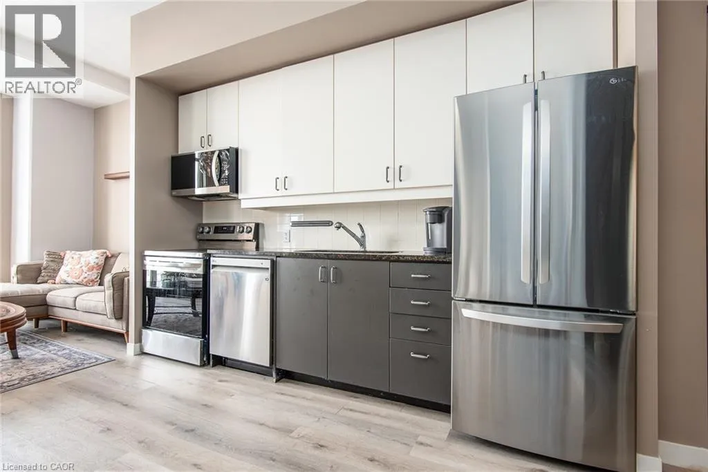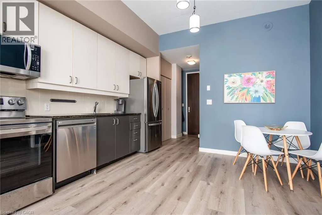 Located on King in between Allen and John Street Welcome to Bauer Lofts located Uptown Waterloo. This 1 bedroom, 2 bathroom loft-style condo offers an open-concept layout with modern finishes and floor-to-ceiling windows that flood the space with natural light. Carpet-free throughout and thoughtfully designed for both style and function, the unit features in-suite laundry and a spacious primary bedroom with a luxurious ensuite complete with a soaker tub and walk-in shower. Step out onto your private balcony overlooking the Bauer Courtyard. The building offers amenities including a fitness centre and rooftop terrace. Unbeatable Uptown location just steps to Vincenzoâs, Bauer Kitchen, Bauer Bakery, the Iron Horse Trail, and directly on the ION LRT line. Surrounded by dining, shopping, trails, and everyday conveniences, this is urban living at its finest, truly close to everything you could possibly need. Call to book a private showing today! (id:27476)