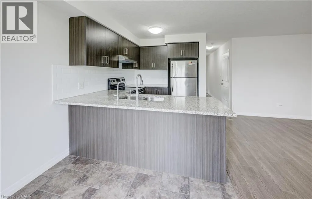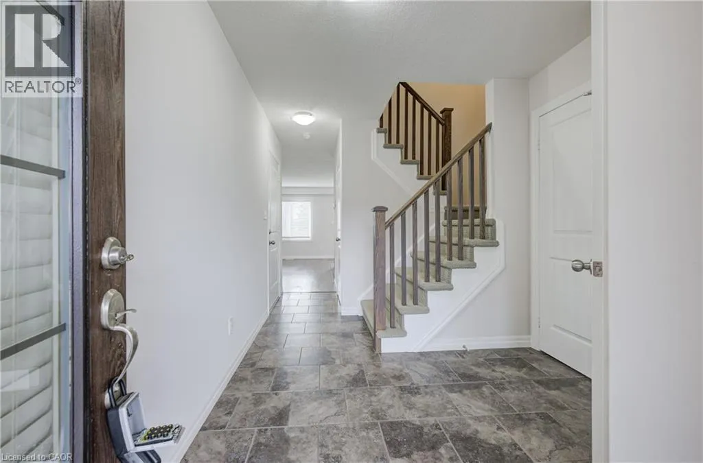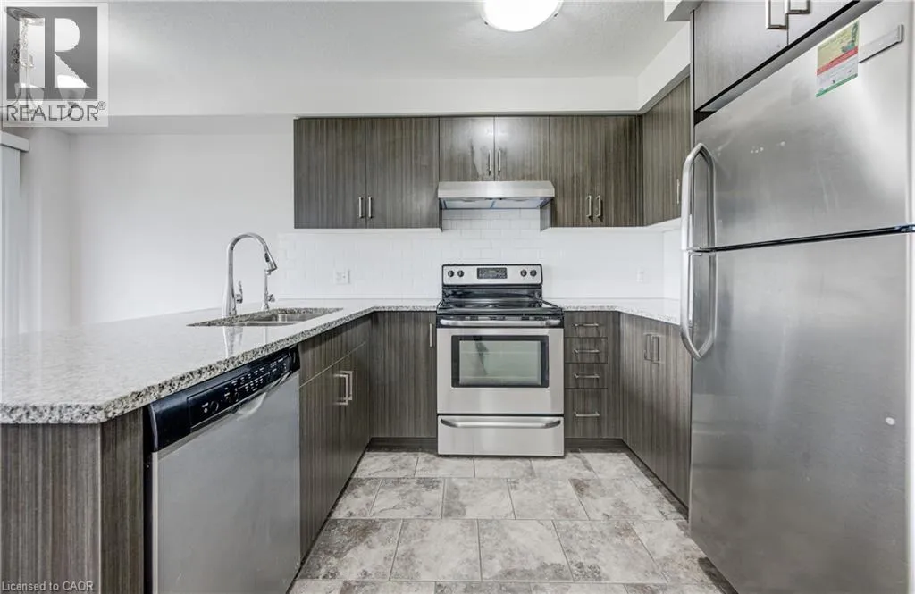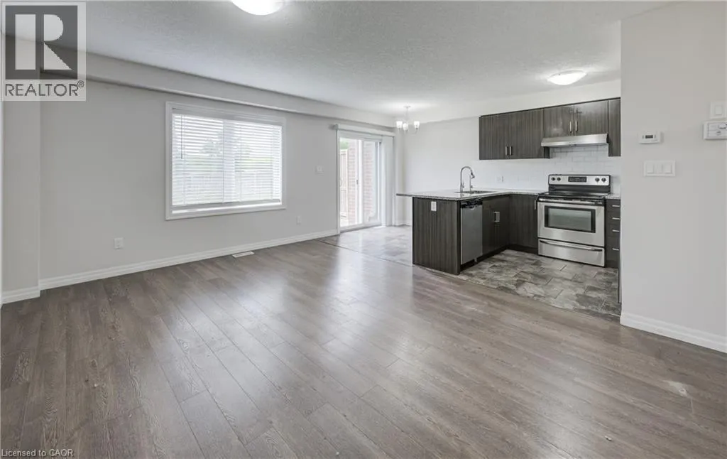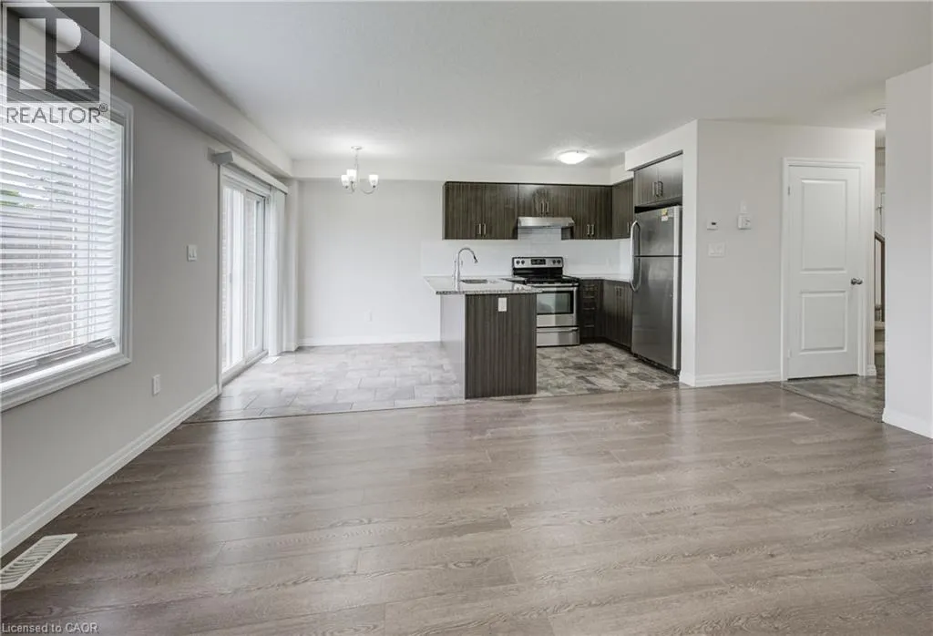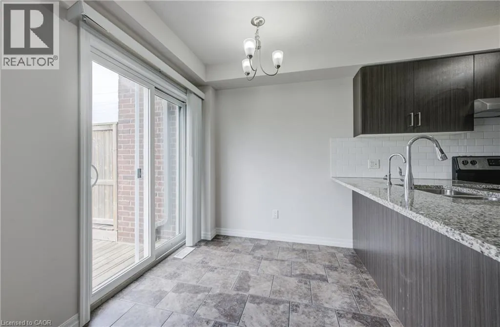 Erbsville to Brandenburg to Paris Blvd Welcome to Clair Meadows, an exclusive community of luxury townhomes ideally located near Ira Needles and Erb Street in Waterloo. This bright and spacious 3-bedroom, 1.5 bathroom home features a large primary suite, two additional generous bedrooms, and a modern layout designed for comfort. The gourmet kitchen offers granite countertops, stainless steel appliances, and ample cabinetry, opening to an inviting dining area and great room with engineered hardwood flooring. Additional highlights include a main-floor powder room, second-floor full bath, central air, high-efficiency gas heating, air exchanger, water softener, and five included appliances. Enjoy outdoor living on your private patio with privacy fence, plus a single-car garage with inside entry, driveway parking, and a spacious unfinished basement. Professionally landscaped grounds and lawn maintenance are included. Zoned FR, allowing home professions, and located steps from Edna Staebler Public School, shopping, restaurants, and The Boardwalk. No student rentals. Shows AAA! (id:27476)