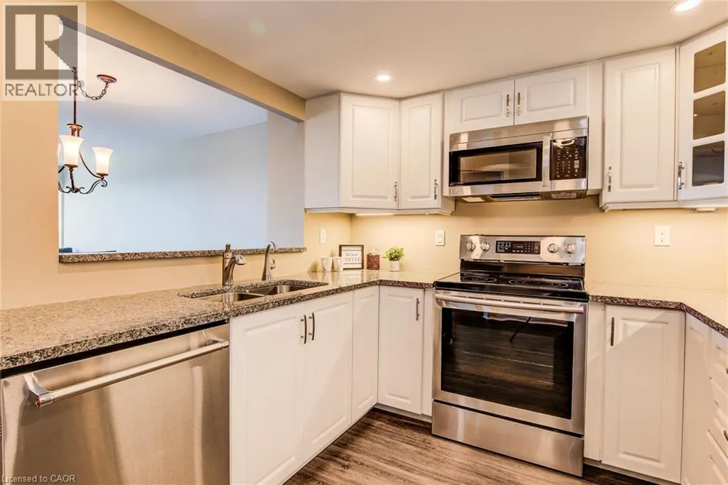 ERB TURN RIGHT ONTO WILLOW FIRST DRIVE ON LEFT STAY LEFT TO VISITOR PARKING Luxury living at Waterpark Place! In addition to this fully renovated, beautiful home, the well managed building has amazing amenities. Located in Uptown Waterloo which offers trendy shops, dining options and cafes. Walmart and large grocery stores are walking distance as well. Nearby Waterloo Park has a lake, picnic areas, splash pad, sports fields, playgrounds and more. The open concept dining and living spaces are great for entertaining. Amazing views from the wall of windows in the sunroom. This space provides lots of options. Updates galore in this home! The updated kitchen features granite counters, tile flooring, white cabinetry and stainless steel appliances. There are two spacious bedrooms including a primary bedroom with walk in closet and an upgraded ensuite. Both bathrooms have updated vanities, walk in tile showers, new counters and flooring. New flooring runs throughout the space. The building is well run and has large indoor pool, sauna, exercise, party and games rooms, library, outdoor patio area with gazebo, BBQ and lounge areas. Lots of visitor parking. Compete with two underground parking spots and storage locker. (id:27476)