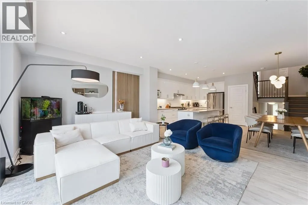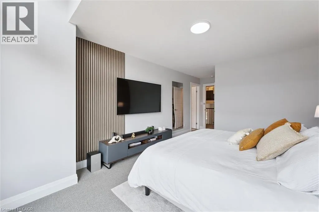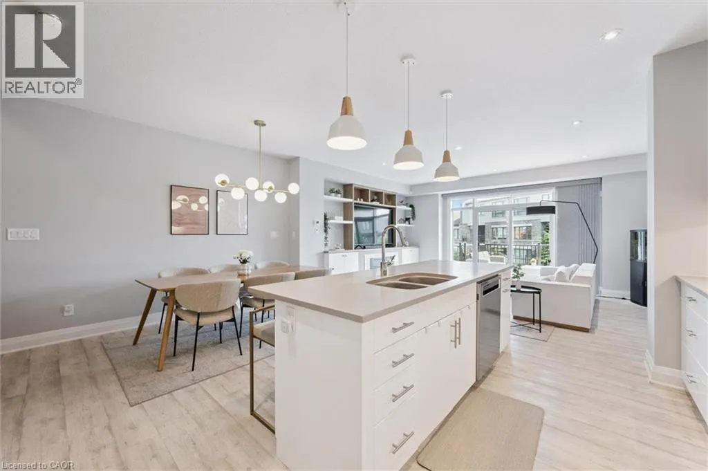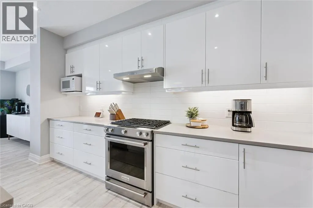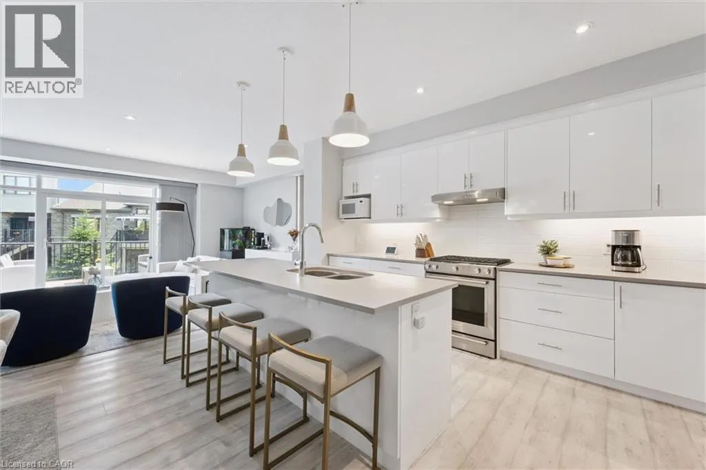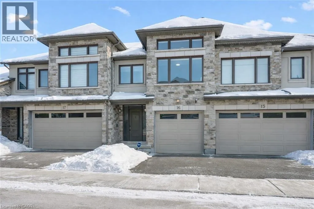 University to Millennium to Crossgate to Grey Silo Discover executive living in the heart of prestigious Carriage Crossing at Grey Silo Gate â a quiet, upscale condo community steps from nature, minutes from urban amenities. This immaculately maintained 3-bedroom, 4-bathroom multi-level townhome offers nearly 2,500 sq ft of finished living space, seamlessly combining style, comfort, and functionality. Step inside to a bright, open-concept main floor featuring soaring ceilings, updated designer lighting, fresh paint, and quality laminate flooring. The heart of the home is the gourmet kitchen, designed for both beauty and practicality â with a massive Caesarstone island and breakfast bar, tall upgraded cabinetry with under-cabinet lighting and valance, a glass backsplash, a walk-in pantry with pull-out storage, and a custom-framed fridge nook ready for a 36 appliance. The living area is perfect for entertaining or unwinding, featuring a built-in wall unit with shelving, cabinets, and an electric fireplace. Step through sliding glass doors (with transom windows) to your maintenance-free composite deck with a gas BBQ line and privacy gate. Upstairs, the luxurious primary suite boasts a walk-in closet with custom organizers and a stunning ensuite with glass shower and double sinks. The upper loft provides a stylish and functional space for a home office or reading nook, while two additional spacious bedrooms and a well-appointed family bath complete this level. The laundry room is conveniently located on the main floor and features extra cabinetry. The finished basement adds valuable living space with look-out windows, luxury vinyl flooring, and a large recreation room. Enjoy low-maintenance living with no grass to cut and no snow to shovel. All appliances are includedâjust move in and enjoy. Situated near RIM Park, Grey Silo Golf Course, the Grand River, and scenic trails, this home offers the perfect blend of modern urban living and outdoor adventure. This is a rare opportunity to own a turnkey luxury townhome! (id:27476)