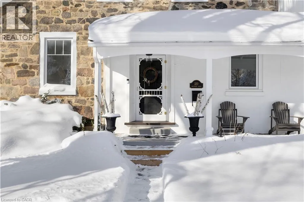 Lexington Rd to Lee Ave to Whitmore Dr Welcome to 320 Whitmore. This stately farmhouse estate (Fieldstone House, circa 1853) stands as one of the most historically significant and prominent period homes in Southwestern Ontario. Located in the highly sought-after Old Colonial Acres, this 19th-century residence is among the last remaining original stone houses in Waterloo Region, representing a rare and inimitable piece of Ontarioâs architectural history. Lovingly and comprehensively restored, the home has undergone extensive interior reconstruction - re-planned, re-framed, and modernized within its original stone exterior - delivering the comfort, layout, and livability of a new build while retaining its historic roots. The enduring fieldstone construction (with ~2 ft. thick walls), original doors and millwork, period staircases, and hand-hewn beams, speaks to a level of authenticity rarely found today. The home unfolds across multiple wings, offering remarkable main-floor scale anchored by grand living spaces and a private primary wing. The sheer size of the main-floor footprint represents a level of construction that would be prohibitively expensive to replicate today. At the centre of the home, a historic conservatory offers sweeping views of the park-like grounds, while an upper-level belvedere provides a scenic vantage point for stunning sunsets set against century-old maple trees. A stately period porch frames the front entrance to the home, complete with original millwork. Set on one of the largest lots in the neighbourhood, the property offers a true estate setting â with expansive front and side yards that make you feel like youâre in your own private park. Behind the house, the large, sun-filled backyard is anchored by a saltwater pool and hot tub â perfect for quiet moments and meaningful gatherings. This is not simply a home; it is a landmark. A living piece of Waterlooâs history and a once-in-a-lifetime opportunity to steward something truly irreplaceable. (id:27476)