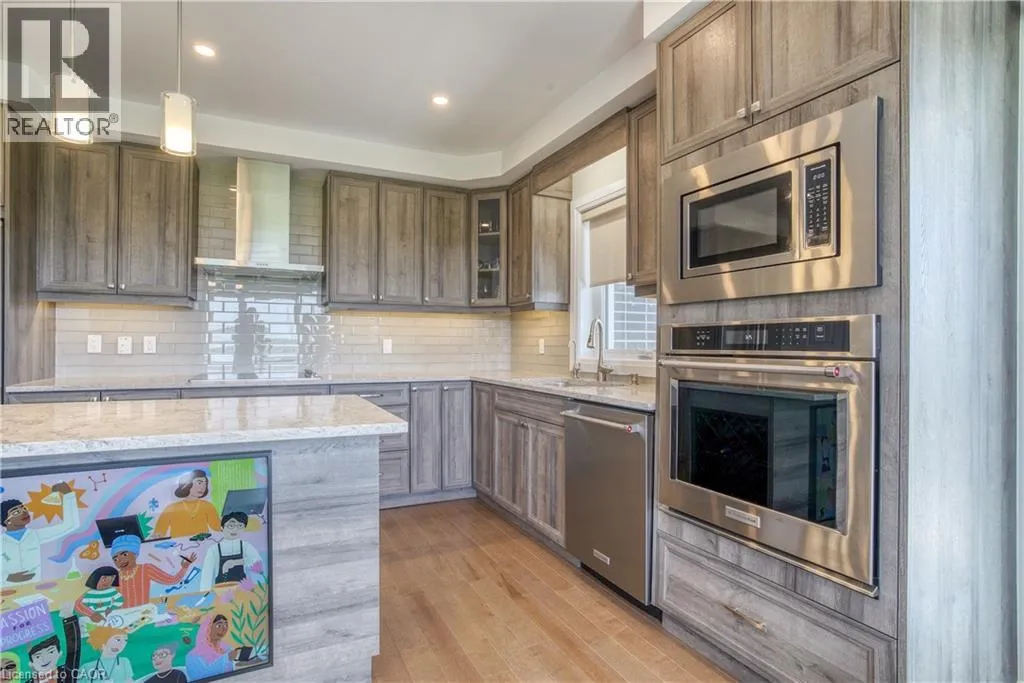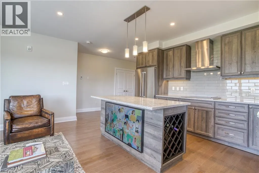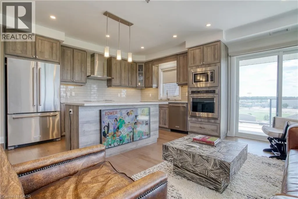 Oak Park Dr to Grey Silo Rd STUNNING TWO-BEDROOM & TWO-BATHROOM AVAILABLE FOR LEASE! Welcome to 403-245 Grey Silo Road, a luxury condo located inside the Trailside at Grey Silo Gate building. A quick walk to RIM Park, the Walter Bean Grand River Trail, and Grey Silo Golf Course, and just a few minutes' drive from all amenities. The modern condo features engineered hardwood flooring and upgraded features throughout. The kitchen boasts ample cabinetry, stone countertops, a glass subway tile backsplash, a large island, and high-end, built-in Kitchenaid appliances. The bright living room flows off the kitchen and features glass sliding doors leading onto the massive wrap-around balcony. The principal bedroom features a large window, two closets, and a three-piece ensuite with a tiled walk-in shower. This unit is complete with a second bedroom, a four-piece bathroom, in-suite laundry with front loading machines, two parking spaces; one underground and one surface, and a locker. Enjoy the sunshine or entertaining guests on the rooftop patio, equipped with a barbeque and ample seating and lounging areas. Don't miss out on this incredible home! (id:27476)