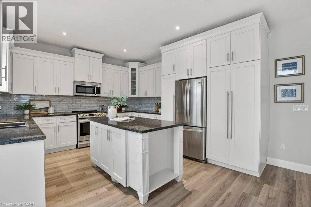 Westmount Rd to Lake Louise Blvd to Rock Point Cres Nestled in the highly sought-after Conservations Meadows neighborhood of Waterloo, this beautifully updated residence offers an exceptional blend of style, comfort, and versatility. Meticulously maintained and thoughtfully updated in the areas that truly matter, this is a home best experienced in person. The main floor showcases a sophisticated open-concept design, ideal for everyday living & effortless entertaining. The elegant living room flows seamlessly into the dining area & an expansive chef inspired kitchen, complete with a generous island, granite countertops, ceramic tile backsplash, undermount sink, recently refinished cabinetry, newer stainless appliances, & a sleek induction cooktop delivering both function & timeless appeal. Upstairs, three generously sized bedrooms are complemented by a beautifully appointed four-piece family bath. Privately positioned at the rear of the home, the serene primary suite is a true retreat, overlooking tranquil greenspace & offering the perfect space for a home office or reading haven. The newly renovated ensuite features a modern spa inspired wet-room style shower, a luxurious soaker tub, & a stunning walk-in closet. Sliding doors from the kitchen lead to a partially fenced backyard with peaceful greenspace views, perfect for relaxing or entertaining. The yard also provides access to a newly constructed stairwell leading to the lower level DUPLEX entrance. This bright & spacious studio apartment includes a full kitchen with full size appliances, a large living area, laundry, & a three piece bath ideal for extended family, a teenager, or an excellent mortgage helper. Situated on a quiet, family friendly crescent, the home is just moments from Laurel Creek, St. Jacobs Market, scenic trails, top rated schools, & all the amenities that make Laurelwood so desirable. This is the home you've been waiting for! Your search ends here! (id:27476)