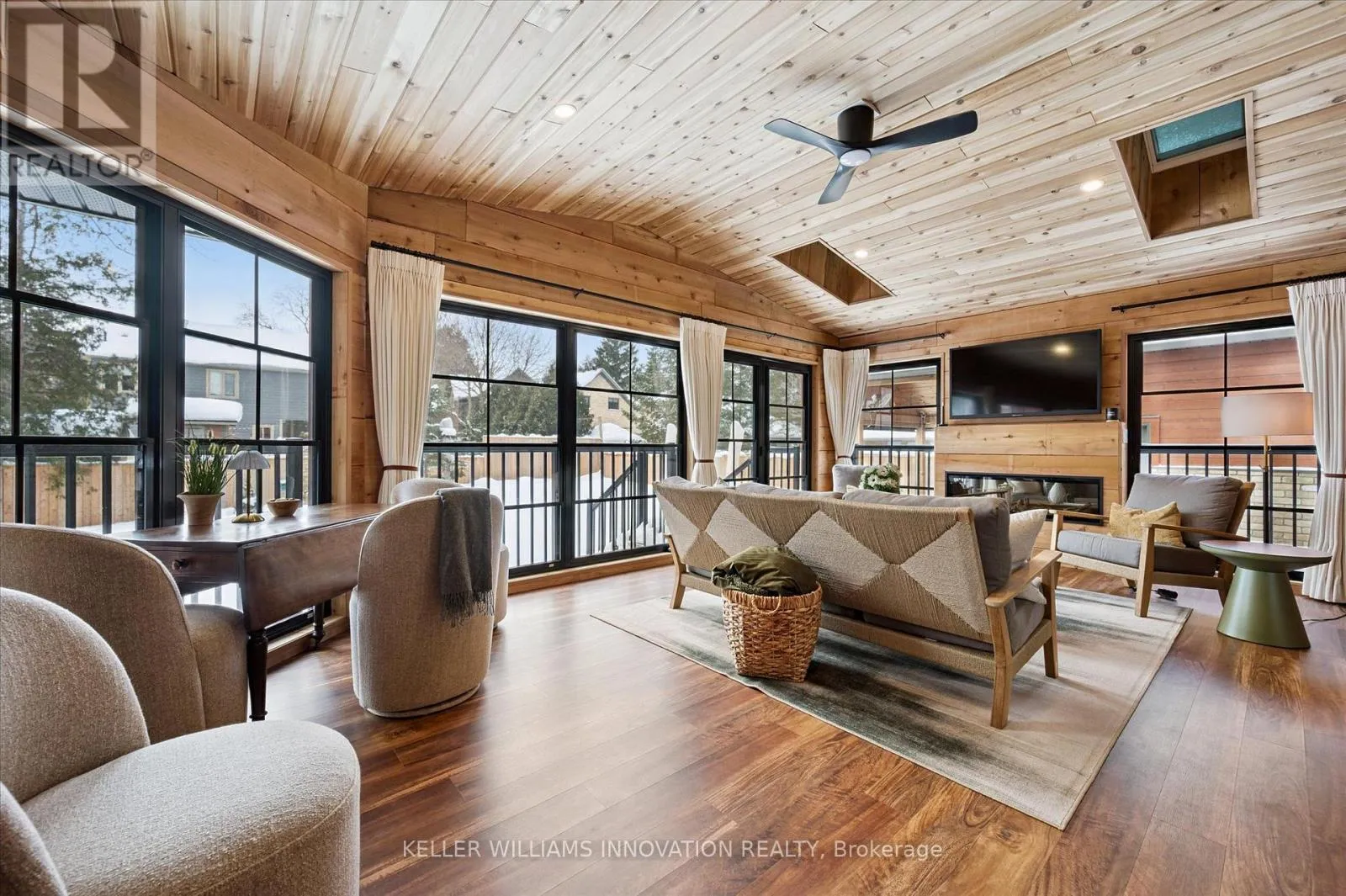 Cross Streets: Alexandra Ave/Erb St. W. ** Directions: Alexandra Ave./Dawson St. Old charm meets modern conveniences in this stunning 4 bedroom Westmount home! This 4 bedroom, 3 bathroom home has over 2921 sq feet of above grade living space. Enter through the front covered porch, and be instantly impressed with the high ceilings and gleaming hardwood floors. The living room features plenty of natural light, an impressive gas fireplace and built-in speakers. This "wow" kitchen is certainly the heart of this home! The kitchen island is the center feature with granite counters, anchored by the large gas stove and stunning brick wall, nodding back to the roots of this century home. The dining room was thoughtfully designed with cabinets serving as an open butler's pantry and bar station. Plenty of room for guests to mingle for dinner and then wander out through the back sliding doors to the 3 season sunroom. Enjoy the warm summer evenings or cool brisk fall nights in the sunroom with an entire back wall of windows, overlooking the backyard and inground, salt water pool. No need to travel to a cottage, when this backyard feels just like being lakeside! Head upstairs to the open loft area, with skylight. The primary bedroom has a small balcony looking over the backyard, a large walk-in closet with stackable washer and dryer and a 4 piece ensuite bathroom with double sinks and a walk-in shower. 2 more generous sized bedrooms and a 4 pcs main bathroom for the kiddos. The fourth bedroom could serve as a second walk-in closet for the primary bedroom or a home office, exercise room or den. It's an easy walk to Uptown Waterloo to the restaurants and cafes, Waterloo Rec Centre, Waterloo Park and Waterloo Public Library - all less than a 10 minute walk! Close to bus routes and ION light-rail stops for easy access to anywhere in Kitchener-Waterloo. Here's your opportunity to have your cottage at home and boast about living in one of the most desirable neighbourhoods in Waterloo. (id:27476)