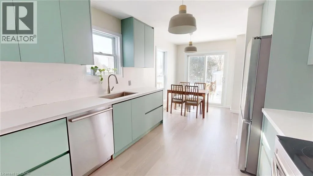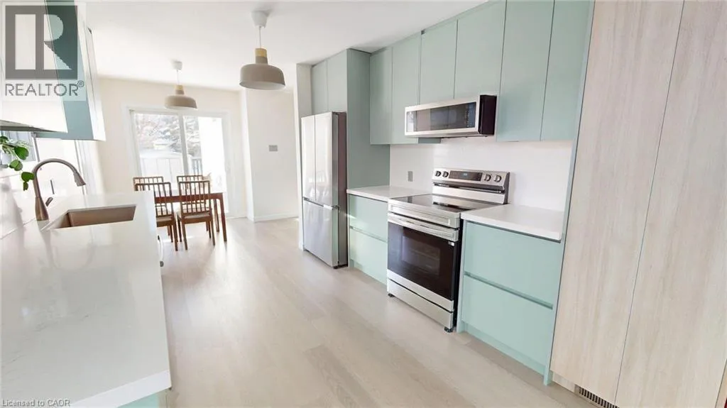 Detached 4-level side split offers a bright, open-concept main floor with a renovated kitchen featuring custom cabinets and quartz countertops. The upper-level features 2 bedrooms & a 3pc bath; the lower level provides a bright 3rd large bedroom & 3pc bath. Move-in ready with extensive 2024-2026 improvements: Renovated kitchen with 10-yr warranty, premium brand-new appliances (dishwasher, range, O/R microwave, fridge, washer). Main bathroom professionally rebuilt with new plumbing & insulation. All 3 bedrooms feature modern built-in closets. Freshly painted and comes with new floors, trims & baseboards. Large lot with new concrete porch & low-maintenance professional landscaping front and back. Huge driveway fits 2 cars side-by-side and a total of 5 cars. Roof (2012), Furnace/AC (2015). Sought after location, walk to Northlake Woods PS; mins to Laurel Creek, St. Jacobs Market & University of Waterloo. (id:27476)