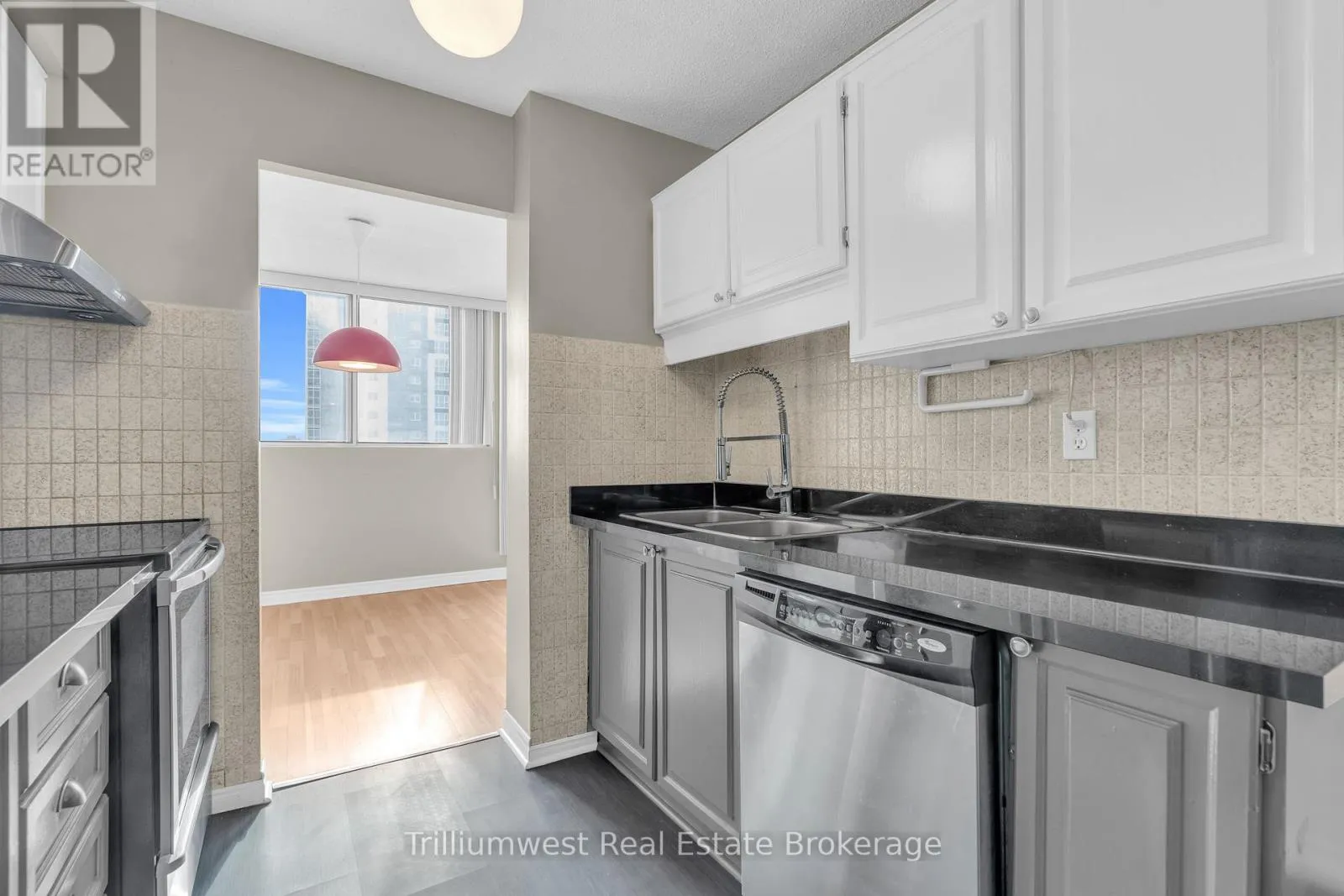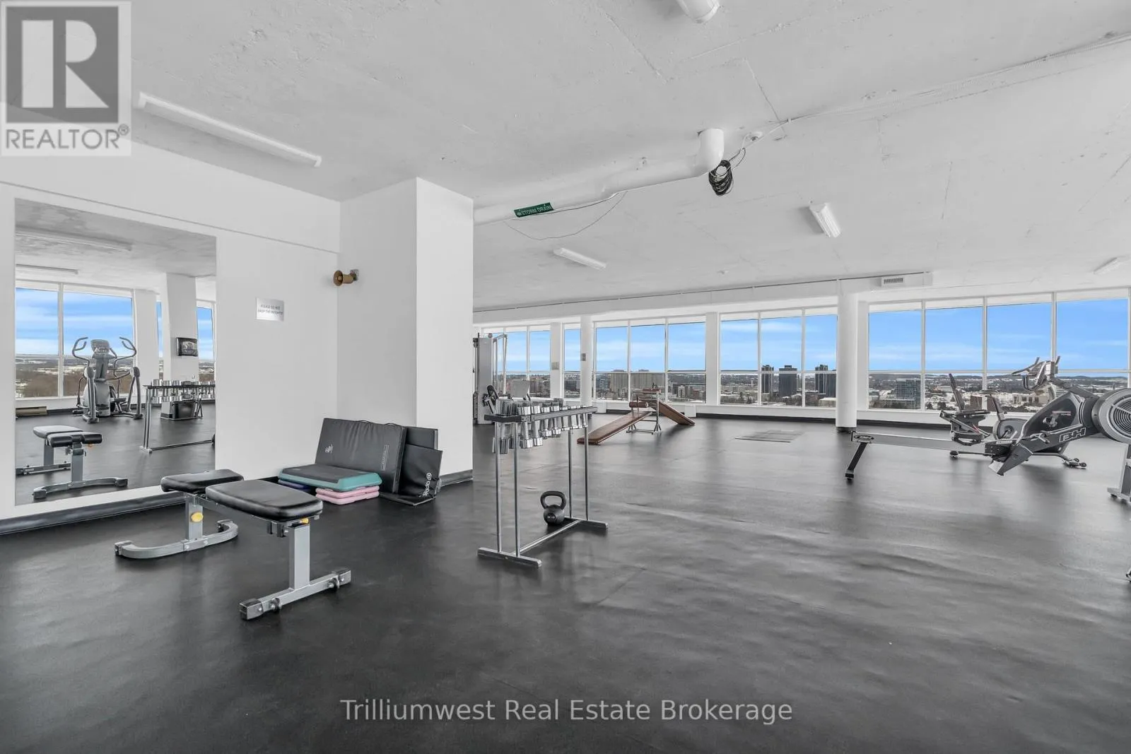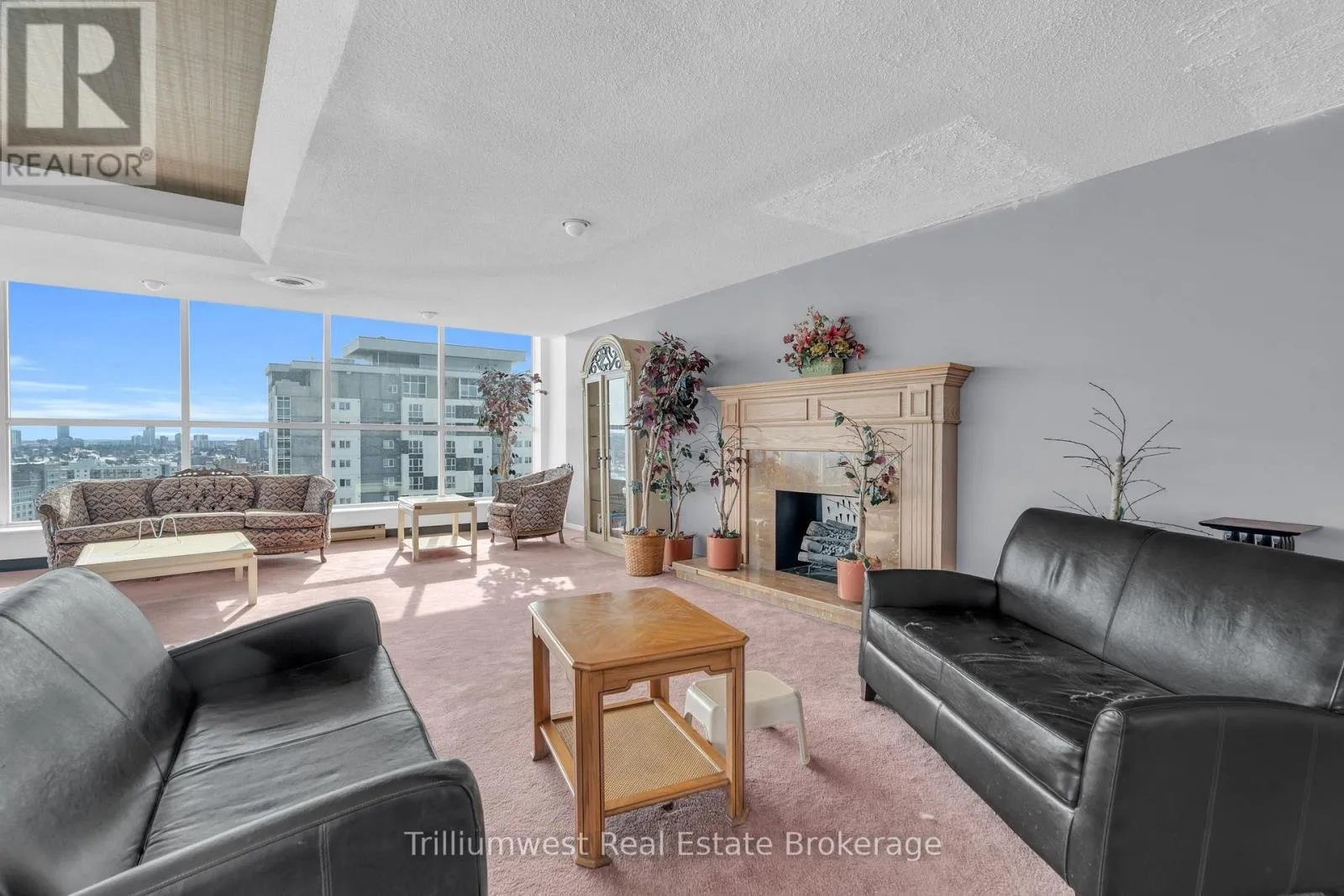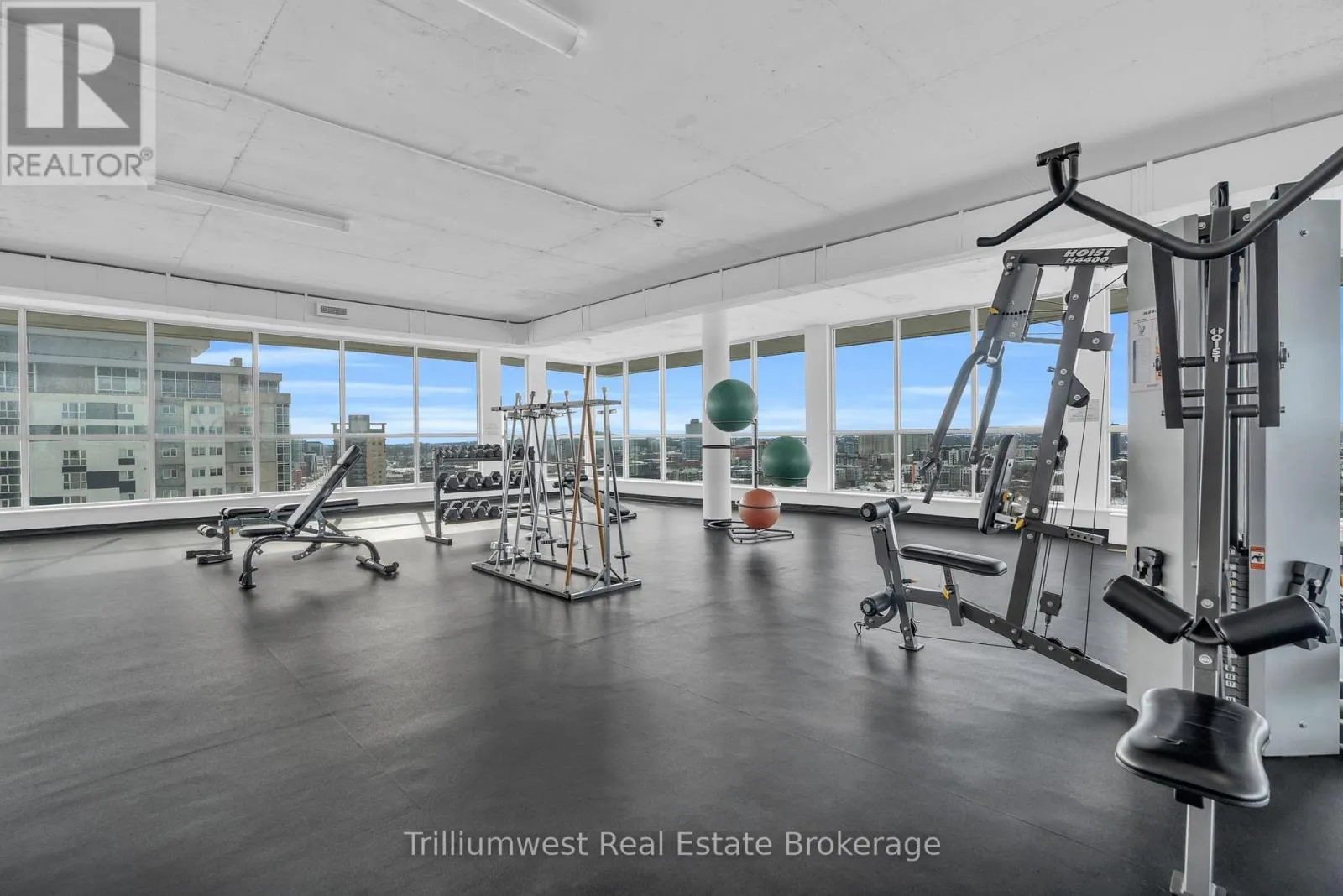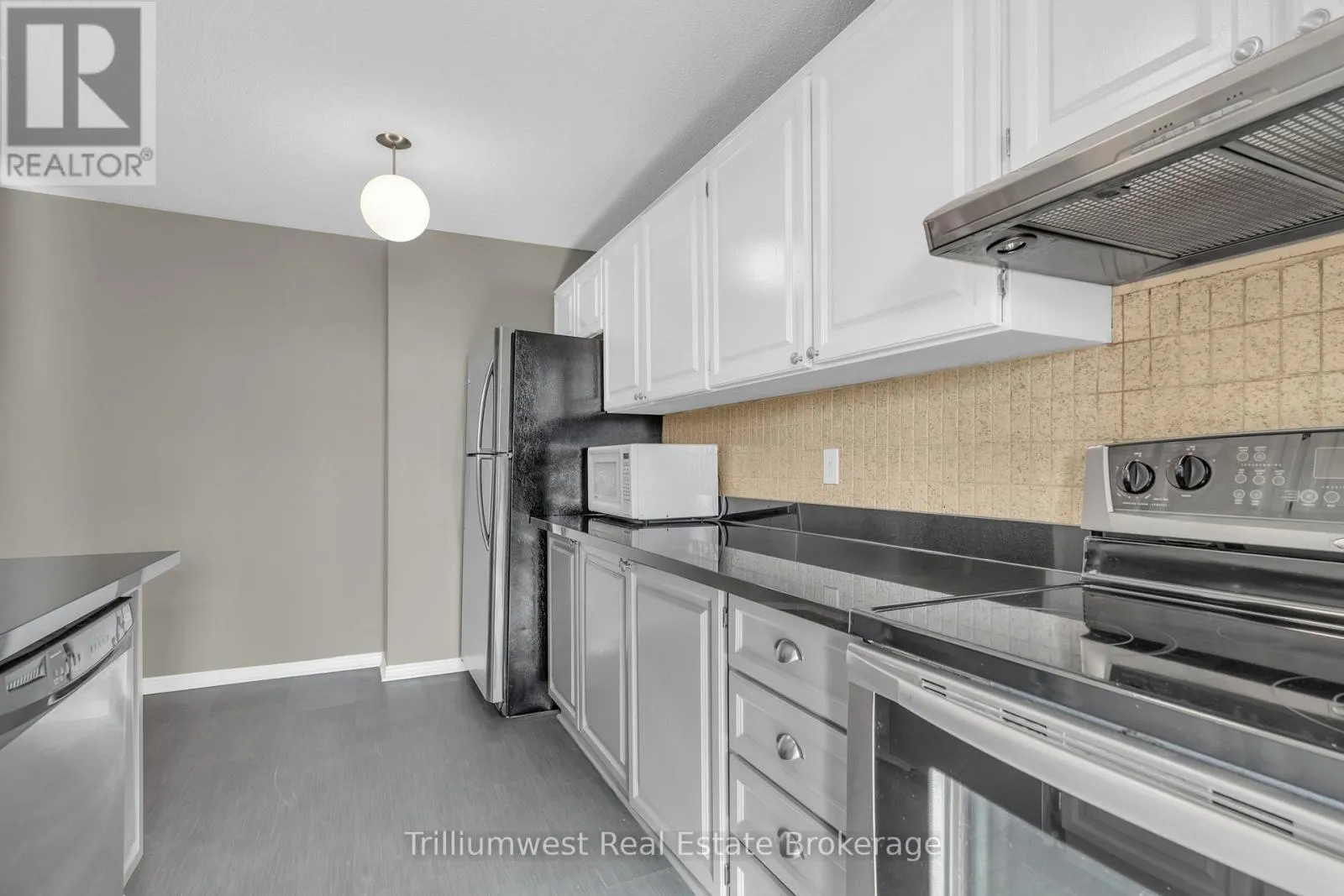 Cross Streets: King Street North & Columbia Street West. ** Directions: Located on King Street North. Close to the corner of King St N and Columbia St W. Beautiful and spacious 3 bedroom, 2 bathroom condo located in a prime Waterloo location. Welcome to Columbia Place! Enjoy the stunning 10th floor views from your private, covered outdoor balcony. The entire unit has been freshly painted and features laminate and luxury vinyl flooring throughout. The large kitchen offers plenty of storage and food prep space, and it features full sized stainless steel appliances, stone countertops, and modern two-tone cabinetry. There is a formal dining area just off of the kitchen that flows nicely into the spacious and open living room area. Both rooms offer an abundance of natural light thanks to the full wall of oversized windows and the sliding doors to you own private outdoor balcony. Each of the bedrooms are generously sized and have plenty of closet space, and the primary bedroom even offers a walk in closet space and an ensuite bathroom. The main bathroom features a walk in/roll in shower, and as a bonus, this home has been modified in numerous places with wider doorways to make it more accessible for those requiring mobility assisting devices such as a wheelchair or a walker. You even have your own convenient in suite laundry room. Enjoy the peace of mind and worry free living with condo fees that include all utilities (heat, a/c, hydro and water). The amenities in this building are also top notch and feature a full gym, an indoor swimming pool, sauna, an indoor walking track, a full woodworking shop, a party room, a billiards/game room, a library, underground parking, and even a car wash area! This unit also has a bonus storage locker. Located close to Conestoga Mall, University of Waterloo & Wilfred Laurier University, numerous bus routes, as well as many fantastic restaurants, coffee shops, and so much more! You even have easy access to the expressway. If you want space and a location that has it all, this one is a must see! (id:27476)