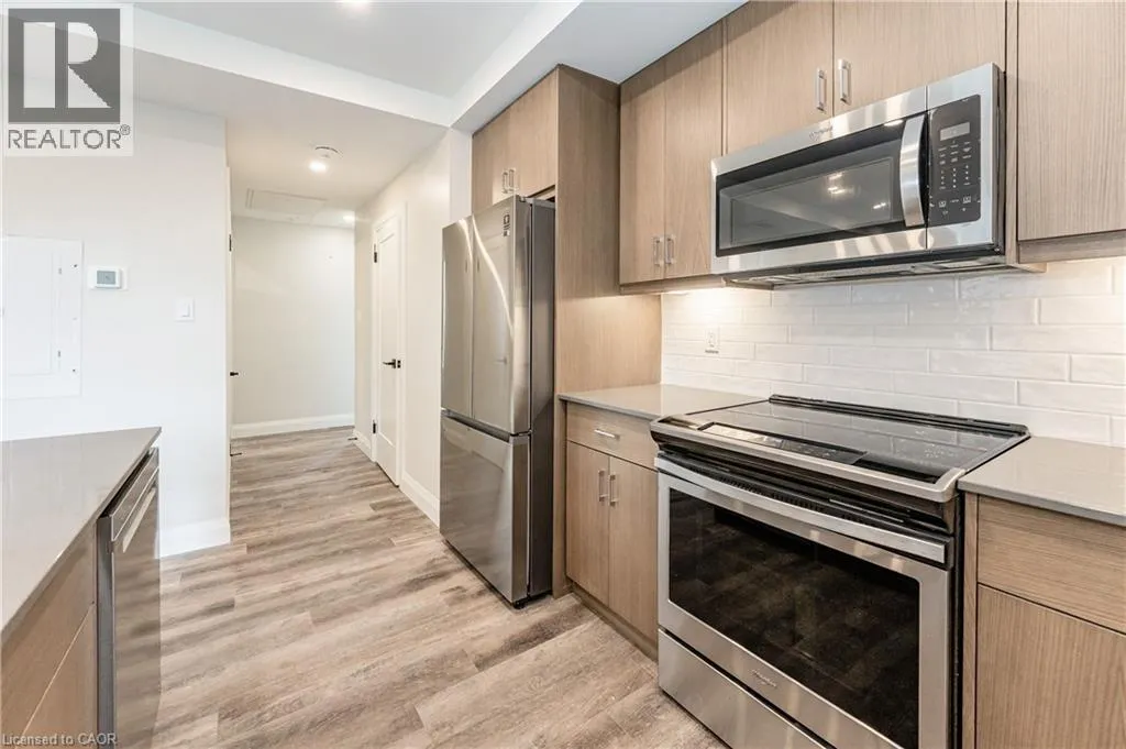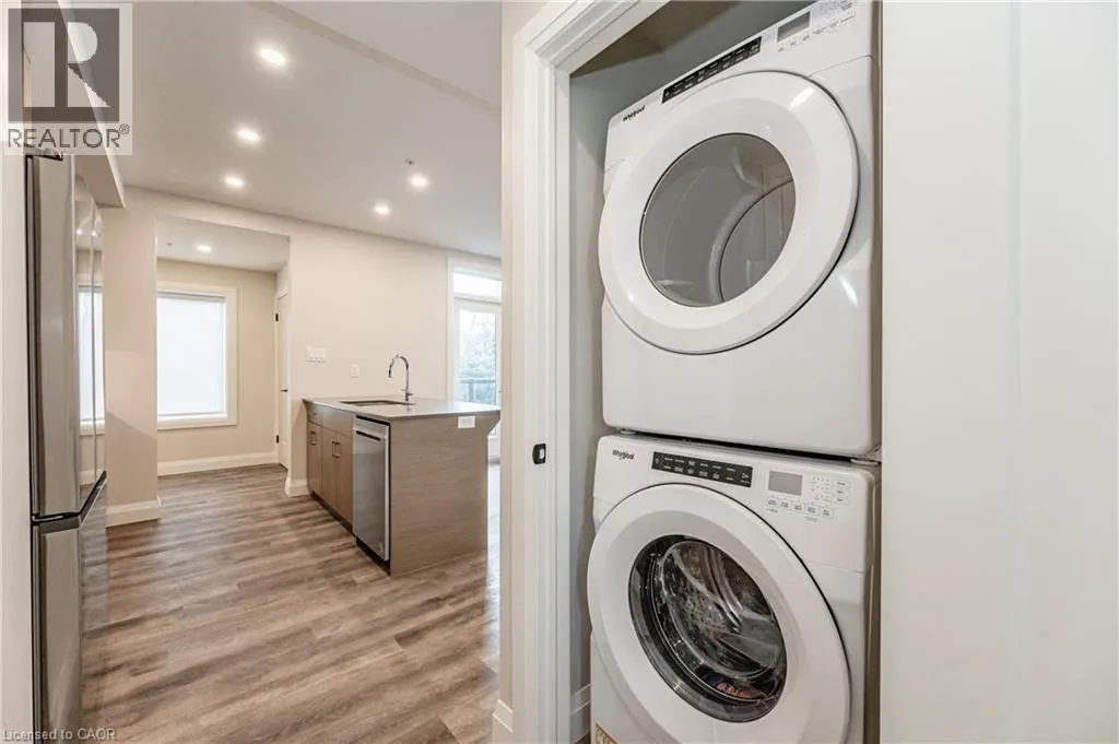 REVIVE on Erb is a very new UPTOWN WATERLOO BOUTIQUE RENTAL BUILDING. Featuring cutting edge prop tech with 1Valet Concierge and Salto keyless access systems. This large 2- bedroom unit offers a front foyer, an open kitchen with island, stainless appliances, quartz countertops and custom cabinetry. A bright and spacious living area with walk out to a covered private balcony. Two large bedrooms with ample closet space and custom built-in closet systems. One full bathroom and a separate powder-room add the finishing touches to this unique unit. Not mention the feature living-room windows and window coverings throughout. Additional building features include an elevator, outdoor BBQ amenity space, locker units, indoor bike storage, and a bike wash/pet wash station. Don't miss this opportunity to live just 200m from the Uptown Waterloo ION stop and all that Uptown Waterloo has to offer. (id:27476)
