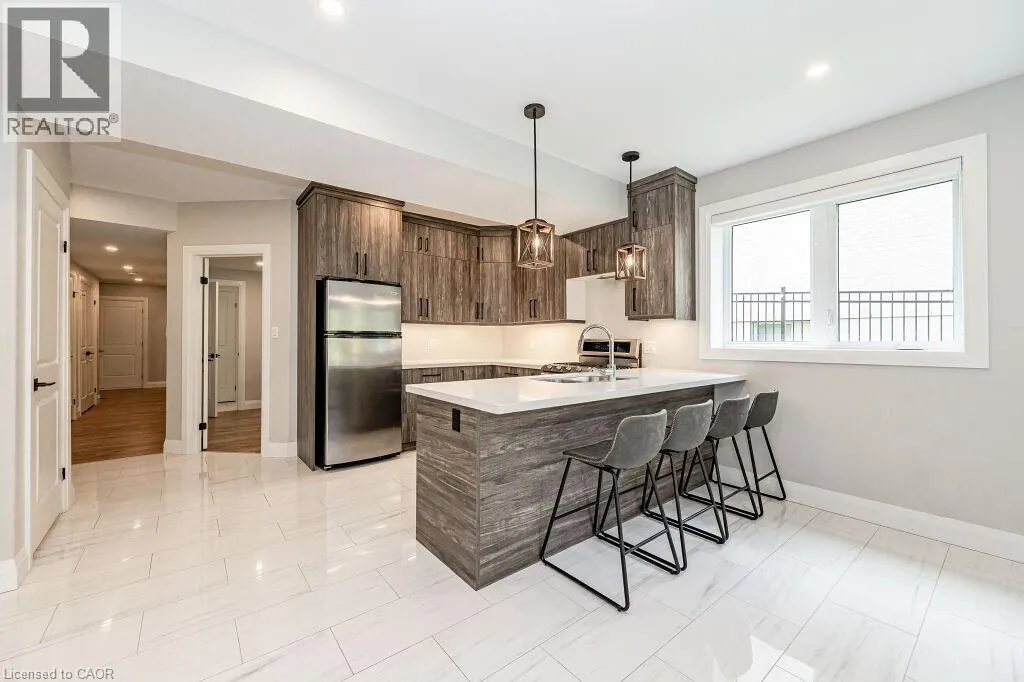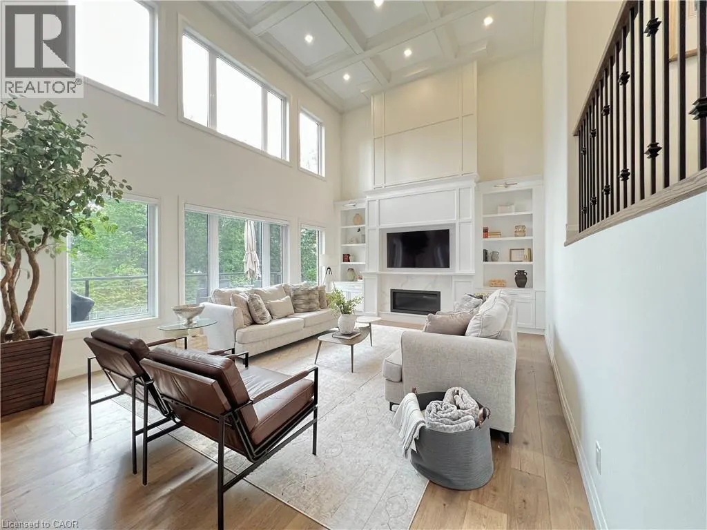 Lexington Road and Bridge Street Experience luxury living at its finest in this exceptional custom-built residence at 346 Lexington Road in Waterloo. Impeccable craftsmanship and attention to detail are evident throughout this stunning home, which was built with no compromises or expenses spared. The property boasts a 3-car garage and a large driveway providing ample space for 12-car parking. Inside, enjoy the comfort of 9-foot ceilings on all three levels, laundry facilities on each level, and heated floors in all washrooms and the basement for year-round comfort. The kitchen is a culinary masterpiece, featuring an oversized island and a spacious walk-in pantry to meet the needs of discerning chefs. The living room is a haven of elegance, with 20-foot coffered ceilings, custom millwork, and a captivating marble fireplace creating a warm and inviting atmosphere. Upstairs, four spacious bedrooms offer comfort and privacy, including a primary bedroom with a generously-sized walk-in closet and an expansive ensuite with an oversized shower for a spa-like experience. The walk-out basement includes two well-appointed bedrooms, a thoughtfully designed washroom, a fully-equipped kitchen, and a spacious living area, providing flexibility and additional space for various lifestyle needs. Step outside to the backyard oasis, where a large deck with sleek glass railings offers breathtaking panoramic views. With its 70x160 lot, there's plenty of space to create your own private retreat for relaxation, perhaps with a pool. (id:27476)