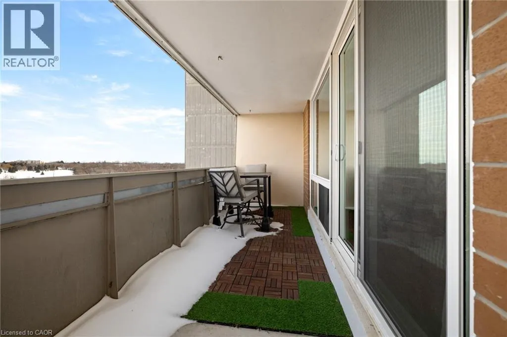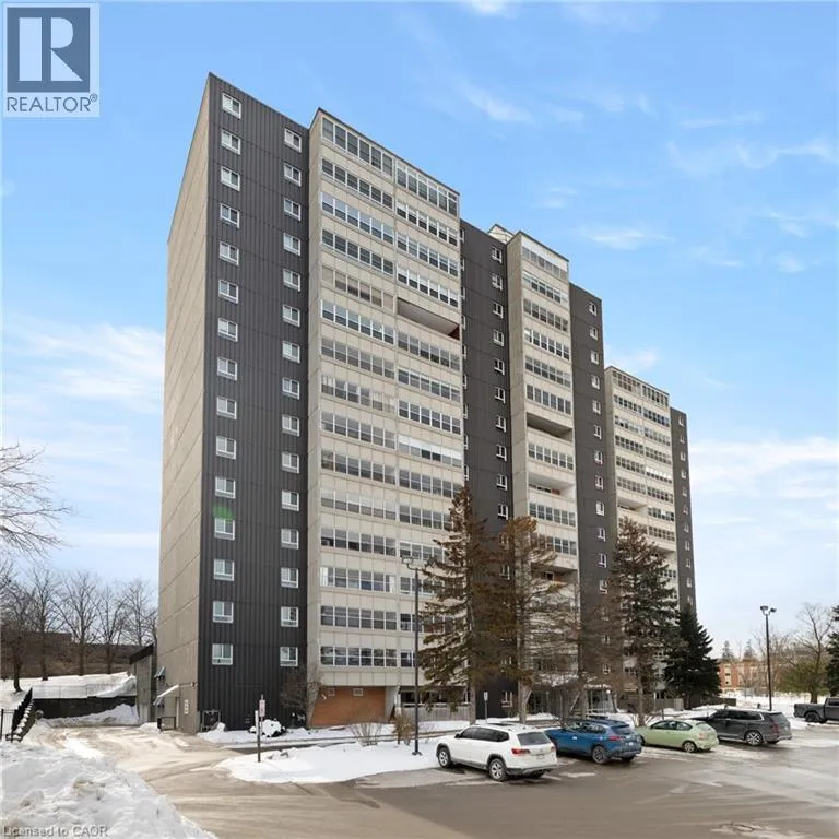 LINCOLN RD AND BLUEVALE Located on the 10th floor of Bluevale Tower in East Waterloo, this large one-bedroom unit offers northeast views and a comfortable layout. The building is well managed and known for its strong community. It is conveniently located near Glenridge Zehrs, with easy access to the expressway and everyday amenities. While close to the universities, it is not a student-focused building, making it a good fit for professionals or downsizers. All utilities, including hydro, heat, and water, are included in the condo fees, keeping monthly costs predictable. Building amenities include separate menâs and womenâs gyms with saunas, a woodworking shop, a tennis court, and underground parking. The unit has been freshly painted with several updates already completed, offering a move-in-ready option. (id:27476)