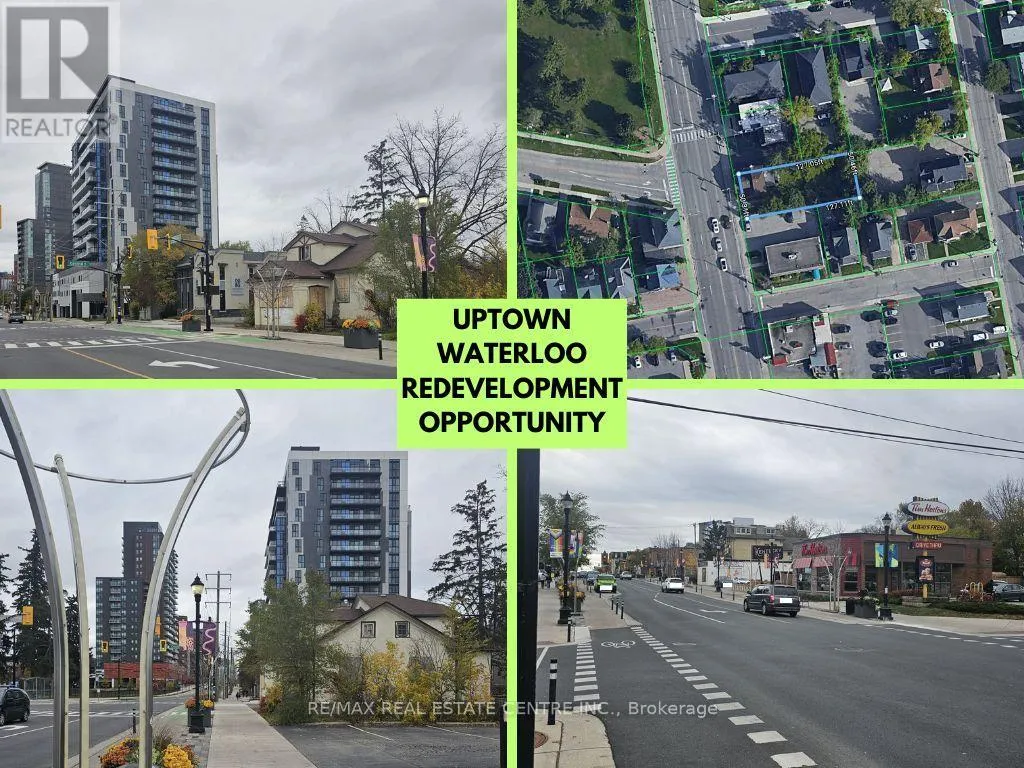 King Exceptional Development Opportunity in the heart of Uptown Waterloo! Prime location at the coveted intersection of King Street and Central Street, ideally situated between University Avenue and Bridgeport Road. This 50 ft x 125 ft lot offers outstanding potential for redevelopment with zoning that allows construction up to 18 storeys (U1-60 - Uptown Core). Concept plans (available in attachments) propose an 11-unit building with a total of 41 bedrooms and 3 commercial units on the main level - or bring your own design to take full advantage of this unique zoning. The property is within walking distance to both the University of Waterloo and Wilfrid Laurier University, surrounded by a vibrant mix of retail, dining, and amenities. This is one of the most desirable sites in Waterloo Region, offering excellent exposure, strong growth potential, and ideal suitability for a new commercial or mixed-use development. The existing structure is being sold "as is, where is" and must be demolished by the Buyer. The City of Waterloo has expressed support for new business and redevelopment initiatives in this area. Don't miss this rare opportunity to secure a premium Uptown Core property with exceptional potential for future growth. (id:27476)