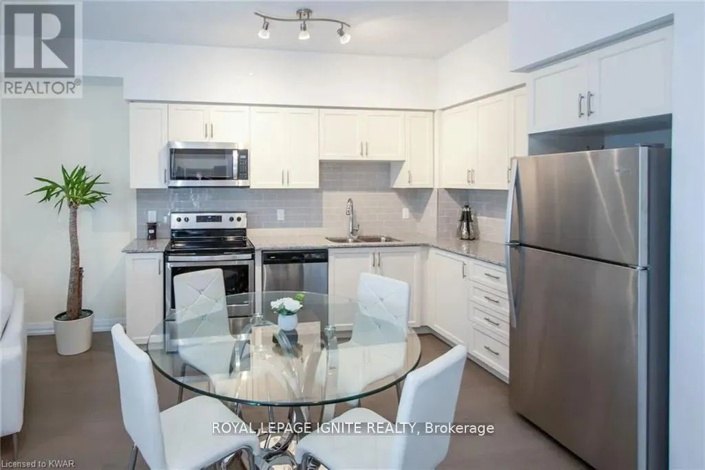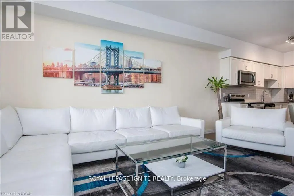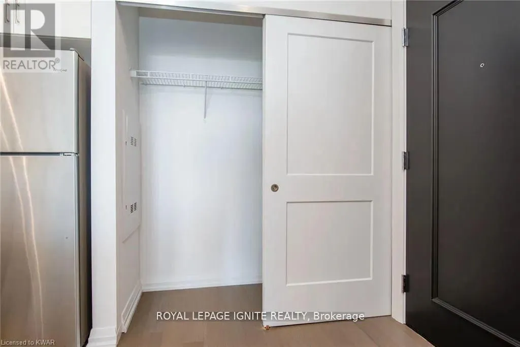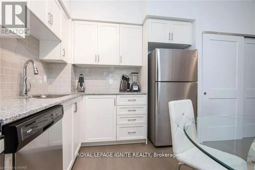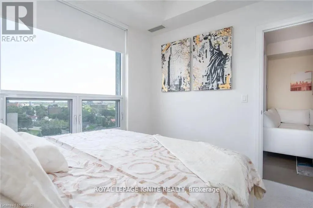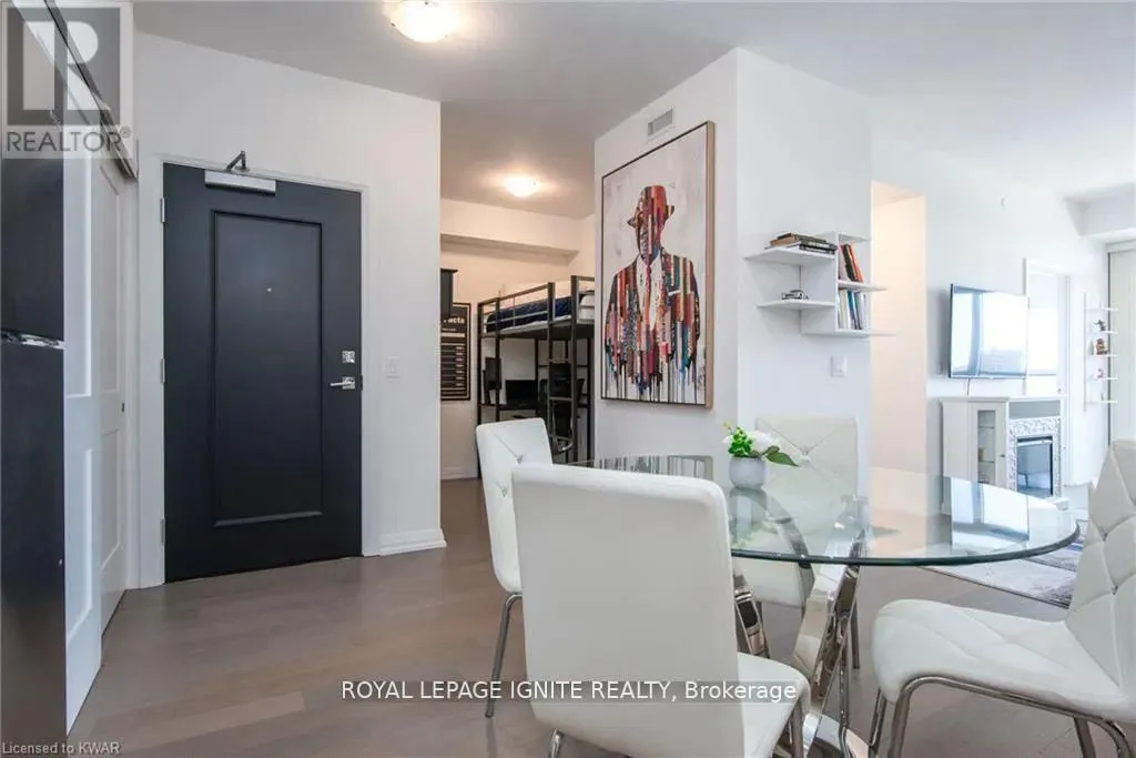 Caroline St & John St Located in the heart of Uptown Waterloo, this well-maintained one-bedroom plus den unit is part of the highly sought after Caroline Street Private Residences. Step into a bright and modern open-concept living space designed for comfort and functionality. The living room features custom-built furniture that fits the space perfectly, creating a warm and stylish atmosphere. The kitchen offers quartz counter tops, soft close cabinetry, and stainless-steel appliances, seamlessly opening to the living area-ideal for entertaining. Enjoy direct access to the balcony, where you can take in stunning city views. The primary bedroom includes a walk-in closet, adding extra convenience and storage. This unit also comes with a locker and an underground parking space. Unbeatable location just steps from Uptown Waterloo's best bars, restaurants, and upscale shopping, with Vincenzo's and Bauer Kitchen right next door. With the LRT right outside your door, getting around the city is effortless perfect for those seeking both lifestyle and convenience. (id:27476)