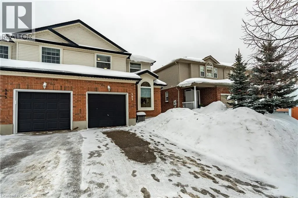 University Avenue E. and Auburn Drive (near Pastern Trail) PUBLIC OPEN HOUSE SATURDAY FROM 2PM TO 4PM. This lovely move-in ready semi-detached home in the desirable Lexington neighbourhood is a must see to fully appreciate. Close to shopping (including the Conestoga Mall), parks, highways, and some of the best schools in the city. Three large bedrooms, 2.5 baths (including a 4-piece primary ensuite), upstairs laundry, carpet free on main floor and bedroom level, and a finished basement which is ideal for kids play area or family movie nights. Many big ticket items have been updated including Roof (2017), Furnace (2019), Windows and Air Conditioner (2022), Water Softener and new Vinyl Flooring on 2nd level (2023), Parging (2025), Carpet Replaced on Stairs and Freshly Painted (2026). No neighbours across the street, which offers a great sense of space and an abundance of parking. Don't miss out on this appealing home in a great Waterloo East neighbourhood! (id:27476)