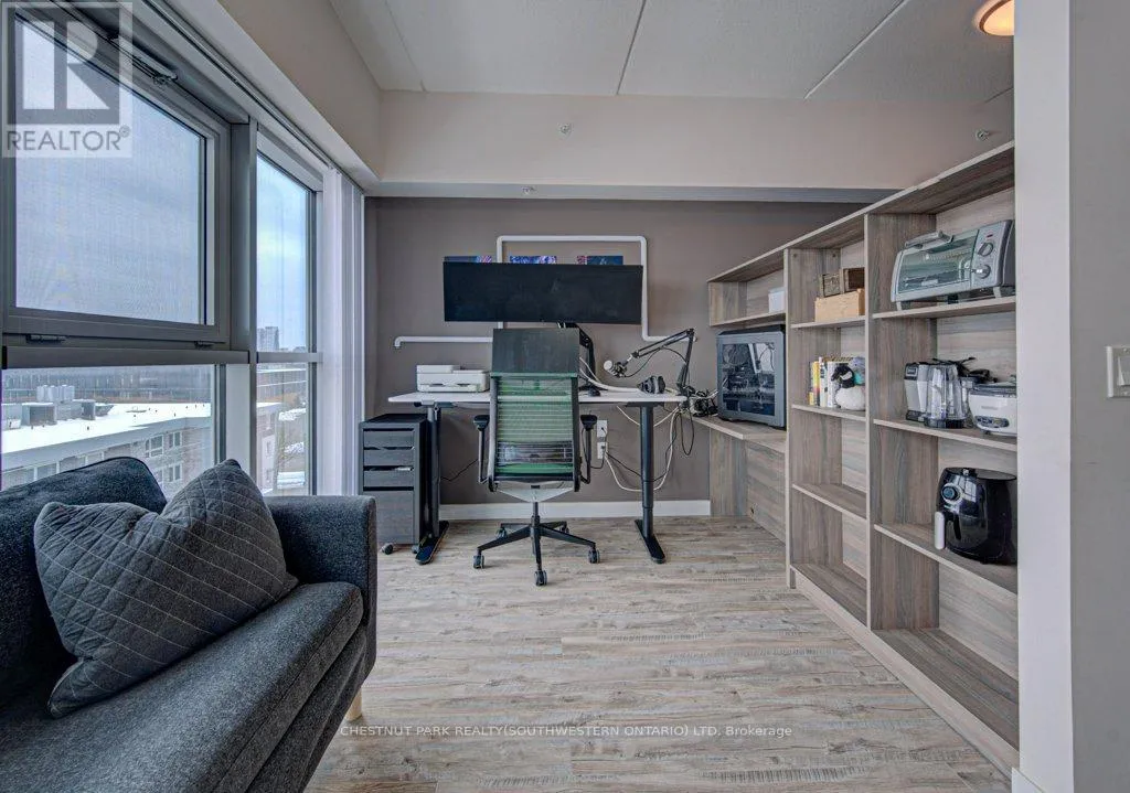 University and Hemlock Welcome to Sage X! Experience stylish urban living in this trendy, fully furnished one-bedroom condominium located in the heart of Waterloo's vibrant student district. This suite features modern decor and high-end finishes, offering both comfort and sophistication. The unbeatable location places you just steps from Uptown Waterloo's diverse dining, shopping, and entertainment options, with a short walk to both Wilfrid Laurier University and the University of Waterloo. Sage X boasts exceptional on-site amenities, including a fitness centre, study rooms, a social lounge, and a beautifully landscaped rooftop terrace-perfect for relaxing or gathering with friends. (id:27476)