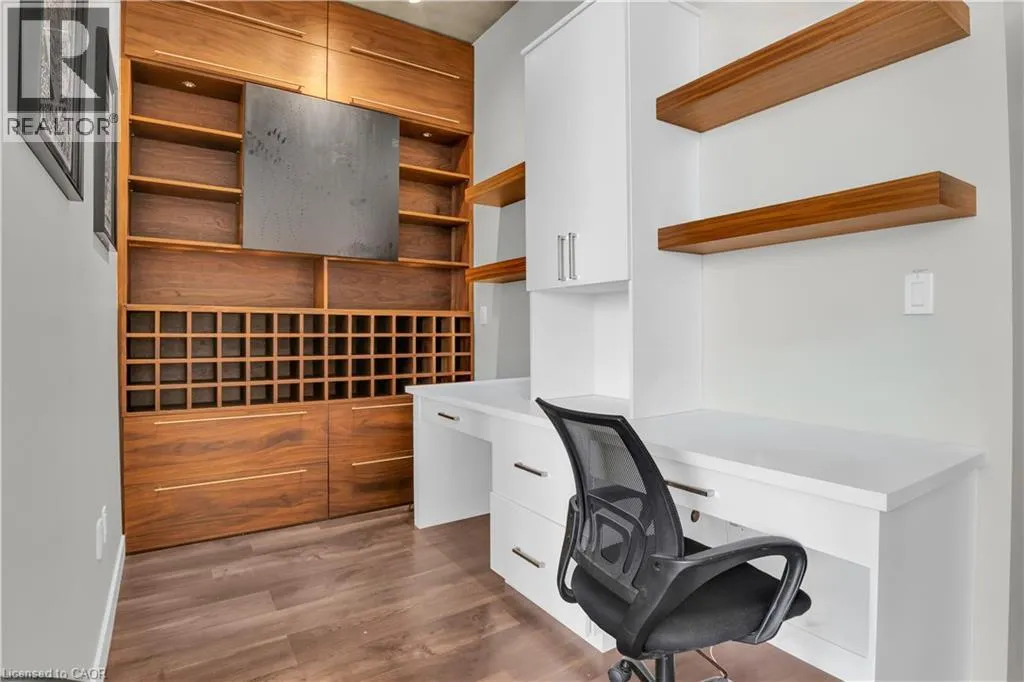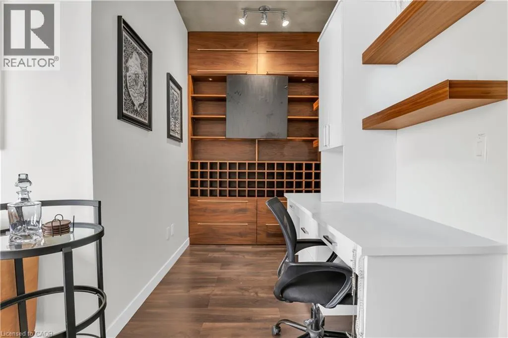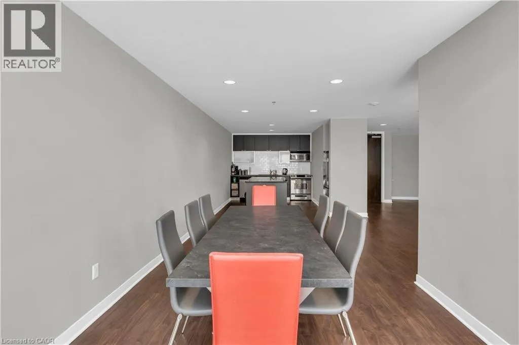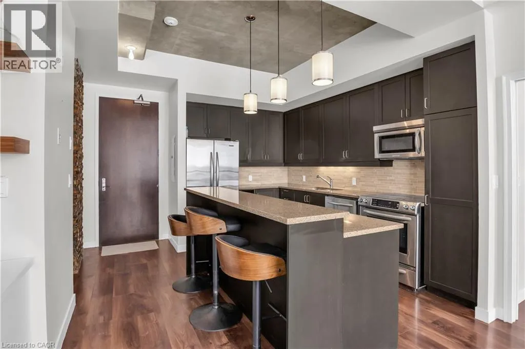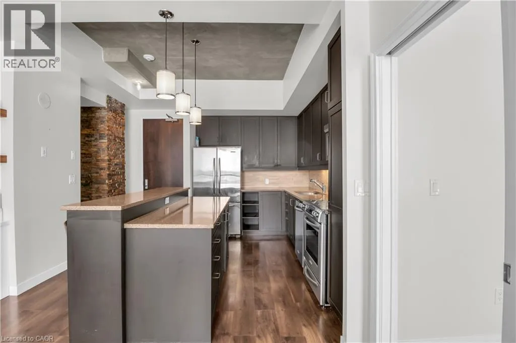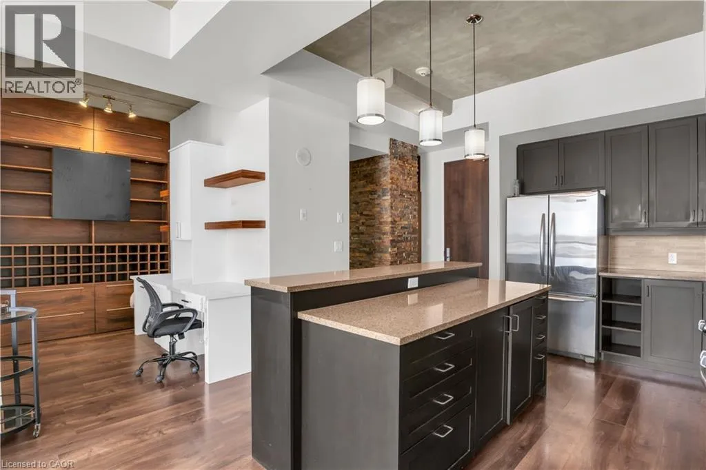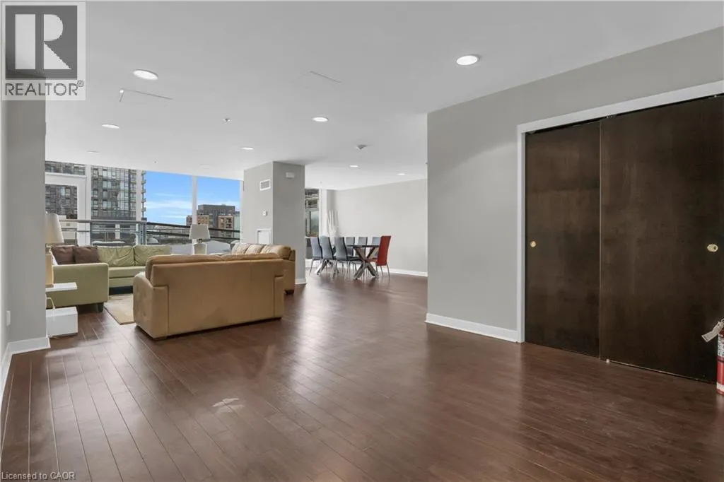 Union Blvd to King St S Welcome to 803-191 King Street South in the heart of downtown Kitchener. This well-designed one bedroom + den, two bathroom suite offers a functional layout with an open concept kitchen and living area framed by floor-to-ceiling windows that fill the space with natural light and showcase the urban surroundings. The kitchen is equipped with stainless steel appliances, ample counter and cupboard space, a centre island with seating, and additional storage, making it ideal for both everyday living and entertaining. Just off the main living area is a versatile den currently used as a home office, easily adaptable to suit your needs whether as a guest area, reading nook, or hobby space. The spacious bedroom provides a comfortable retreat and features its own ensuite bathroom. A second full bathroom adds convenience for guests. This unit also includes two parking spaces and a locker for added storage. Situated in a central downtown location, youâre steps to shopping, restaurants, transit, and everyday amenities, offering a connected and convenient lifestyle. (id:27476)