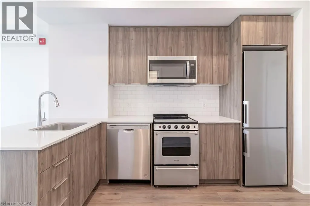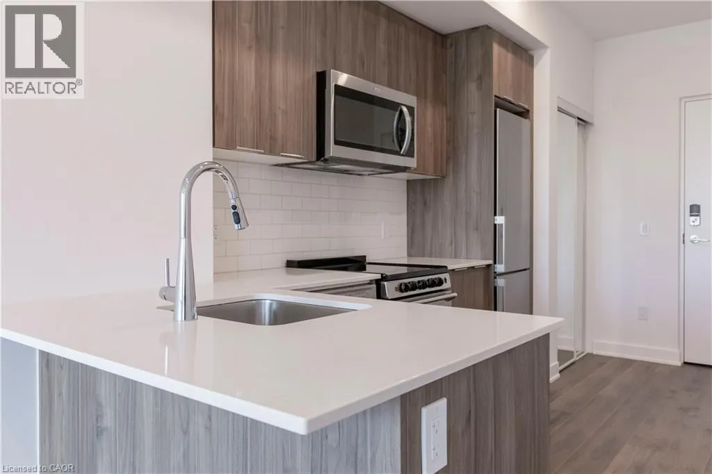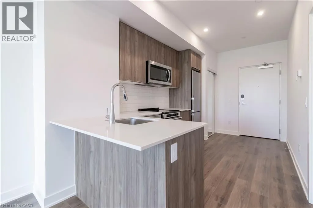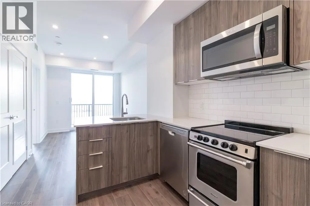 Welcome to Moda, a thoughtfully designed boutique residence offering contemporary living in the heart of Waterloo. This brand-new 1 bedroom, 1 bathroom suite features 509 sq. ft. of efficient, well-planned interior space complemented by a 42 sq. ft. private balcony, creating a comfortable and stylish urban home. The open-concept kitchen and living area is designed for both functionality and flow, featuring quartz countertops, stainless steel appliances, and modern cabinetry, seamlessly connecting to a bright living space filled with natural light. The bedroom is generously sized and offers excellent separation from the living area for added privacy, while the modern bathroom and in-suite laundry add everyday convenience. Clean lines, premium finishes, and a smart layout make this suite feel open and inviting. Ideally located near shopping, dining, transit, universities, and everyday amenities, Moda offers a connected lifestyle with modern design at its core. (id:27476)