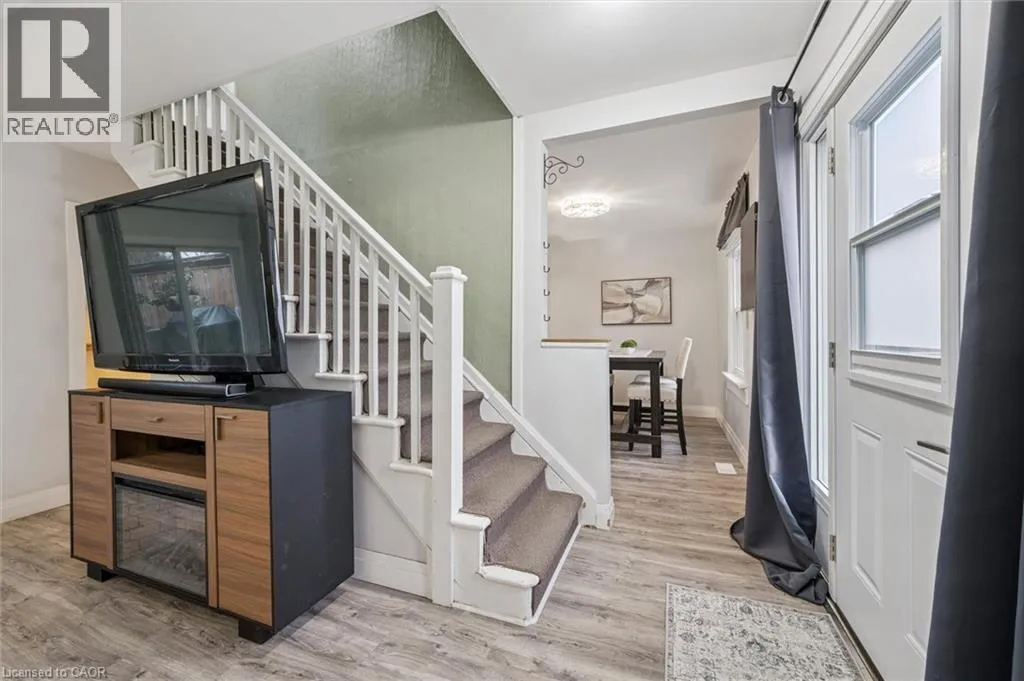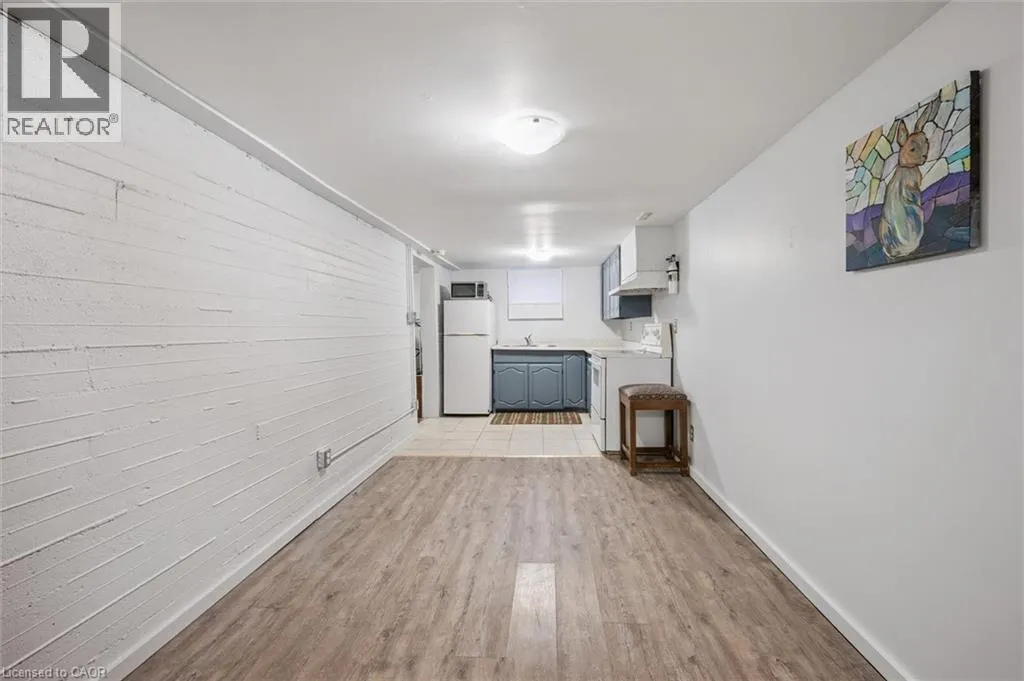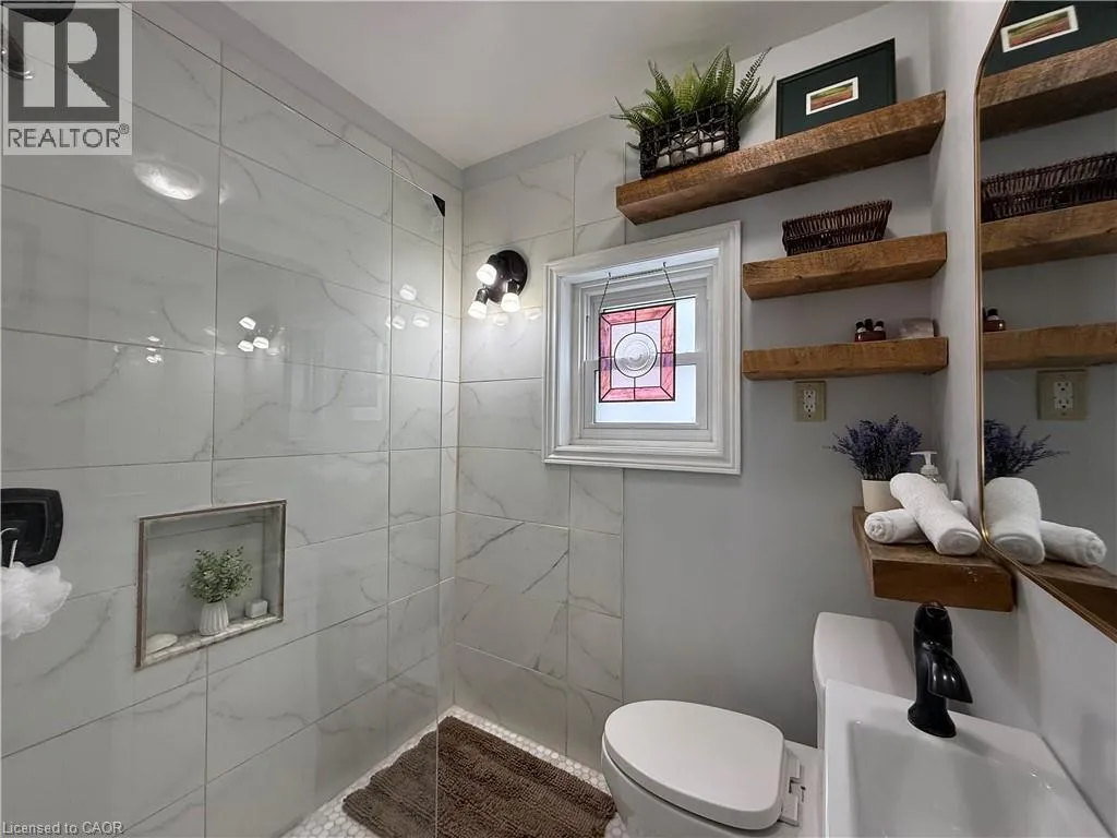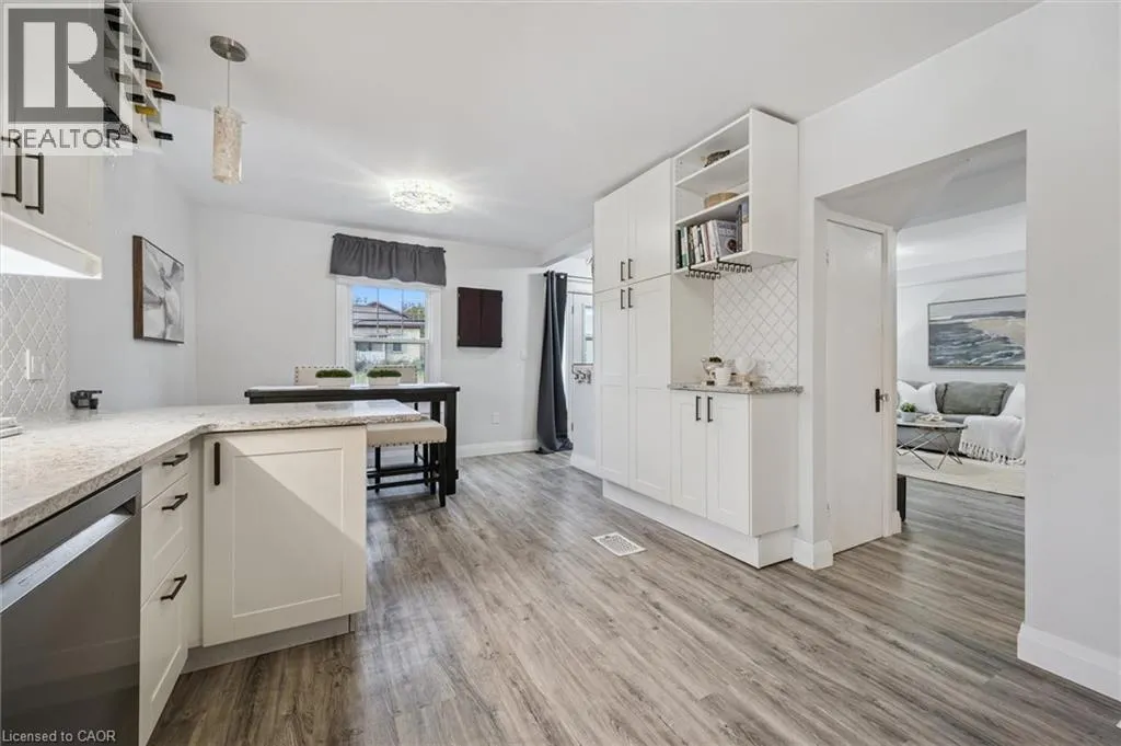 Bridgeport (one way), pass Ellis, on the left Welcome to 145 Bridgeport Rd E, where modern elegance meets investment potential! With a newly renovated bathroom and sleek lower level flooring, this charming one-and-a-half-story detached home is the ultimate opportunity for first-time homebuyers seeking a mortgage helper, families needing an in-law suite, or savvy investors eyeing a lucrative rental opportunity. A stunning large spruce tree in the front yard provides unique privacy while maintaining easy access to all the conveniences of Bridgeport Rd. The double-wide driveway accommodates five vehicles, ensuring ample space. Step into your fully fenced backyard, featuring an expansive 870 sq ft of deck space adorned with a 24ft custom gazebo and a luxurious eight-seat Beachcomber hot tub (2020) perfect for unwinding after a long day. An interlock stone path leads to a beautifully designed stone patio, complete with a retaining wall and efficient drainage. Enjoy lushly landscaped gardens, a built-in garden shed, and a two-level deck that offers a serene escape with stunning park-like views. As you step inside, enjoy an open floor plan filled with natural light and newly renovated living spaces. Patio doors seamlessly connect the indoor and outdoor living areas. All windows and doors were replaced in 2022, enhancing aesthetics and energy efficiency. The main floor kitchen (2022) shines with elegant quartz countertops, a breakfast bar, cozy coffee nook, a stylish tile backsplash, and abundant cupboard space. On the second level, youâll find two generously sized bedrooms with original cherry wood floorboards, fresh paint throughout, and extensive attic storage. The lower level features new flooring, a separate entrance, laundry, and a newly renovated three-piece bath (2023). This rare property is move-in ready and minutes from uptown Waterloo, restaurants, grocery stores, schools, and the LRT. (id:27476)