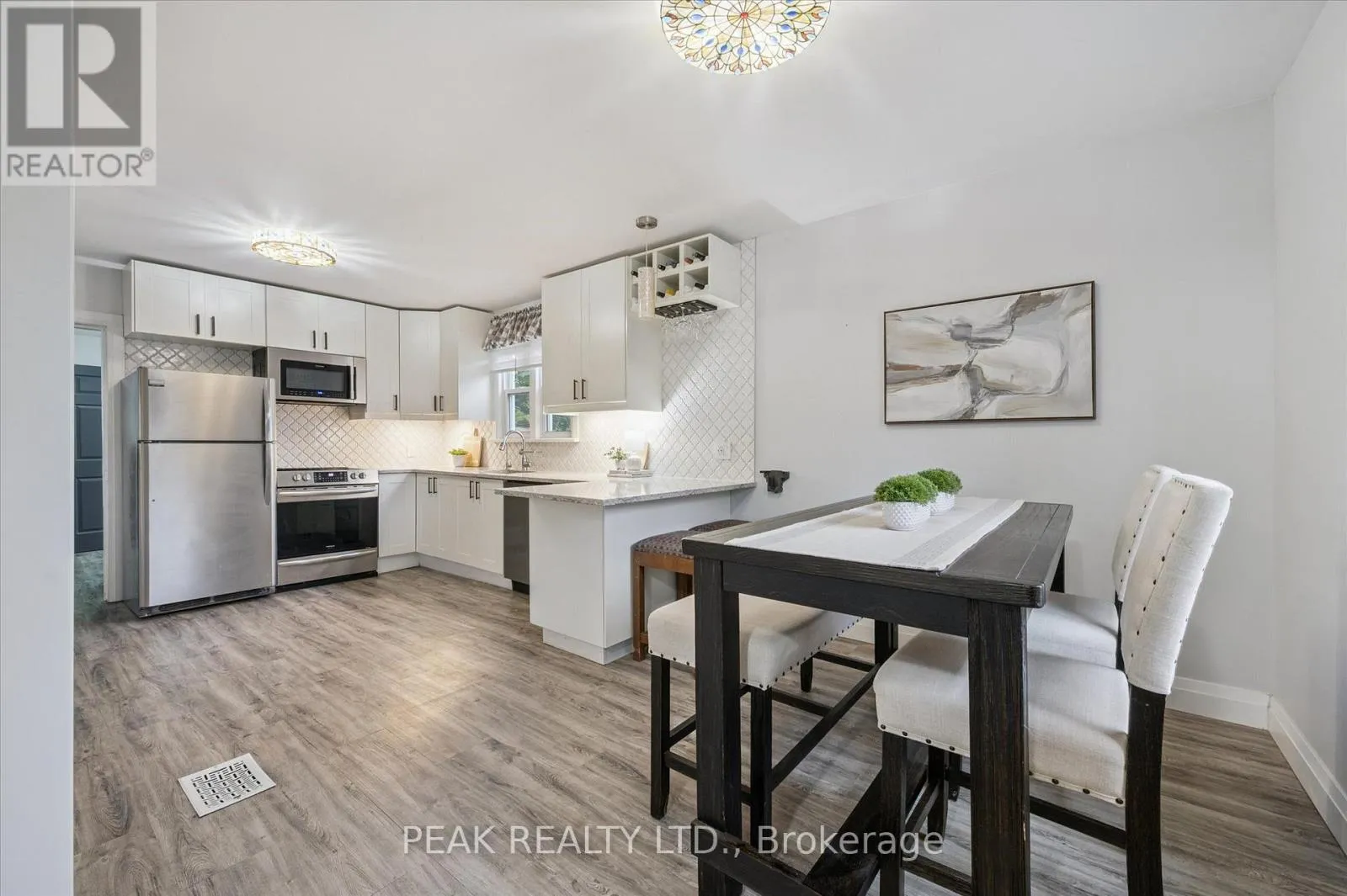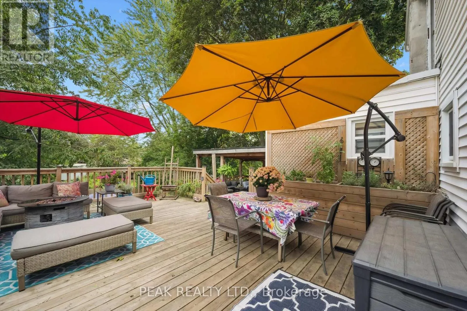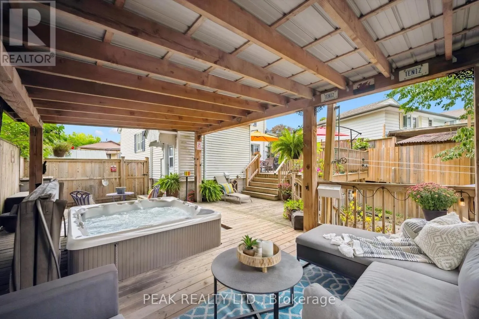 Cross Streets: Bridgeport E & Weber. ** Directions: Bridgeport (one way), pass Ellis, on the left. Welcome to 145 Bridgeport Rd E, where modern elegance meets investment potential! With a newly renovated bathroom and sleek lower level flooring, this charming one-and-a-half-story detached home is the ultimate opportunity for first-time homebuyers seeking a mortgage helper, families needing an in-law suite, or savvy investors eyeing a lucrative rental opportunity. A stunning large spruce tree in the front yard provides unique privacy while maintaining easy access to all the conveniences of Bridgeport Rd. The double-wide driveway accommodates five vehicles, ensuring ample space. Step into your fully fenced backyard, featuring an expansive 870 sqft of deck space adorned with a 24ft custom gazebo and a luxurious eight-seat Beachcomber hot tub (2020) perfect for unwinding after a long day. An interlock stone path leads to a beautifully designed stone patio, complete with a retaining wall and efficient drainage. Enjoy lushly landscaped gardens, a built-in garden shed, and a two-level deck that offers a serene escape with stunning park-like views. As you step inside, enjoy an open floor plan filled with natural light and newly renovated living spaces. Patio doors seamlessly connect the indoor and outdoor living areas. All windows and doors were replaced in 2022, enhancing aesthetics and energy efficiency. The main floor kitchen (2022) shines with elegant quartz countertops, a breakfast bar, cozy coffee nook, a stylish tile backsplash, and abundant cupboard space. On the second level, you'll find two generously sized bedrooms with original cherry wood floorboards, fresh paint throughout, and extensive attic storage. The lower level features new flooring with a separate entrance, laundry, and a newly renovated three-piece bath (2023). This rare property is move-in ready and minutes from uptown Waterloo, restaurants, grocery stores, schools, and the LRT. (id:27476)