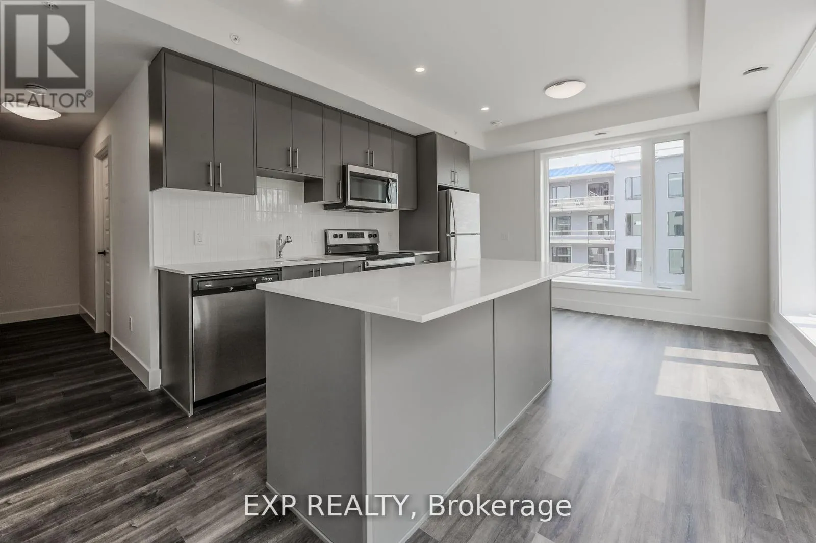 Roger St & Moore Ave Bright & Spacious 2 Bdrm & 1 Bthrm Condo In Sought-After 'Uptown' Waterloo! Spur Line Common Development Built By Reputable Local Builder - Reid's Heritage Homes, Open Concept, 9 Ft Ceilings, Neutral Colours, Floor-To-Ceiling Windows, Quality Laminate Flooring, Kitchen w/ Island & Breakfast Bar, Backsplash, Stainless Steel Appliances & Quartz Counters, Pot Lights Thru-Out, Spacious Bdrms, Large Balcony w/ Unique View, 1 Car Parking, Walk To LRI, Spur Line Trail, Parks, Both Universities+++ (id:27476)