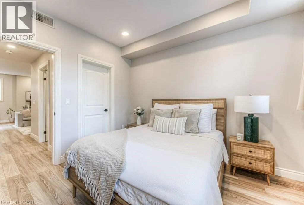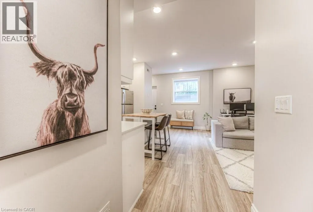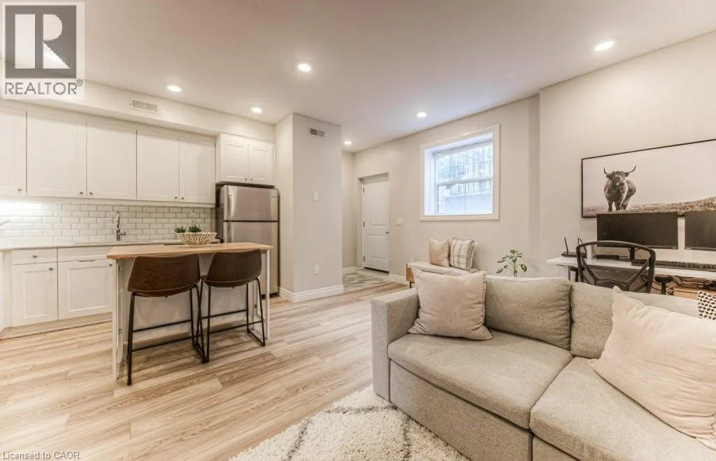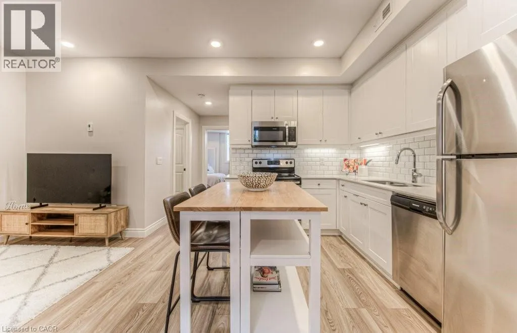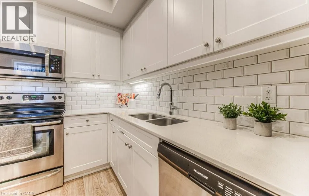 Moore Ave S Welcome to this impeccably maintained executive condo, perfectly located just minutes from both Uptown Waterloo and Downtown Kitchener. With easy access to the highway and just steps from the LRT, this move-in-ready home is ideal for professionals and commuters alike. Thoughtfully designed with a highly functional layout, the unit features high-end finishes, abundant natural light, and a completely carpet-free interior. The spacious open-concept kitchen is equipped with stainless steel appliances, quartz countertops, and generous cabinet spaceâperfect for cooking and entertaining. Additional highlights include 9-foot ceilings, pot lights, fresh paint and all new flooring throughout, a cheater en-suite from the primary bedroom, and the rare bonus of a second entrance to the unit. Modern construction ensures low utility costs, and the location canât be beatâjust steps to the Spur Line Trail, Waterloo Town Square, the Kitchener Tannery District, University of Waterloo and Wilfrid Laurier University, great restaurants, and fresh markets. Donât miss your chance to live in a vibrant, walkable community! (id:27476)