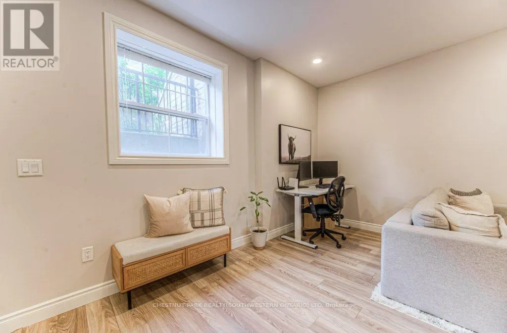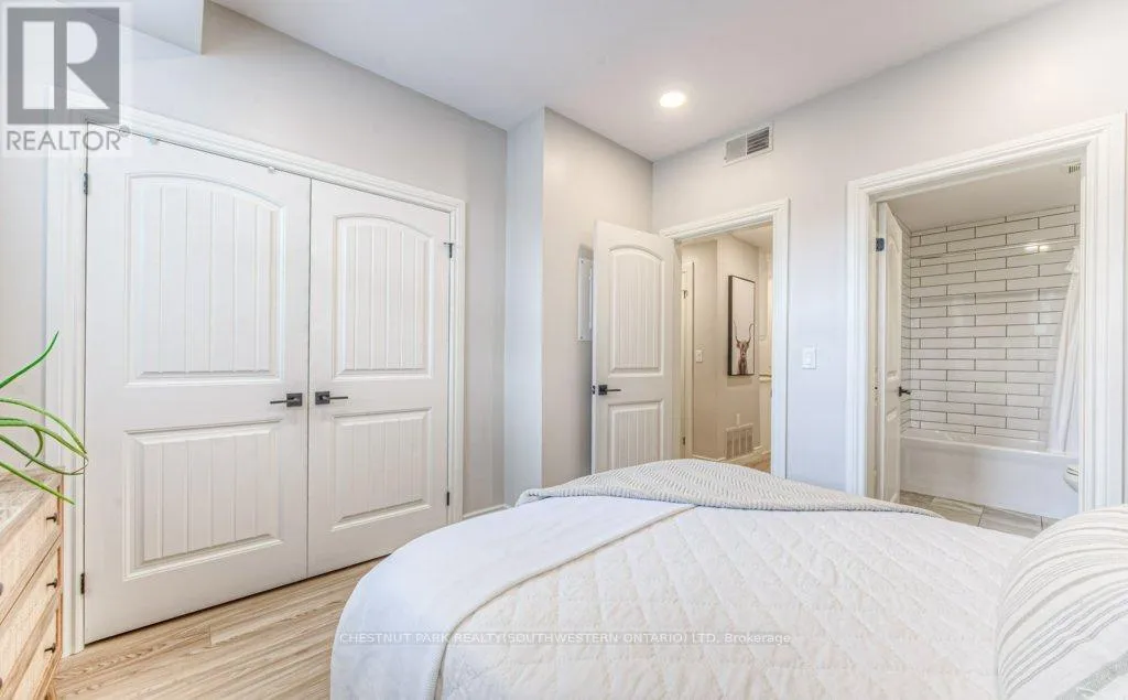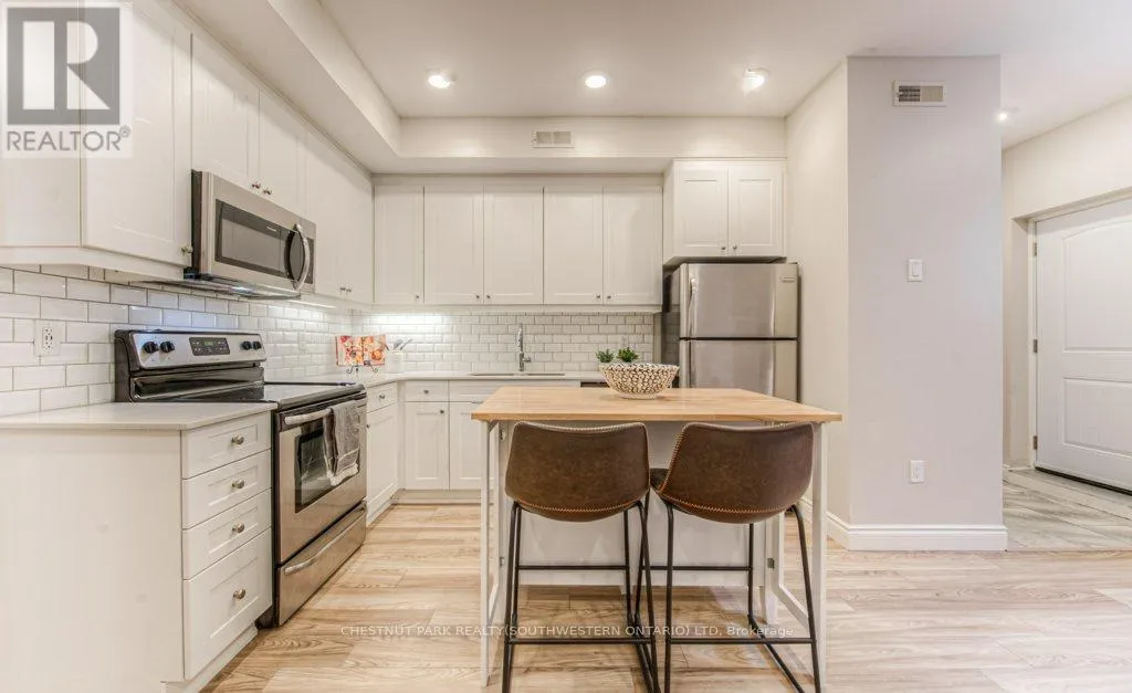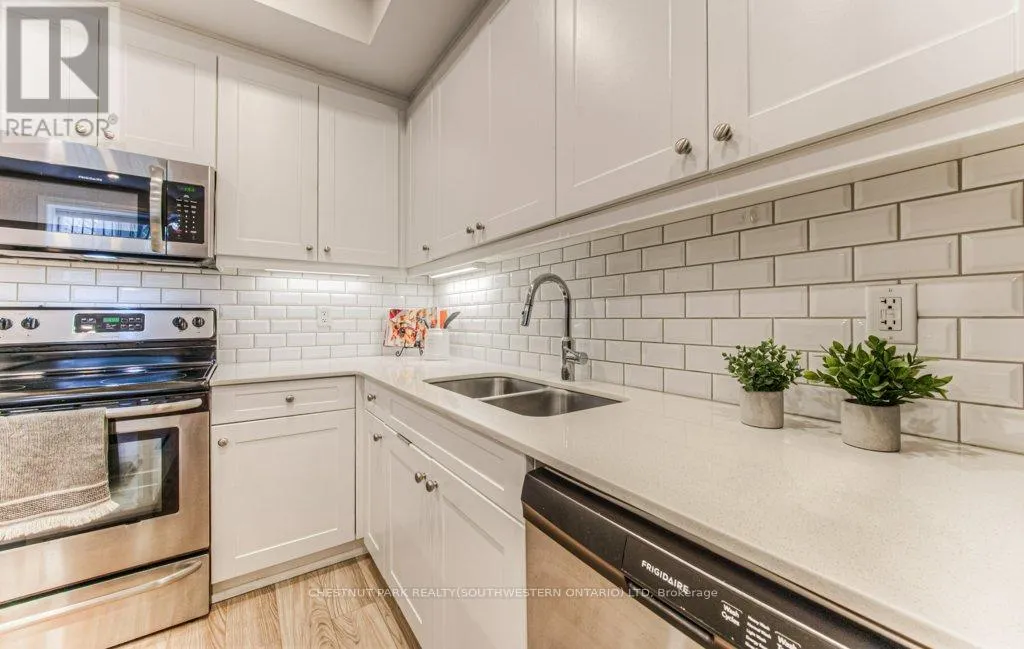Cross Streets: Between King St S and Weber St. ** Directions: Moore St. Welcome to this impeccably maintained executive condo, perfectly located just minutes from both Uptown Waterloo and Downtown Kitchener. With easy access to the highway and just steps from the LRT, this move-in-ready home is ideal for professionals and commuters alike. Thoughtfully designed with a highly functional layout, the unit features high-end finishes, abundant natural light, and a completely carpet-free interior. The spacious open-concept kitchen is equipped with stainless steel appliances, quartz countertops, and generous cabinet space-perfect for cooking and entertaining. Additional highlights include 9-foot ceilings, pot lights, fresh paint and all new flooring throughout, a cheater en-suite from the primary bedroom, and the rare bonus of a second entrance to the unit. Modern construction ensures low utility costs, and the location can't be beat-just steps to the Spur Line Trail, Waterloo Town Square, the Kitchener Tannery District, University of Waterloo and Wilfrid Laurier University, great restaurants, and fresh markets. Don't miss your chance to live in a vibrant, walkable community! (id:27476)