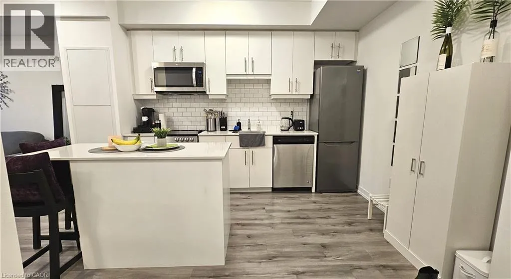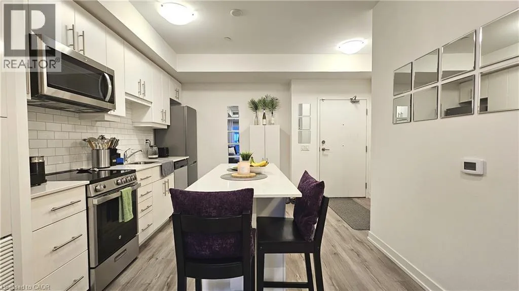 NORTHFIELD DR. TO BRIDGE ST. WELCOME TO BLACKSTONE MODERN CONDOMINIUMS IN WATERLOO! 1 Bedroom & 1 Bathroom unit available for rent as of May 1st, 2026 at $1,850/month + Utilities. This CLAUS floorplan is 580 SQFT + 65 SQFT balcony. Interior features include quartz counter tops, backsplash, kitchen island with breakfast bar, stainless steel appliances & stackable Washer and Dryer inside the unit. The bedroom is a generous size and has a large walk-in closet. This is a carpet-free unit with high-end wood laminate flooring throughout. One parking spot, a basement Storage locker, and Rogers Ignite internet service are all included in the rent. As a tenant you will have access to all building amenities: Bike storage, Gym/exercise room, event/party room, co-working space, Roof top terrace (on the 2nd floor of the NORD building), courtyard with hot-tub, BBQs & firepit. No smoking in unit & building. No Pets preferred. Conveniently located on a bus route and just minutes from Conestoga Mall & the LRT line, parks, and Grey Silo Golf Course. (id:27476)