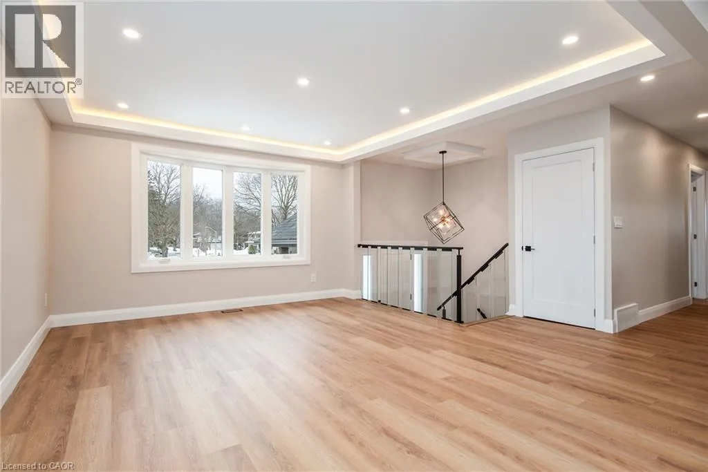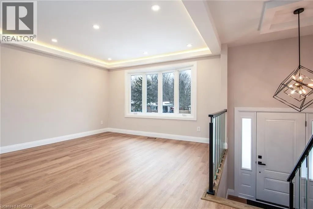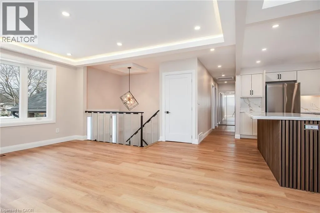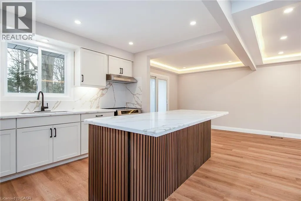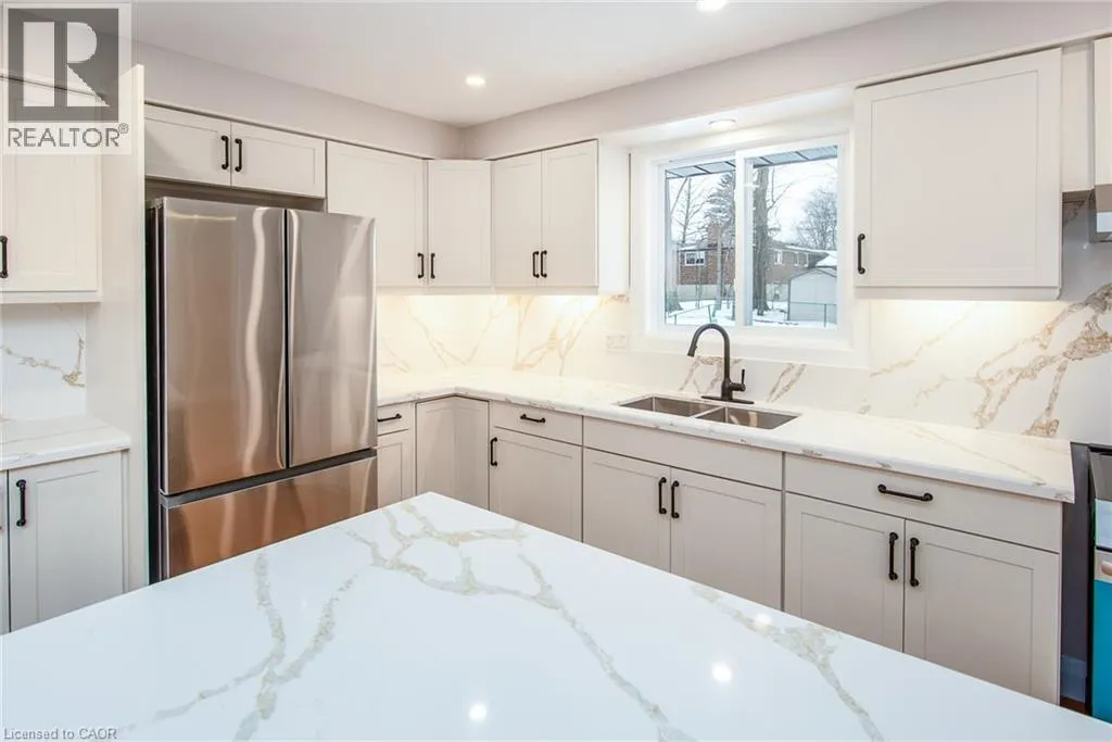NORTHFIELD TO WEBER SOUTH THEN WEST ONTO GLEN FORREST IT IS ON THE RIGHT AFTER GLENDENE CRESCENT 627 Glen Forrest – Fully Renovated Raised Bungalow with Exceptional Versatility! Located in one of the area’s most popular neighborhoods, this beautifully updated home is perfect for families, multi-family living, or investors alike. Enjoy the convenience of nearby schools, shopping, scenic trails, and more — just a 5-minute drive to the U of W and Wilfrid Laurier University, and only 2 minutes to the Expressway for effortless commuting. From the moment you arrive, the extensive exterior upgrades are evident. The home features a newly poured concrete driveway extending to the backyard, a 500 sq ft concrete back pad, and a stunning two-tier deck (approx. $20,000) ideal for entertaining. The aggregate stone porch with covered roof creates a welcoming entrance. Additional updates: newer windows (3 years old), new exterior paint, new front and patio doors, new garage door, new railings (inside and out – approx. $15,000), and pot lights enhancing both curb appeal and functionality. Bright, one-level living on the main floor. The fully renovated open-concept layout seamlessly connects the kitchen, living, and dining areas. The modern kitchen features a large island with quartz countertops, stone backsplash, and brand-new appliances (fridge, stove, dishwasher). New flooring, trim, doors, pot lights, and fresh paint throughout complete the contemporary feel. The main level includes three spacious bedrooms and a beautifully renovated full bathroom. The lower level benefits from large above-grade windows, allowing for abundant natural light. This level offers a generous rec room/living area, 2 additional bedrooms, a full bathroom, and a newly installed second kitchen — making it ideal for extended family, multi-generational living, or strong rental potential. Major mechanical upgrades include all new electrical wiring and panel, and a new furnace (only 2 months old). $150,000 in Total Updates! Must See! (id:27476)