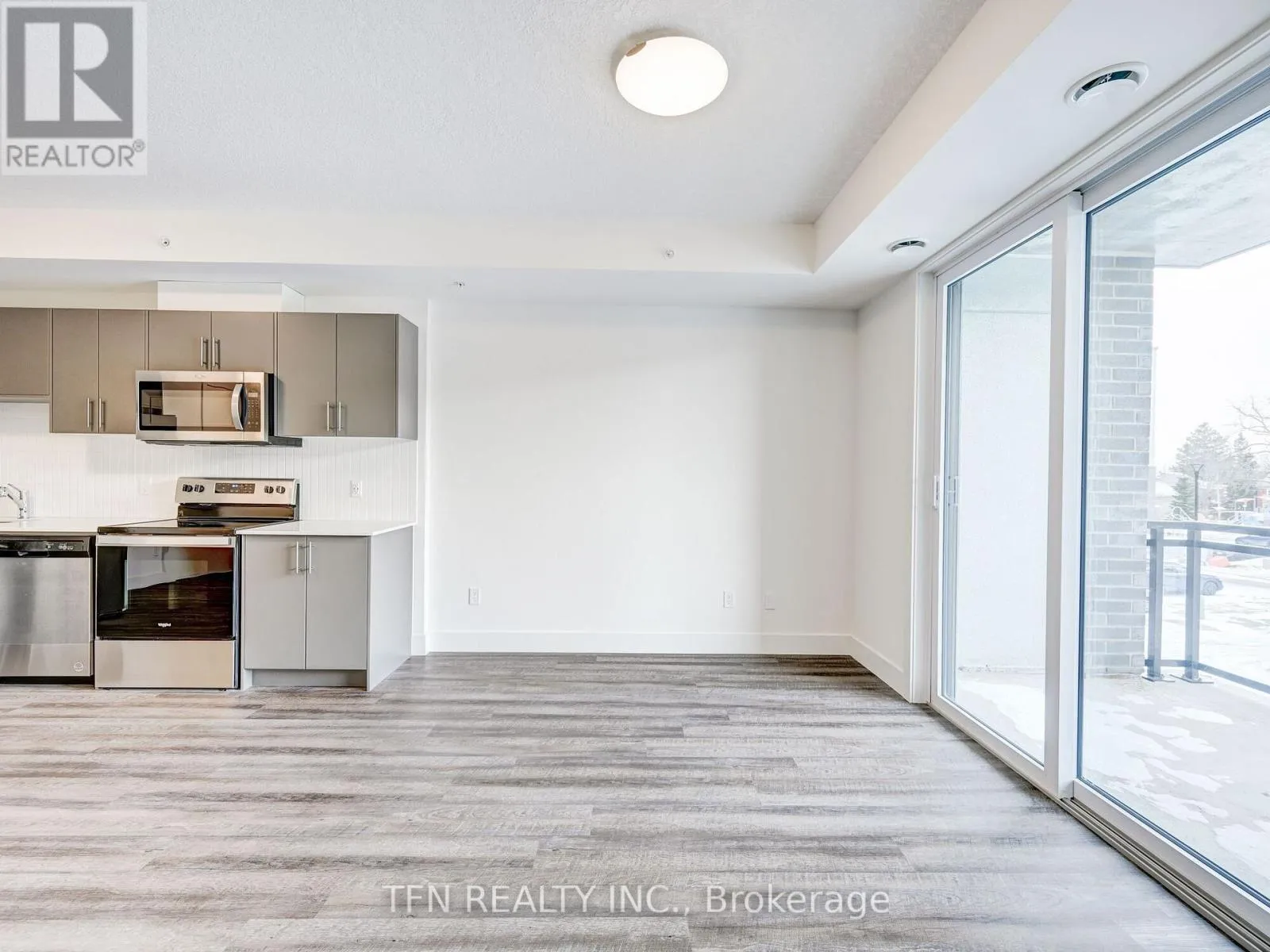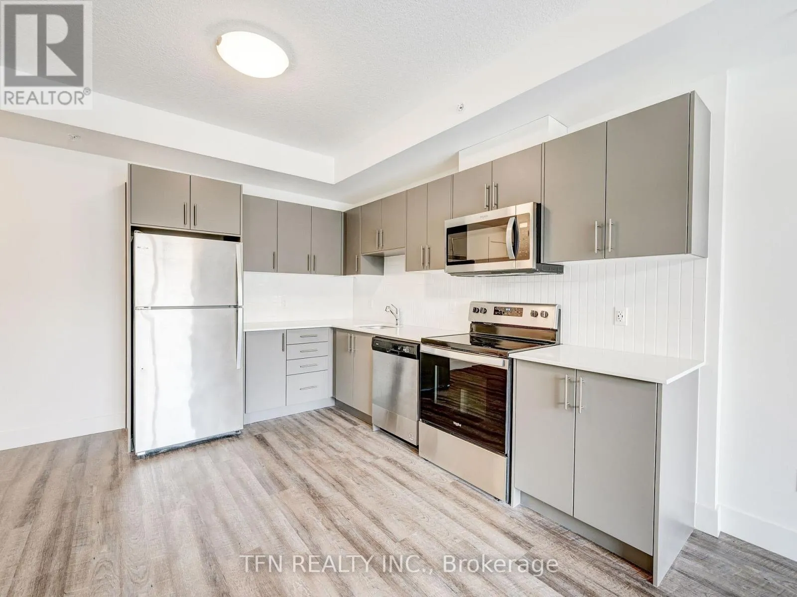 Cross Streets: Roger St & Moore Ave. ** Directions: NA. Welcome To This Sophisticated 1-Bedroom, 1-Bathroom Condo Located In The Vibrant City Of Waterloo! This Unit Offers 604 Square Feet Of Modern And Luxurious Living Space With A Perfect Blend Of Comfort And Style. Step Inside To Discover A Bright Open-Concept Layout Highlighted By High-Quality Luxury Vinyl Plank Flooring And Expansive 9-Foot Ceilings. The Sleek Kitchen Is A Chef's Delight, Featuring Quartz Countertops, Stainless Steel Appliances And Ample Cabinet Space. The Spacious Bedroom Offers A Peaceful Retreat, Large Window And A Spacious Closet. The Elegant Bathroom Features A Quartz Vanity And A Bathtub/Shower Combination, Perfect For Unwinding After A Long Day. Additional Features Of This Stunning Condo Include In-Suite Laundry, A Private Balcony, And A Parking Space. This Location Simply Can't Be Beat - Ideal For Professionals, Students, Or Investors Looking To Be At The Centre Of It All. Just Minutes From The University Of Waterloo, Wilfrid Laurier University, And Steps To The LRT, Easy Access To Downtown Kitchener, Local Restaurants, Boutique Shops, Hospital, And Spur Line Trail. Don't Miss This Rare Opportunity To Own A Stylish Condo In One Of Waterloo Regions Most Sought-After Communities. (id:27476)