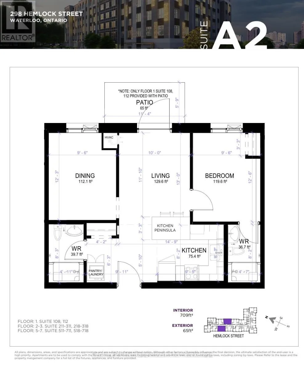 Hickory and Hemlock Welcome to Unit 618 at 298 Hemlock Street - modern living in the heart of Waterloo's university district. Just steps from Wilfrid Laurier University, the University of Waterloo, transit, dining, and everyday amenities, this location offers unbeatable convenience in a vibrant community. This 709 sq. ft. one-bedroom plus dining suite with two full bathrooms delivers a smart, functional layout designed for comfort and flexibility. The spacious bedroom is complemented by a dedicated dining area, ideal for entertaining, studying, or working from home, while the second bathroom adds rare convenience and privacy. The contemporary kitchen features granite countertops, full wood cabinetry, and sleek LED lighting, flowing seamlessly into the open-concept living space. Floor-to-ceiling windows flood the unit with natural light, creating a bright and airy atmosphere throughout. Efficient, modern, and exceptionally located - Unit 618 offers elevated urban living in one of Waterloo's most sought-after buildings. (id:27476)