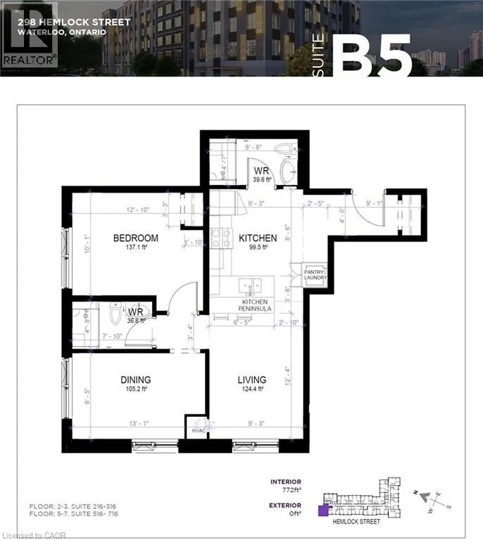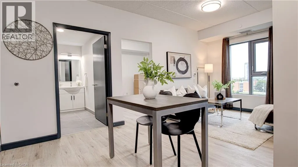 Hemlock St and Hickory St Located in the heart of Waterloo's university district, just minutes from Wilfrid Laurier University and the University of Waterloo, 298 Hemlock Street offers an exceptional opportunity to live in one of the city's most vibrant and well-connected communities. With convenient access to public transit, parks, shopping, and everyday amenities, everything you need is just steps away.This fully furnished one-bedroom plus dining suite offers 772 sq. ft. of thoughtfully designed living space and is available for $2,210 per month. The layout provides a spacious primary bedroom along with a dedicated dining area, creating a functional and comfortable flow that works well for professionals, graduate students, or small households seeking extra usable space. The modern kitchen features granite countertops, full wood cabinetry, and energy-efficient LED lighting, seamlessly connecting to the open-concept living and dining area. Floor-to-ceiling windows allow natural light to pour in, enhancing the bright and welcoming atmosphere throughout the unit. With contemporary finishes, a practical layout, and an unbeatable location, this suite delivers comfort, convenience, and urban lifestyle in the heart of Waterloo. Contemporary, practical, and perfectly located â this is elevated urban living in Waterlooâs most in-demand neighbourhood. (id:27476)