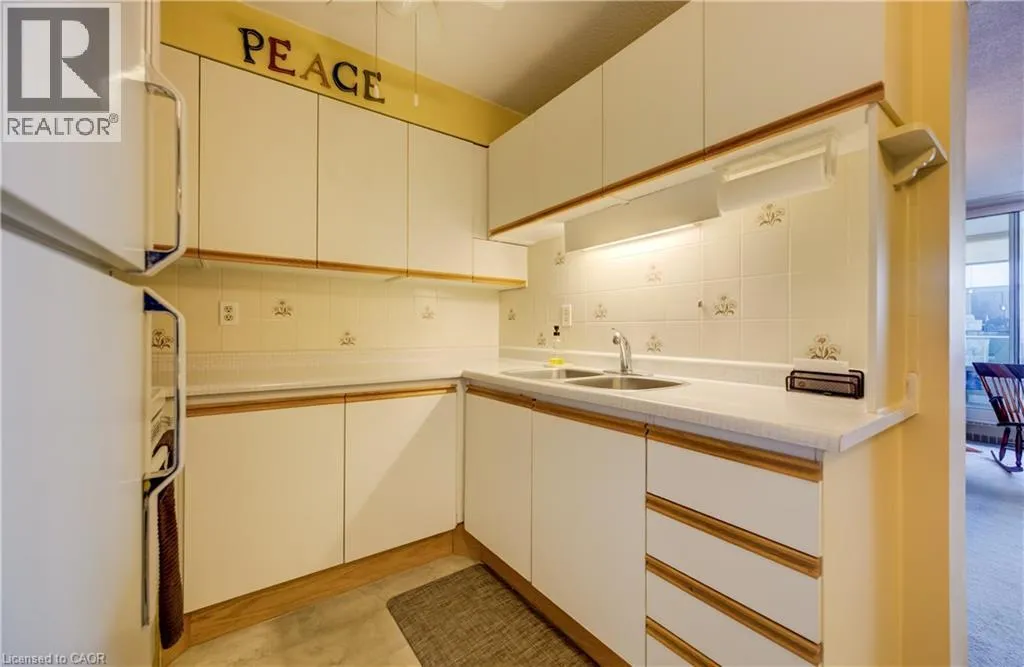 From Bluevale Street N (near Lincloln Road), turn onto Harvard Place. Welcome to Unit 911 at 225 Harvard Place in Waterloo â an excellent opportunity for first-time buyers, downsizers, or investors. This 1 bedroom, 1 bathroom condo offers 707 sq ft of well-designed living space in a secure, well-established building. The bright living and dining area provides comfortable space to relax or entertain, while the functional kitchen offers ample cabinetry and workspace. The spacious primary bedroom includes convenient in-suite storage, and the unit features an enclosed balcony, which we love to refer to as a Sun Room, to enjoy elevated views. Condo fees include heat, hydro, water, parking, building insurance, maintenance, and landscaping â simplifying monthly budgeting. Residents enjoy access to amenities including an elevator, exercise room, games room, library, sauna, and visitor parking. Photos 41-45 have been Virtually Staged. Located in Waterloo East near Glenridge/Lincoln Heights, this property offers easy access to public transit, highways, shopping, and everyday conveniences. One underground parking space included. (id:27476)