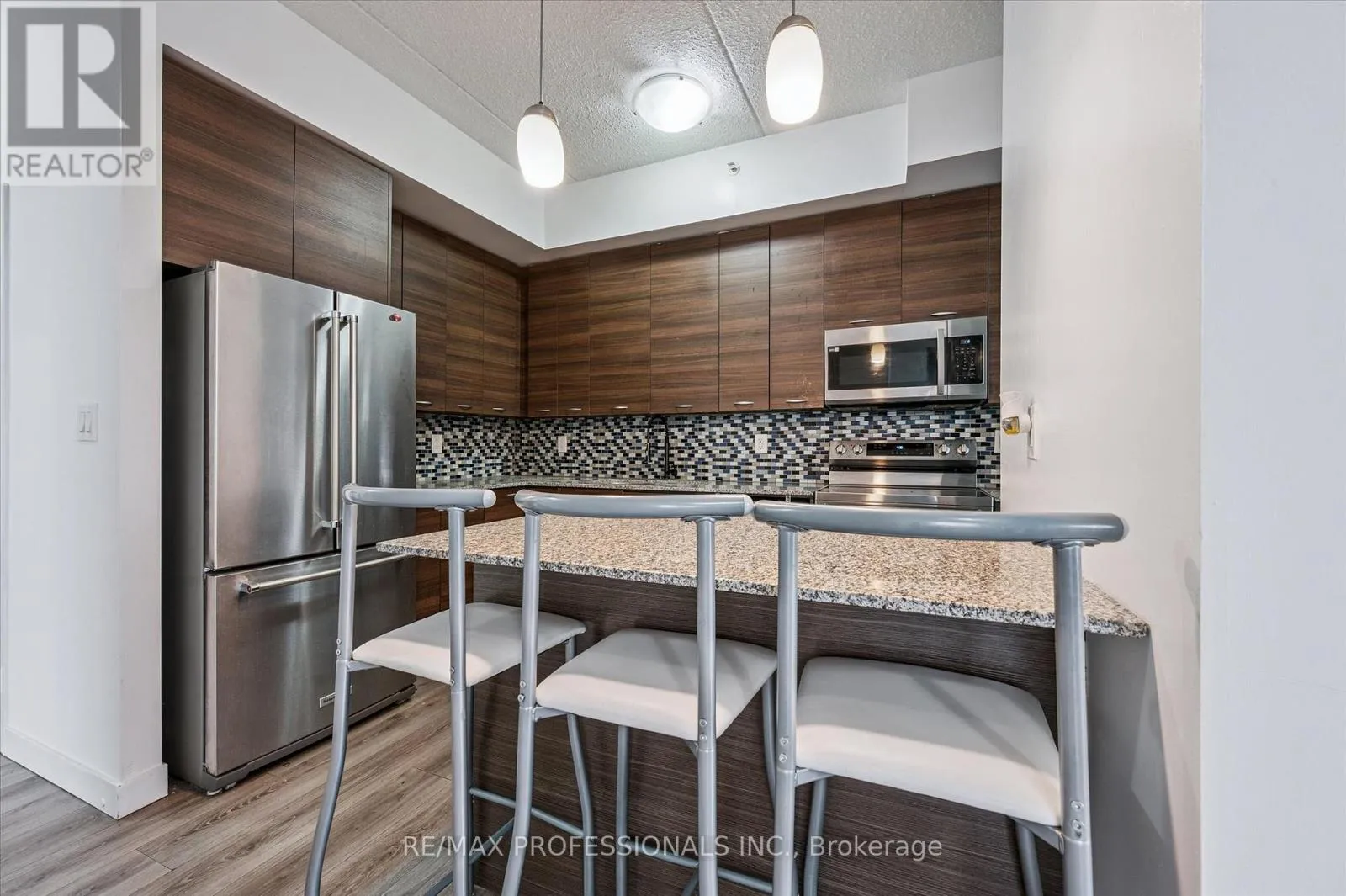 King St N and Hickory St W Welcome to this bright and spacious 2-bedroom plus den corner unit, featuring an incredible private terrace that truly gives the feel of penthouse-style living. The home offers two well-sized bedrooms, along with a large den that can easily function as a third bedroom or home office, providing excellent flexibility. Situated in the highly desirable University District, you're just a short walk to the University of Waterloo, Wilfrid Laurier University, transit, restaurants, and everyday conveniences. This well-designed suite features 2 full bathrooms, a walkout to the private terrace from the living room, an additional balcony off the living room, and a walkout balcony from the primary bedroom-ideal for enjoying outdoor space from multiple areas of the unit. The kitchen includes stainless steel appliances and an island with breakfast bar, perfect for everyday living and entertaining. Residents can enjoy excellent building amenities, including a fitness center, meeting area, and party room. This beautiful corner unit, with its rare combination of multiple outdoor spaces and a versatile layout, offers outstanding value in one of Waterloo's most sought-after locations. One underground parking space is included in the sale. (id:27476)