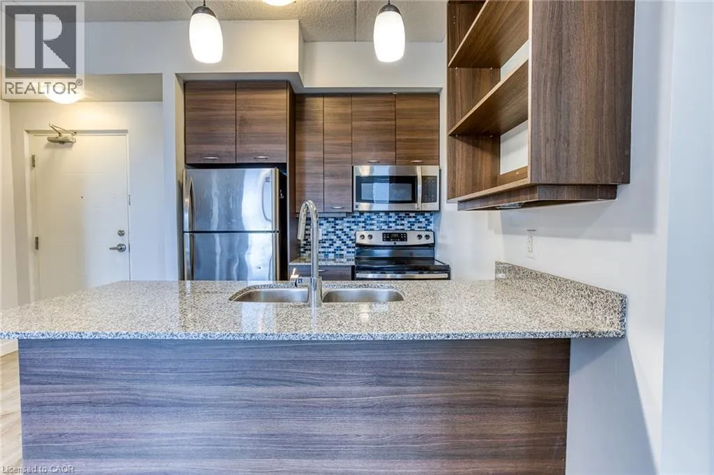 Columbia St. W. to Spruce St. Welcome to a fantastic opportunity to own an upscale student or young professional residence in the highly sought-after SAGE II condominium. This modern unit features a stylish kitchen design and large windows in both the living room and bedroom that fill the space with abundant natural light. The unit includes five stainless steel appliances and most of the existing furniture, offering a convenient move-in ready option. Enjoy a private balcony, elegant granite countertops, and in-suite laundry for added comfort and practicality. Residents also have access to excellent building amenities, including a fitness centre and a lounge. Ideally located within walking distance to the University of Waterloo and Wilfrid Laurier University, this condo is close to all the amenities of Uptown Waterloo, public transit, and offers easy access to major highways. (id:27476)