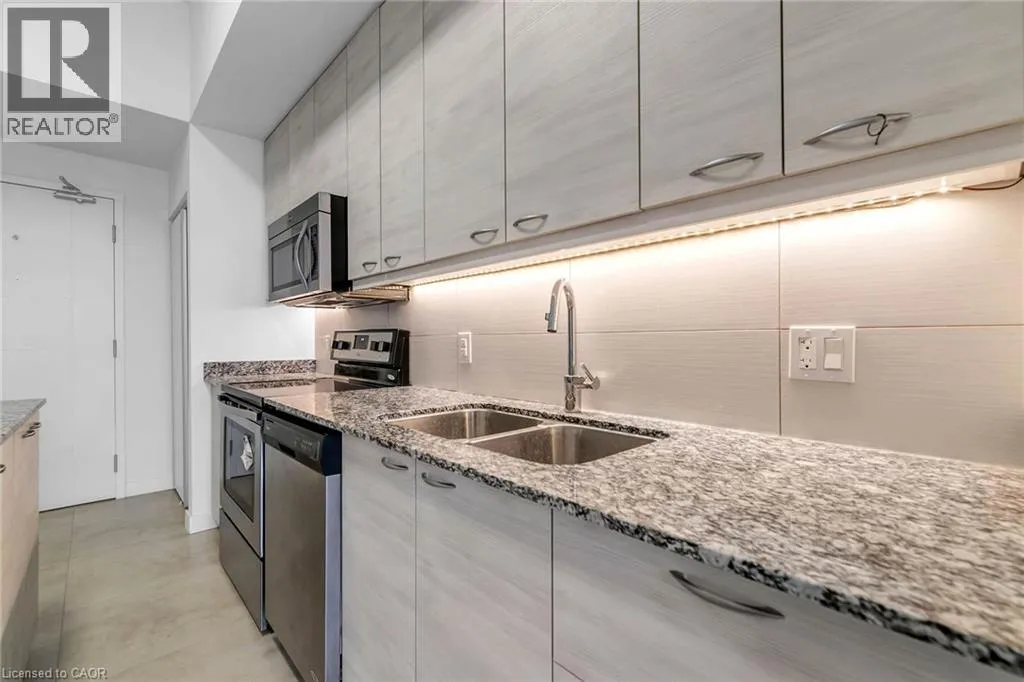 UNIVERSITY AND LESTER Excellent location in the heart of Waterloo, conveniently situated near all amenities. This well-maintained 1 bedroom, 1 bathroom unit features high ceilings and comes fully furnished with the added bonus of 1 underground parking space. The modern kitchen boasts granite countertops and stainless steel appliances, and includes private ensuite laundry. Enjoy the spacious 19'x5' balcony accessible from both the living room and bedroom. This unit offers unlimited high-speed internet, access to a gym facility, study lounge, and theatre room. Don't pass up this fantastic opportunity! Close to Wilfrid Laurier University, the University of Waterloo, and Conestoga College. (id:27476)