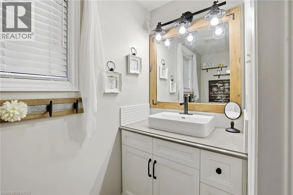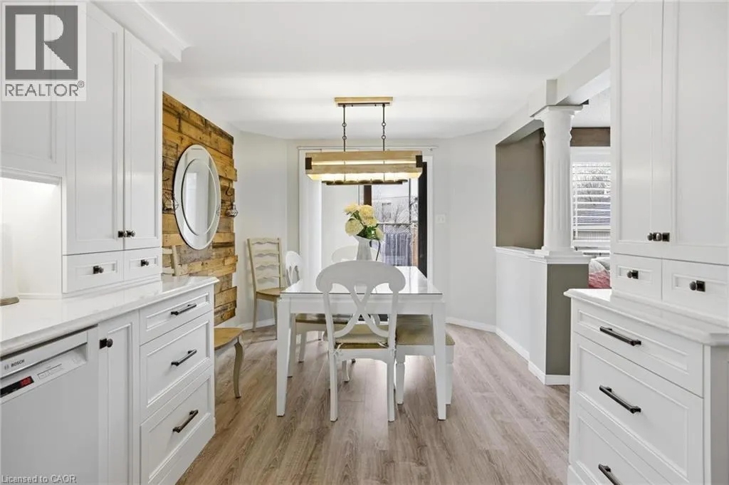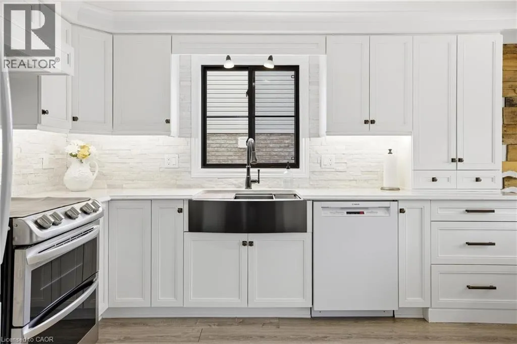 Welcome to 733 Breakwater Cres, a beautifully updated family home tucked into one of Waterlooâs most connected and community-focused neighbourhoods. Offering just over 1,800 sq ft of thoughtfully designed living space, a finished basement, and a distinctive exterior, this home blends style, comfort, and functionality. From the moment you arrive, youâll notice that no other home in the subdivision looks quite like this one, thanks to the custom front entrance and inviting porch. In the spring, the porch sits beneath a fragrant canopy of lilacs, creating the perfect place to sit and enjoy the neighbourhood. The landscaped gardens are designed for easy maintenance with Boston ivy and flowering periwinkle ground cover, while the backyardâs yellow trumpet creeper often attracts hummingbirds. Inside, the home welcomes you with soaring ceilings at the front entrance and warm natural light throughout. Morning sun fills the kitchen and living room, highlighting the beautifully updated farmhouse-inspired kitchen (2017) with quartz countertops, furniture-style cabinetry with crown moulding, an apron sink, double oven, and hidden range hood. The raised west-facing family room is the perfect place to relax while enjoying sunset views. Upstairs youâll find three comfortable bedrooms and an updated main bathroom with a practical low-profile tub ideal for kids or pets. The finished basement features a theatre room with sound-absorbing panels, perfect for movie nights. Updates include roof (2019), black-framed windows (2024), heat pump (2025), dishwasher (2021), and oven (2023). Poured concrete patios at the front and back add outdoor living space. Located steps from walking and biking trails connecting to RIM Park, this neighbourhood is known for its strong community with a neighbourhood garden, winter skating rink, and seasonal gatherings. With a dbl car garage, modern finishes, and a welcoming community, 733 Breakwater Cres is a place youâll love to call home. (id:27476)