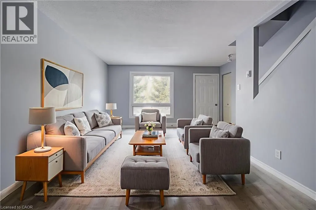 GLEN FOREST BLVD FANTASTIC STARTER HOME OR INVESTMENT IN A PRIME WATERLOO LOCATION. Welcome to #18 -249 Cedarbrae Avenue, Waterloo, an excellent opportunity to enter the real estate market as a first-time buyer or investor. The main floor features a spacious living room and an updated galley-style kitchen with plenty of freshly refreshed cabinetry, open to the dinette for easy everyday living. Upstairs, youâll appreciate the generous primary bedroom with a walk-in closet, along with a 2nd spacious bedroom and a beautiful 4pc bathroom completing the upper level. The partly finished basement offers additional space ready for your personal finishing touches, with a rough-in for a bathroom, and a separate entrance to a common hallway provides direct access to the basement, a unique and valuable bonus. Ideally located close to both universities, Sobeys, Conestoga Mall, public transit, and the LRT, with easy access to the Expressway. The public library, Columbia Lake, Laurel Creek Conservation Area, parks, shopping, and restaurants are all nearby, making this an incredibly convenient and desirable location. Perfect for a first home or investment property, this condo townhouse also includes exterior maintenance in the condo fees and one dedicated parking space. Virtually staged. (id:27476)
