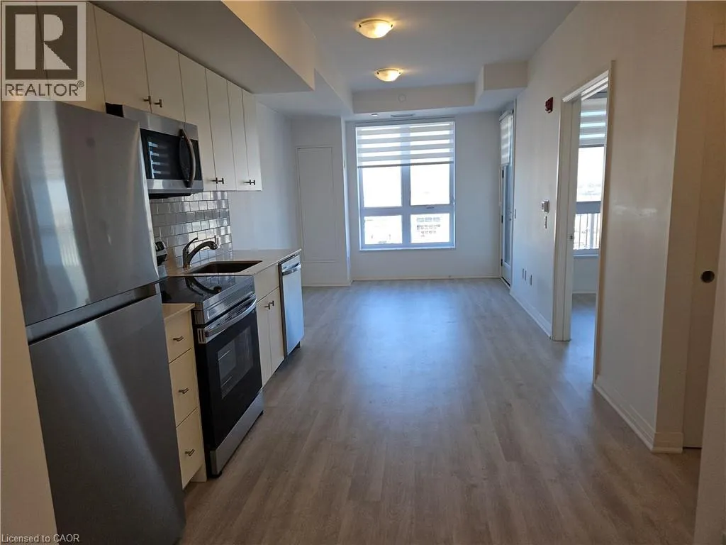 Weber to Golden Eagle Start your day with morning sunshine and sunrise views in this east-facing 1 bedroom, 1 bathroom condo. Enjoy your coffee from the kitchen or private balcony as natural light fills the open-concept living space. Located in The Jake, this well-designed suite offers modern finishes, a contemporary kitchen, and in-suite laundry for everyday convenience. The building includes a comfortable resident lounge, secure bike storage, community mailboxes with a large parcel receiving area, and a modern Peloton fitness studio. Visitor parking and an electric vehicle charging station are also available. Ideally situated close to Starbucks, shopping, restaurants, the University of Waterloo, Wilfrid Laurier University, and the ION Light Rail Transit, making commuting and daily errands easy. One parking space is available for an additional $100 per month. Tenants pay hydro, water, and gas. (id:27476)