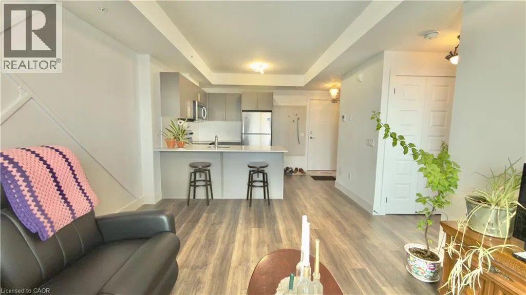 Roger St & Moore Ave S Discover comfortable and convenient living in this bright, well-maintained one-bedroom apartment on the 5th floor, offering abundant natural light. Ideally located just minutes from Uptown Waterloo, the University of Waterloo, Wilfrid Laurier University, Google headquarters, and Grand River Hospital, this unit places you close to everything the Waterloo Region has to offer. The thoughtfully designed open-concept layout features a spacious kitchen with quartz countertops, stainless steel appliances, and a breakfast bar that flows seamlessly into an inviting living area. The generous bedroom includes a large window that fills the space with light. Additional highlights include a stylish three-piece bathroom with updated fixtures, in-suite laundry, stainless steel appliances, and a private balcony-perfect for enjoying fresh air. (id:27476)