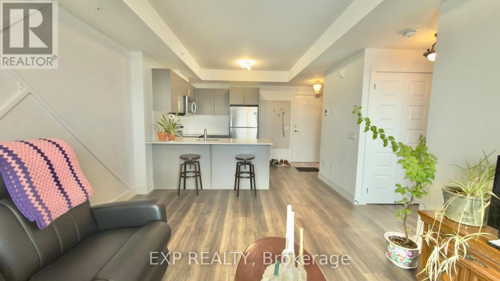 Cross Streets: King St. W and Moore Ave. ** Directions: Roger St & Moore Ave S. Discover comfortable and convenient living in this bright, well-maintained one-bedroom apartment on the 5th floor, offering abundant natural light. Ideally located just minutes from Uptown Waterloo, the University of Waterloo, Wilfrid Laurier University, Google headquarters, and Grand River Hospital, this unit places you close to everything the Waterloo Region has to offer. The thoughtfully designed open-concept layout features a spacious kitchen with quartz countertops, stainless steel appliances, and a breakfast bar that flows seamlessly into an inviting living area. The generous bedroom includes a large window that fills the space with light. Additional highlights include a stylish three-piece bathroom with updated fixtures, in-suite laundry, stainless steel appliances, and a private balcony-perfect for enjoying fresh air. (id:27476)