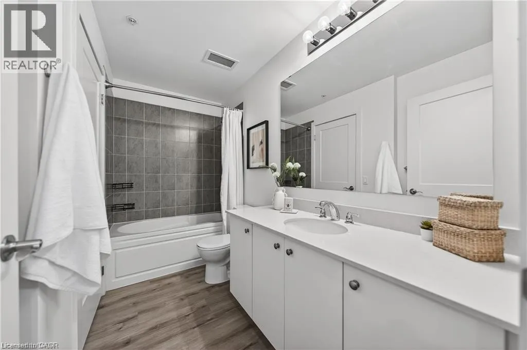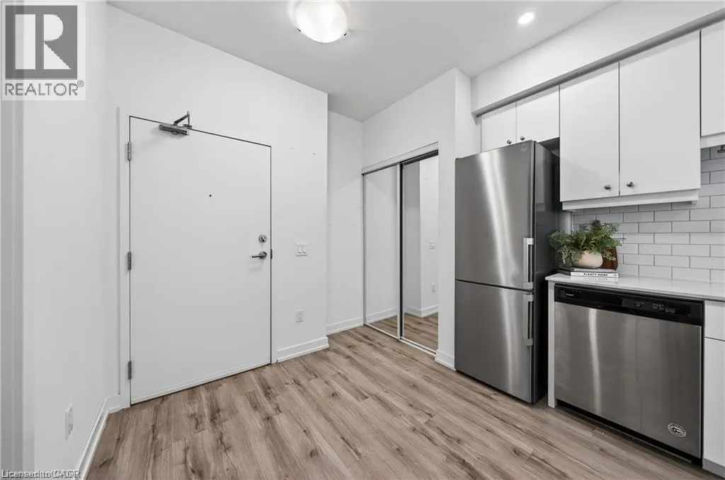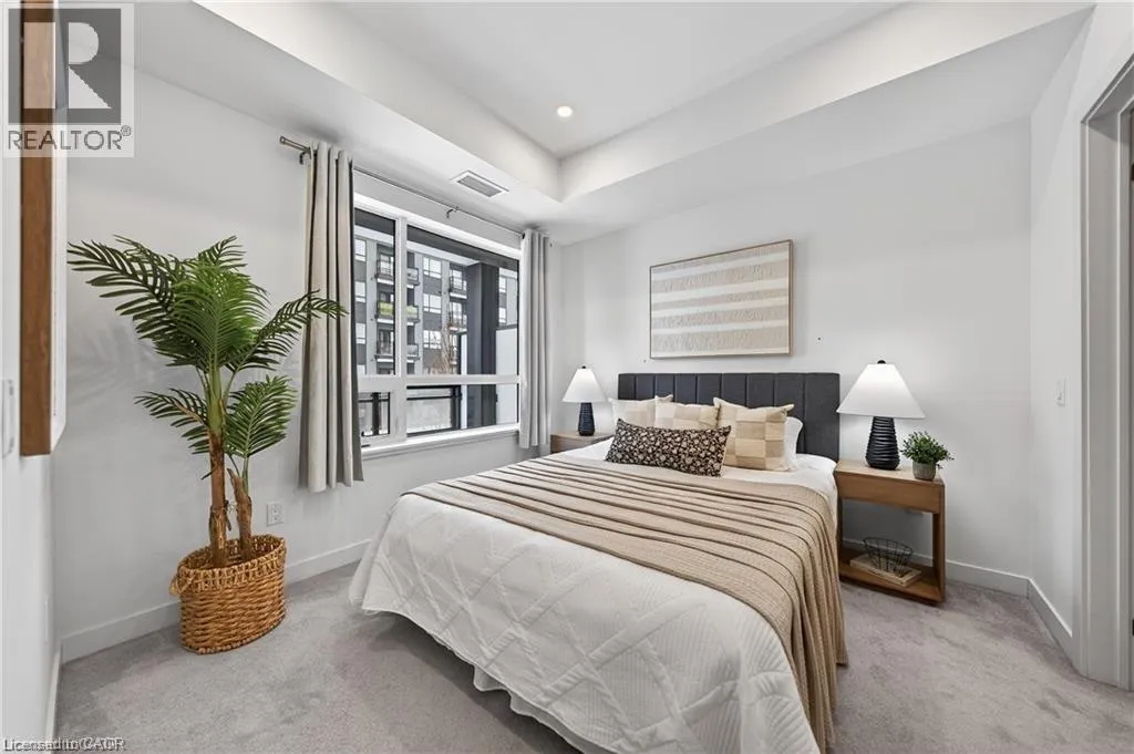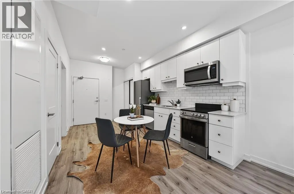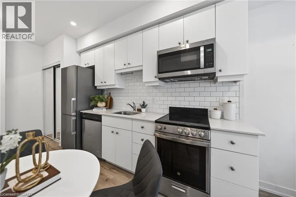 Northfield at Bridge Available MAY 1st! Discover low-maintenance, modern living in the heart of Waterloo. Unit 210 at the Blackstone is a bright, airy 1-bedroom, 1-bath condo offering 573 sq ft of comfortable space. Tall ceilings and built-in blinds enhance the open-concept layout. The kitchen is equipped with stainless steel appliances, durable stone countertops and a contemporary tile backsplash, flowing into the cozy living area with walkout to a private balcony - perfect for morning coffee or evening relaxation. The carpeted bedroom includes a roomy walk-in closet and the 4-piece bathroom is well-appointed. Practical conveniences include in-suite laundry, a storage locker and one underground parking space. The building elevates daily living with plentiful amenities: rooftop terrace with BBQs, exercise room, courtyard with BBQ and firepit, party/study room, bike room and visitor parking. Ideally situated close to Conestoga Mall, grocery stores, restaurants (including Browns Socialhouse), St. Jacobs Market, walking trails and public transit. Ideal for professionals or anyone seeking a well-located, amenity-rich rental in Waterloo. (id:27476)