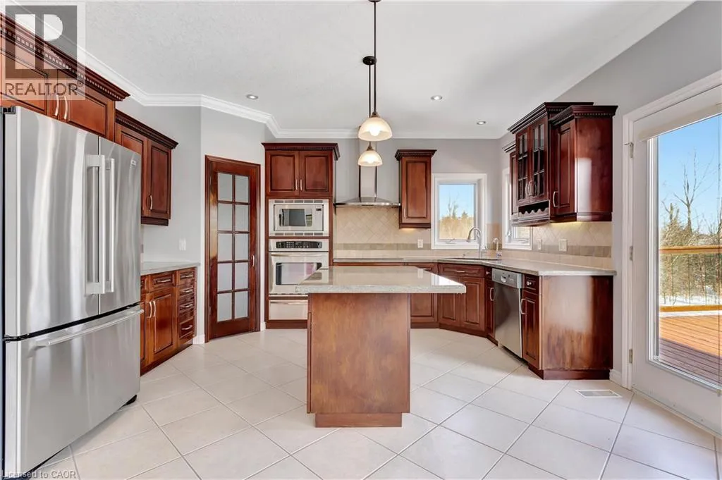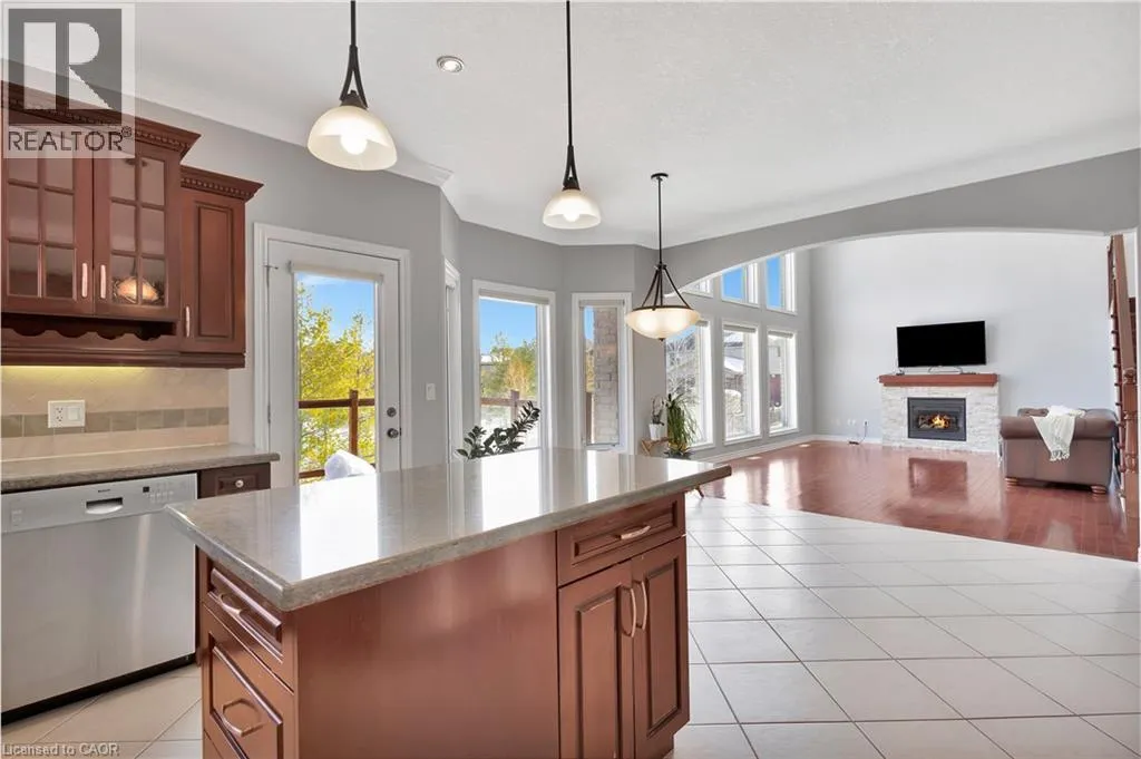 Spectacular Custom Home with Breathtaking Backyard Views Nestled in the heart of sought-after Laurelwood, this custom-built gem offers over5000 sq. ft. of meticulously maintained living space. A soaring two-story foyer welcomes you into the open-concept living and dining area,adorned with elegant decorative columns and gleaming hardwood floors. The private main-floor office is ideal for working from home. The gourmet eat-in kitchen is a chefâs dream, featuring a walk-in pantry, Center island, granite countertops, built-in stove and oven, stainless steel appliances, and ceramic flooring. Step outside onto the spacious 11' x 20' deck and take in the breathtaking views of the protected forest,conservation area, and pond. The expansive family room is open to above, boasting 18-foot ceilings, oversized windows, a cozy gas fireplace,and hardwood flooring. A solid wood staircase leads to the upper level, where you'll find four spacious bedroomsâeach with a walk-in closet. Theprimary suite is a peaceful retreat with serene backyard views, a spa-like ensuite featuring double sinks, a glass walk-in shower, and a jacuzzitub. One bedroom enjoys a private ensuite, while the other two share a Jack-and-Jill bathroom. The fully finished, above-ground lower leveloffers in-law suite potential, complete with a living room with a gas fireplace, two bedrooms, and a full bath. Oversized windows and a walkout toa concrete patio fill the space with natural light. A separate private entrance provides added convenience. Located on a quiet, family-friendlystreet, this exceptional home is just steps from scenic trails, Laurel Heights School, shopping, and transit. A rare findâprepare to be impressed! (id:27476)