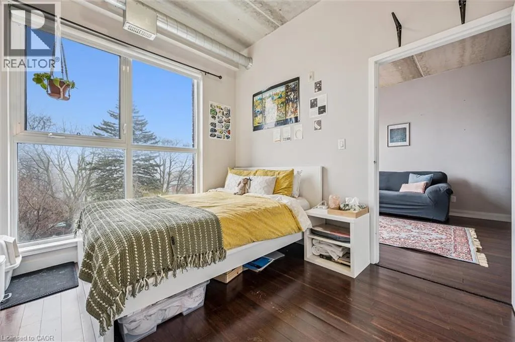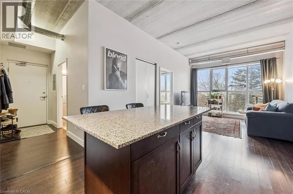 HWY 85 to Bridgeport Road, Bridgeport West to Regin Affordable Uptown Waterloo condo living â without sacrificing space, style, or location. This bright corner unit at BPR Lofts in Uptown Waterloo offers a rare opportunity to own a 2-bedroom, 2-bath condo in one of the city's most walkable neighbourhoods. Inside, youâll find exposed 10-foot ceilings and large East & South-facing windows that fill the open-concept living space with natural light and peaceful, tree-lined views of Princess Street. The well-designed layout includes a spacious kitchen with stone countertops and a large island, a bright primary bedroom with walk-in closet and ensuite bathroom access, a second full bathroom, and convenient in-suite laundry. This home is ideal for young professionals, first-time home buyers, or students who want to pay themselves instead of landlords - located just steps from Uptown Waterloo's restaurants, cafes, shops, festivals, and everyday amenities! Cycling enthusiasts will appreciate the buildingâs bike storage & nearby cycling trails that connect easily across the city. Prefer transit? The nearby ION LRT provides quick connections to both universities, while drivers will appreciate being just 5 minutes from the expressway. Condo fees include heating, cooling, water, and parking - you only pay hydro & internet. If youâve been searching for an affordable condo in Uptown Waterloo, this bright and well-located BPR Lofts unit offers the perfect blend of urban convenience and comfortable living. Book your showing today, and move in just in time for patio season! (id:27476)