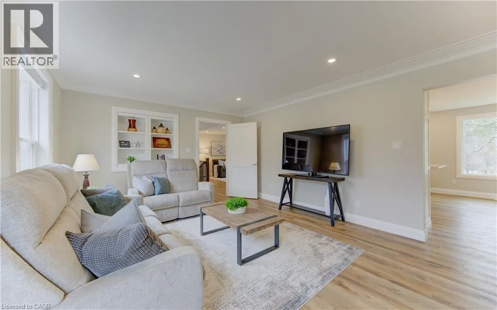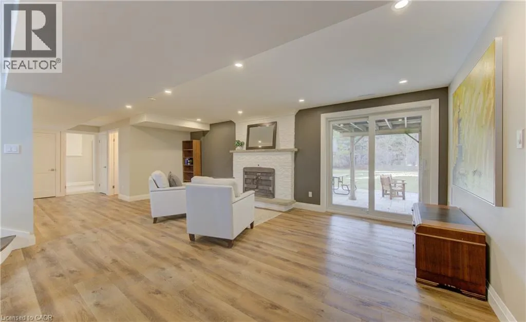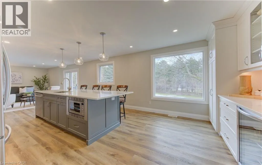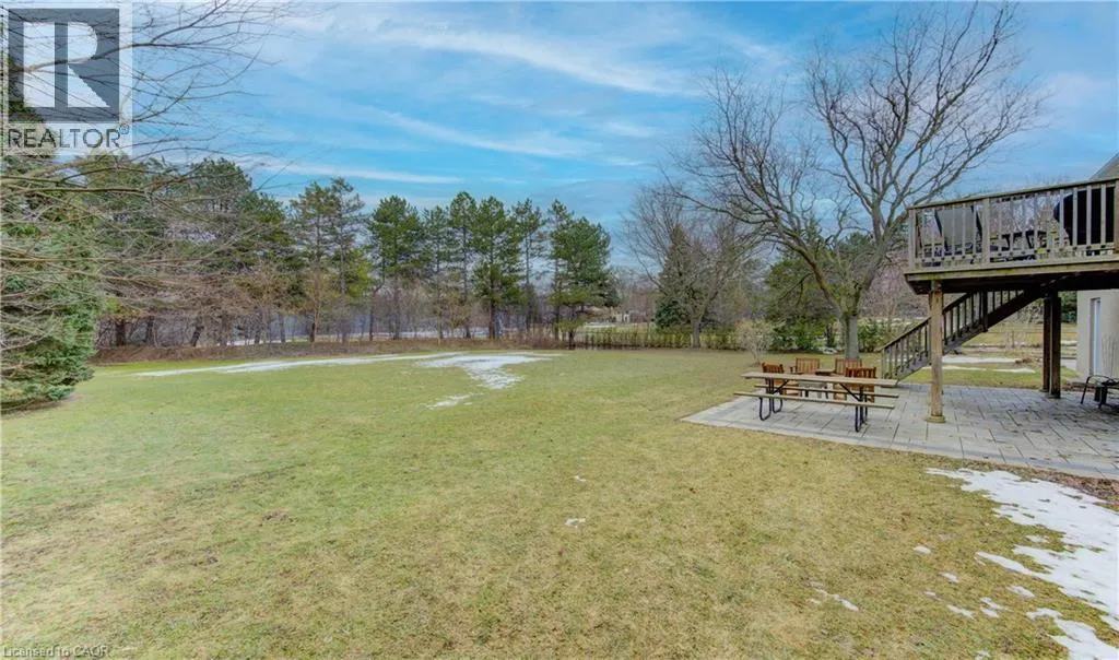 Fischer-Hallman Road to Warrington Drive Welcome to 395 Warrington Drive in Waterloo â a beautifully renovated raised bungalow set on an exceptional 1/2+ acre lot, an incredibly rare offering in the heart of the city. Lots of this size are almost unheard of within city limits, offering unmatched space, privacy, and long-term potential while still being close to everyday amenities. From the moment you arrive, the craftsmanship is evident. A formal foyer and custom handmade banister lead into a fully reimagined main level, taken back to the studs to create a bright, open-concept living space with large windows that flood the home with natural light. The stunning kitchen is designed for both daily living and entertaining, featuring a large island, stainless steel appliances, wine fridge, stylish backsplash, and ample storage. New sliding doors open to a deck overlooking the expansive backyard â a private outdoor retreat with endless possibilities. Luxury vinyl flooring runs throughout, complementing the thoughtfully redesigned primary suite with a walk-in closet and enlarged 3-piece ensuite. Two additional bedrooms and a beautifully updated 5-piece bath complete the main level, with all bathrooms fully remodeled! The fully renovated walk-out basement continues the quality with a 3-piece bath, additional bedroom, fireplace, laundry, and garage access. Major updates include roof with blown-in insulation, new gutters and fascia, updated windows, furnace, ducting, A/C (2021), and ERV (2025). The attached double car garage with its brand new garage doors (2026) and expansive driveway offer parking for up to 8 vehicles. Ideally located backing onto to public tennis courts â which convert to an ice rink in winter â and with a school bus stop conveniently located right out front. This move-in-ready home combines modern upgrades with an unbeatable location close to universities and Uptown Waterloo â a rare opportunity in Waterloo. (id:27476)