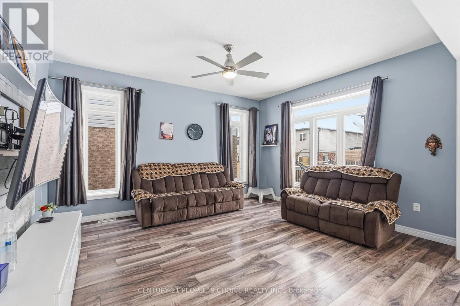 Eden Oak Trail / Fairway Rd N This exquisite two-story family residence, located at 72 Grand Flats Trail in Lackner Woods at Explorers, features four plus two bedrooms. The property immediately impresses with its distinguished stone pillars and inviting covered porch. Upon entering, the bright foyer and nine-foot ceilings establish an open and expansive atmosphere throughout the carpet-free main floor. This level includes a formal dining room, bathed in natural light, and a conveniently located laundry room. The kitchen is a highlight, boasting quartz countertops, stainless steel appliances, ample storage, a custom backsplash, white cabinetry with additional pantry space, and a generous quartz island with a breakfast bar.The upper level is enhanced by California shutters and a versatile landing area, ideal for a sitting room or home office. This floor comprises four spacious bedrooms, including a primary suite with a walk-in closet and a five-piece ensuite bathroom. Two additional bedrooms also benefit from walk-in closets. The fully finished basement expands the living space with two further bedrooms, a recreation room perfect for entertaining, and a fourth bathroom appointed with granite countertops.Strategically situated, this home offers exceptional accessibility to the Grand River, walking trails, Waterloo Airport, parks, and schools. Furthermore, it is merely a seven-minute drive to Highway 401, making this property a truly comprehensive offering. (id:27476)
