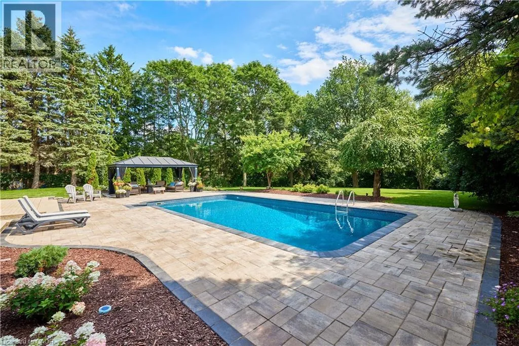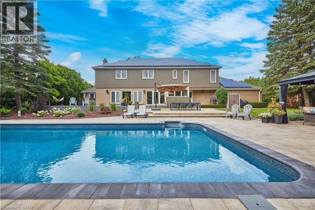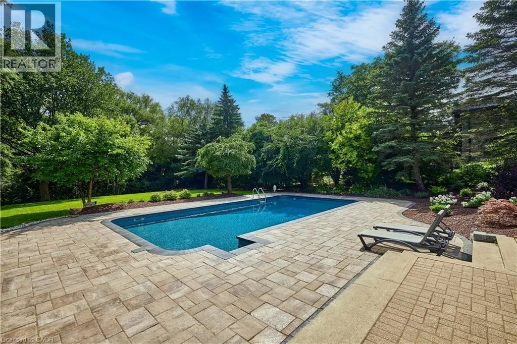 Old Abbey Rd Set on one of Waterlooâs most exclusive streets and backing directly onto the forest of Anndale Park, this executive Colonial Acres property offers a lifestyle rarely found within city limits. Positioned on a rare lot just shy of three-quarters of an acre, the setting delivers exceptional privacy, mature landscaping, and a daily connection to nature. Built by renowned local builder R. Frede Construction, known for quality craftsmanship and timeless design, this home carries a level of construction rarely found today. The backyard is designed for how people truly live and entertain, featuring an inground pool, expansive stone patio, and a covered gazebo that creates a true outdoor living space for summer evenings and relaxed gatherings. Inside, offering roughly 5,300 sq ft of finished living space, the home is defined by its scale, natural light, and thoughtful design. A chef-inspired kitchen anchors the main floor with a substantial quartz island, premium appliances, custom cabinetry, and a walk-in pantryâideal for both everyday living and entertaining. The adjoining family living areas are expansive and lined with windows, creating bright, open spaces that bring the outdoors in, complemented by two wood-burning fireplaces that add warmth and character. Upstairs, four generously sized bedrooms provide exceptional comfort, including a primary suite with a refined ensuite and heated floors, along with a secondary ensuite ideal for guests or older children. The lower level extends the lifestyle with space for recreation, fitness, and a private sauna. An oversized double garage and wide driveway complete the home. A rare opportunity combining land, privacy, and location, just minutes to RIM Park, Grey Silo, universities, and key amenities. (id:27476)