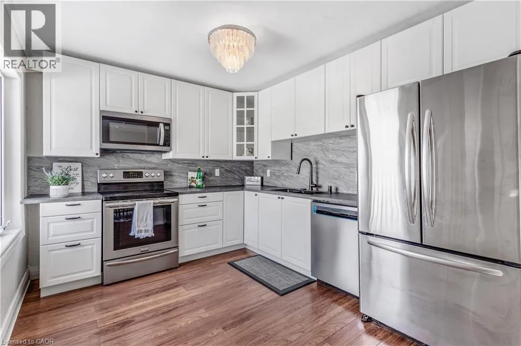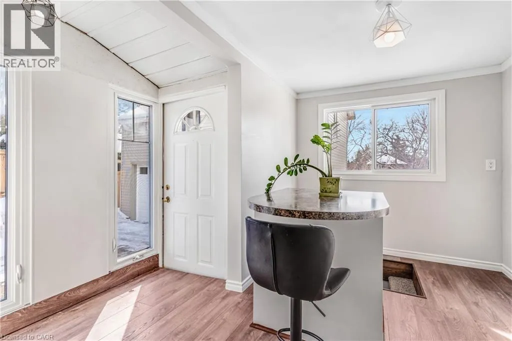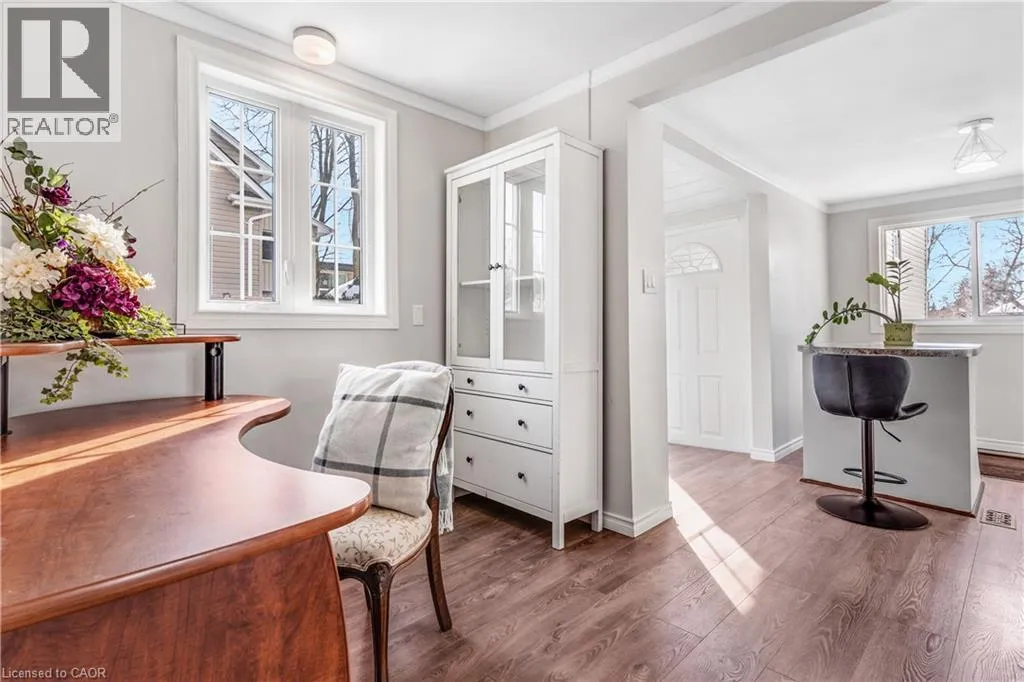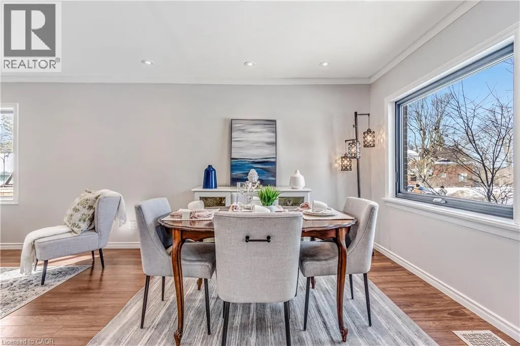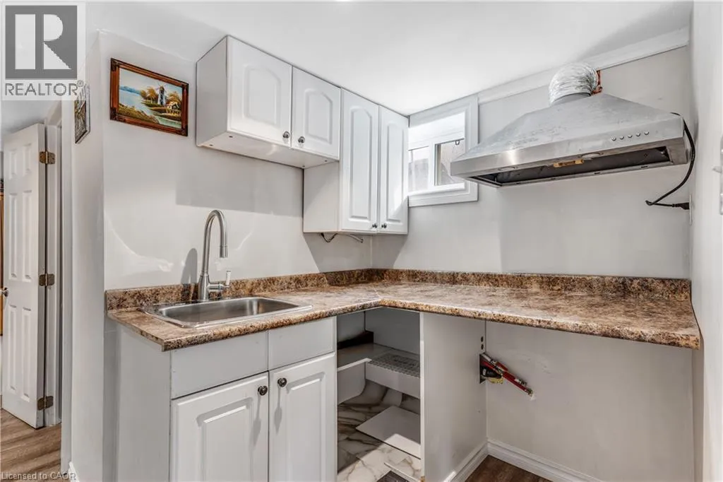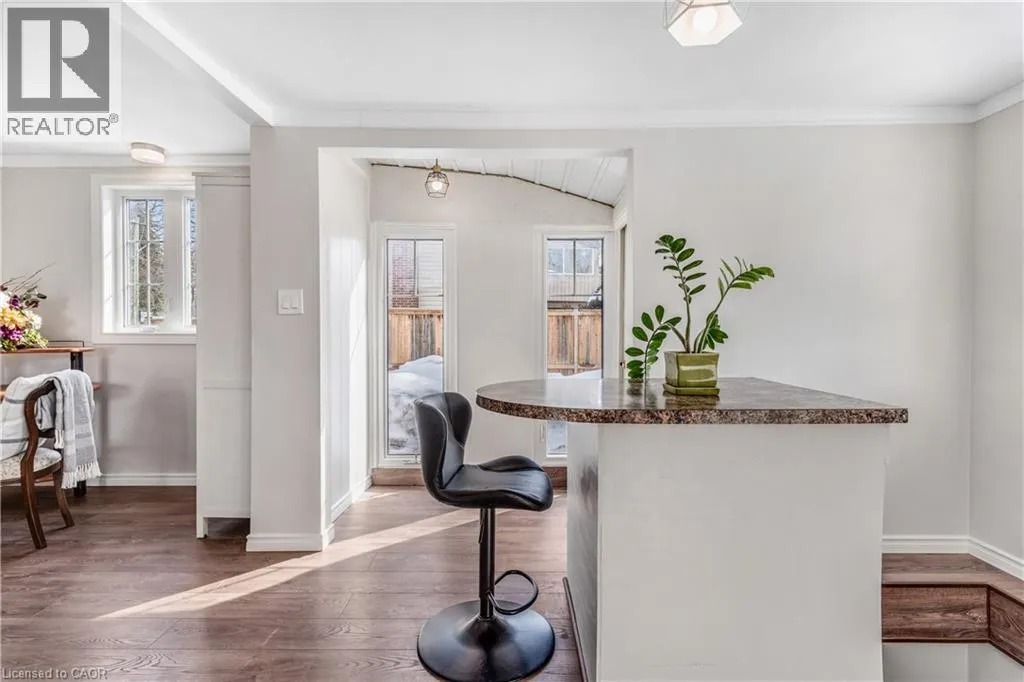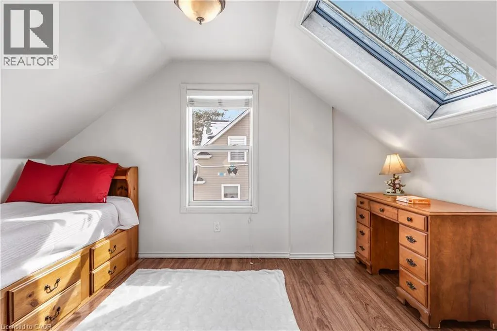 Between Bridgeport Rd. E. and Erb St. E. Charming 1½-storey home offers exceptional versatility for families, investors, & developers alike. Filled with natural light from large windows throughout, the property sits on a generous lot & features a separate 2-car garage, ample parking, & valuable RMU-20 zoning that opens the door to future development potential. The main floor is carpet free & showcases a beautifully updated kitchen that opens into the open-concept living area. This level also includes a main floor bedroom, an office space, & an updated 4-piece bathroom. Upstairs, youâll find 2 additional bedrooms with large windows & skylights that enhance the bright, airy feel. A second 4-piece bathroom completes the upper level. The walkout basement adds significant value with a full in-law setup, including a living room, large bedroom, kitchen, 3-piece bathroom, laundry room, utility room, & cold storage. Outside, the detached 2-car garage, with power, has an upper floor & a rear door leading to a deck, presenting an excellent opportunity for conversion to an accessory dwelling unit (ADU). The driveway easily accommodates 3 vehicles, & the large yard is complemented by updated side fencing, providing privacy & space for outdoor enjoyment. Located in Waterlooâs desirable North Ward, just minutes from Uptown Waterloo, this property benefits from a vibrant urban setting with cafés, restaurants, boutique shops, parks, & year-round community events nearby. It is situated directly on bus routes, making it ideal for students, & offers quick access to major roadways, including Highway 7/8 & Highway 401 for commuters. Everyday conveniences such as Schools, Walmart, Sobeys, & extensive shopping amenities are all close at hand. With its flexible layout, income potential, generous lot, & prime location, this is a rare opportunity to secure a property that works equally well as a family home or a strategic investment. Donât miss out & book your showing today (id:27476)