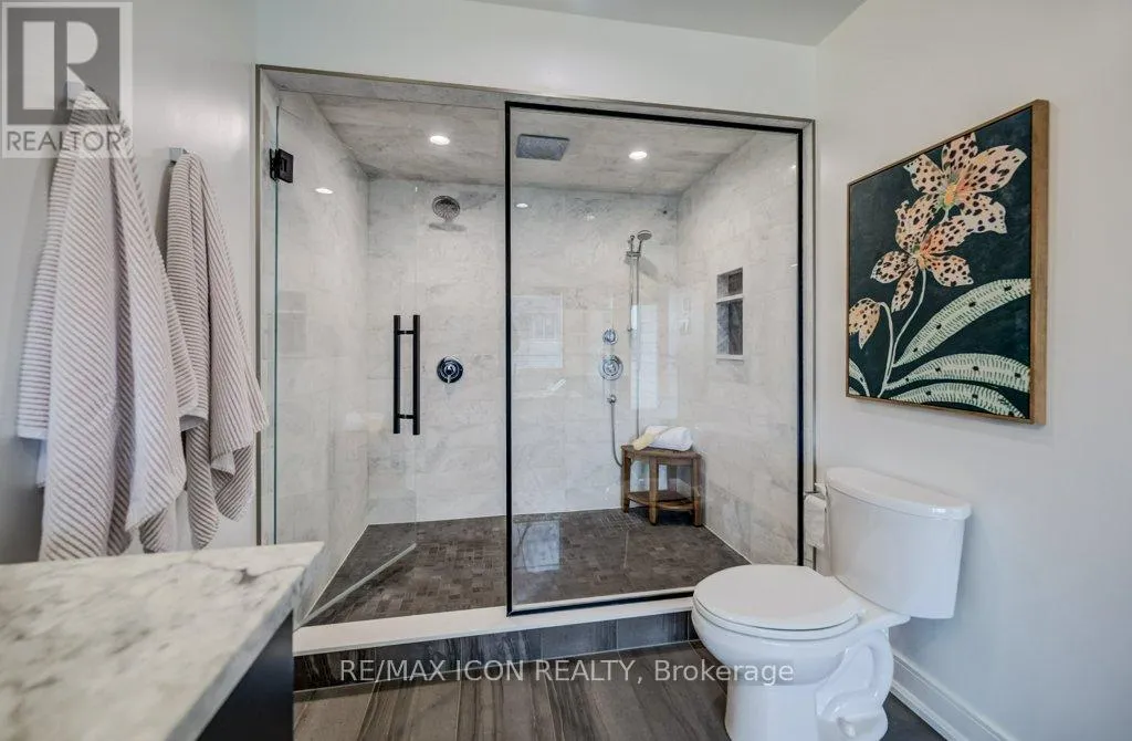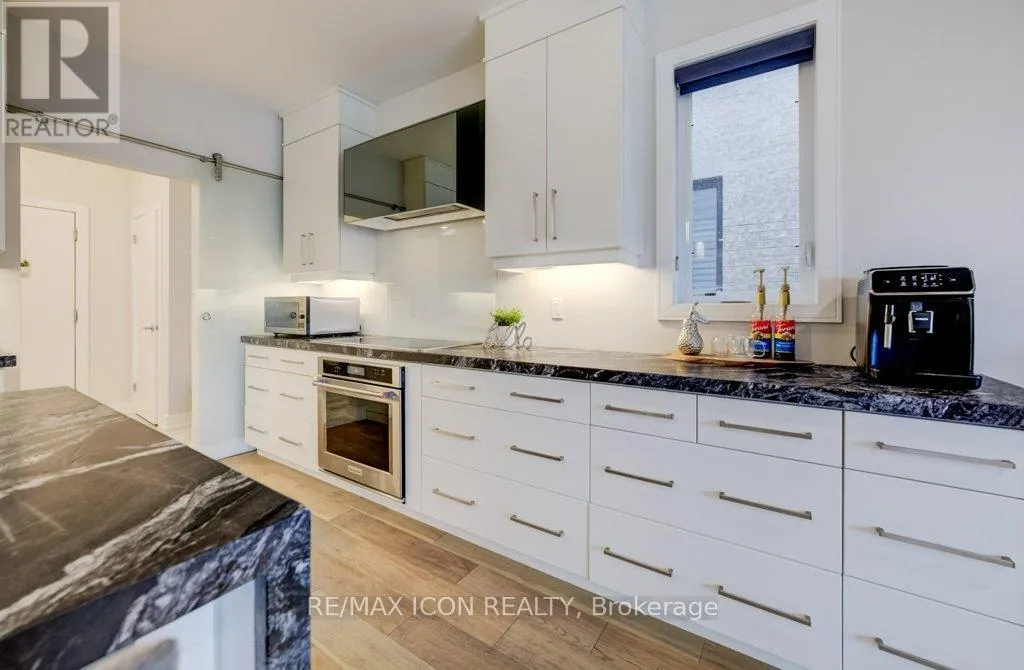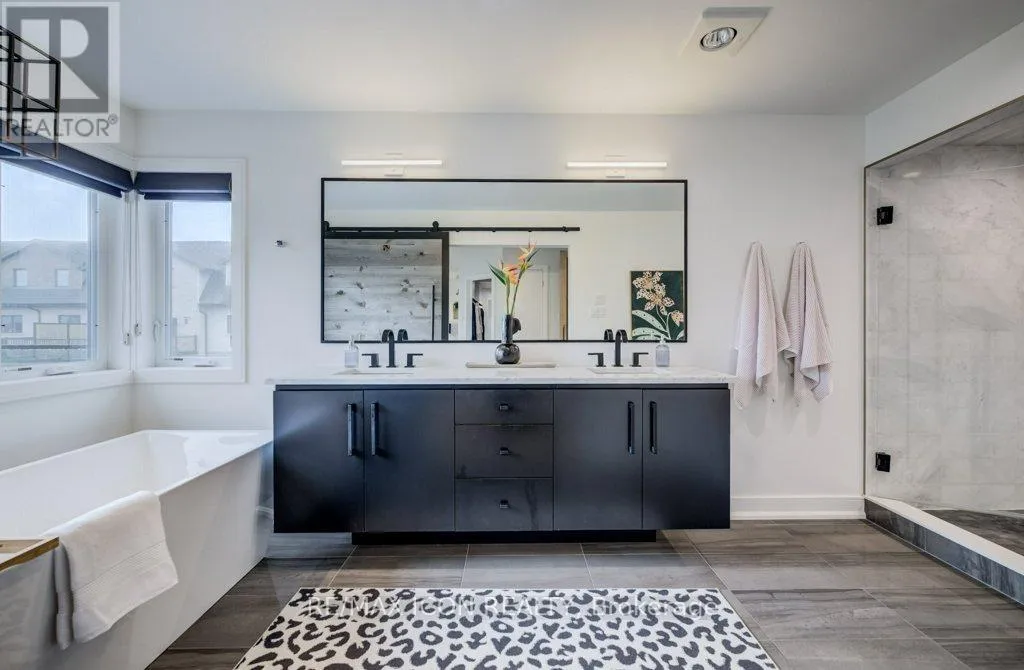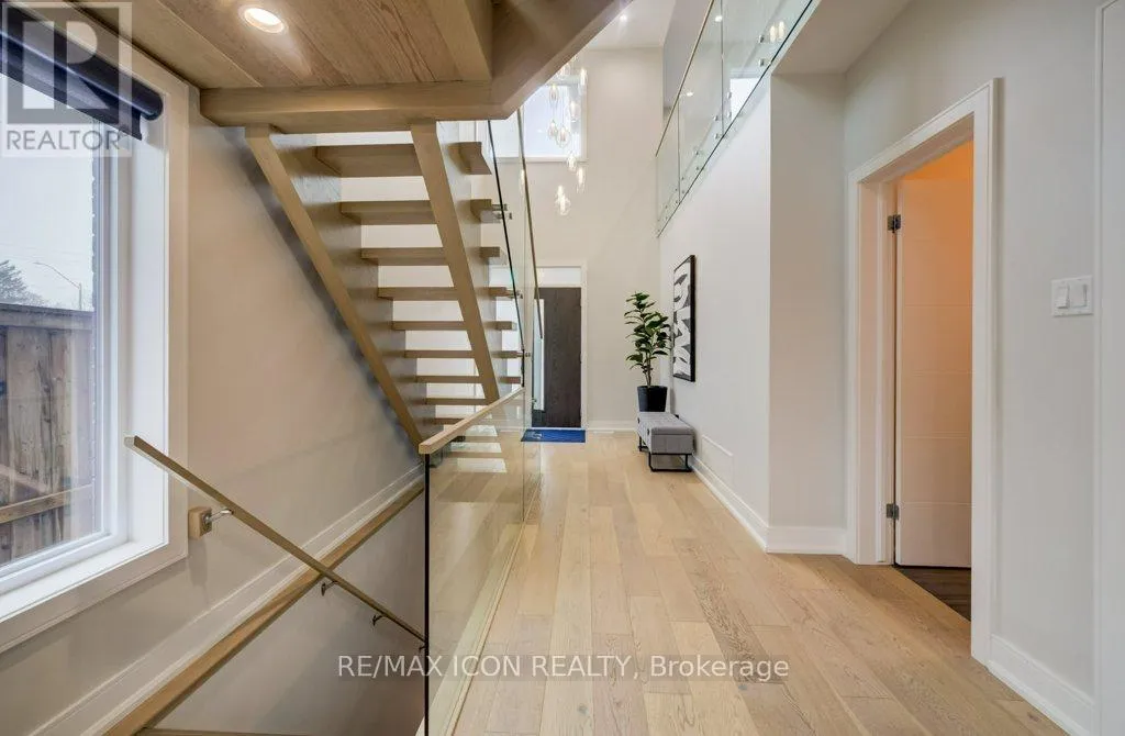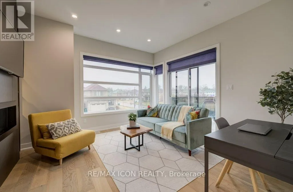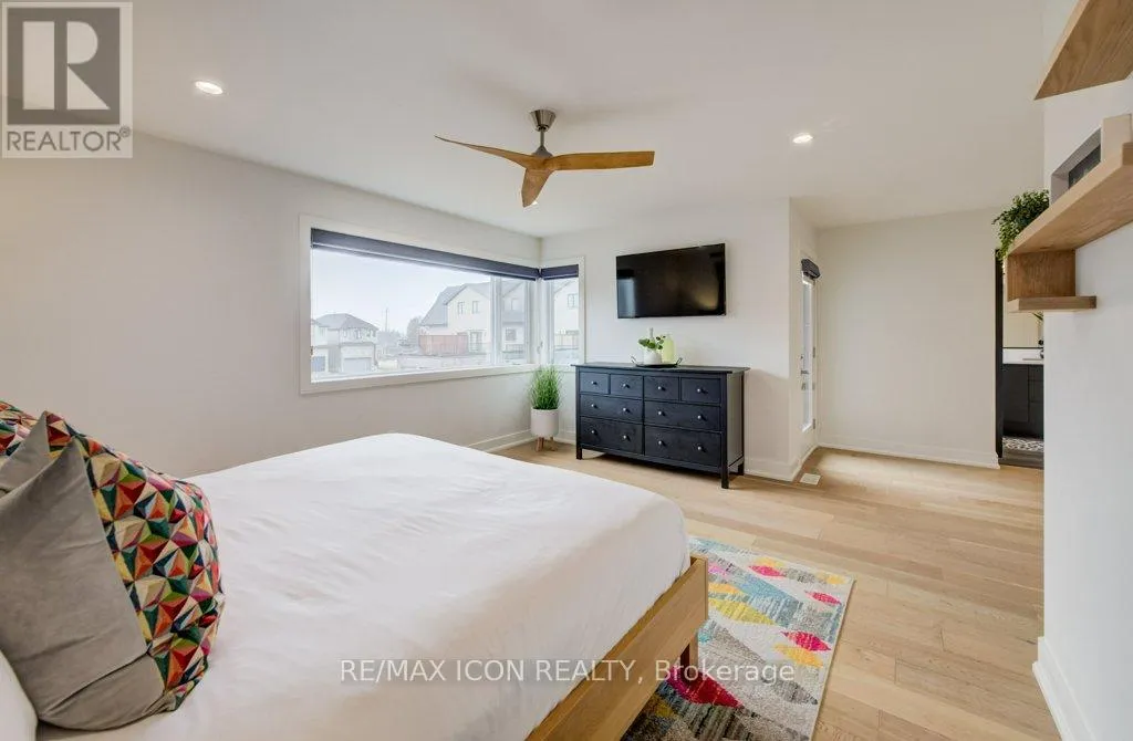 Cross Streets: Woolwich St. ** Directions: University Ave E to Woolwich St to Carriage Way. Custom-built by award winning custom home builder John Welton of Sunvale Homes this modern masterpiece in Waterloo's prestigious Kiwanis Park neighborhood offers a lifestyle defined by luxury and convenience. Located just minutes from Highway 85 and premium amenities, the home greets you with a sophisticated open-concept design with seamless flow. The breathtaking foyer features a soaring ceilings and a striking floating staircase with custom glass railings. The home's open-concept heart flows into a chef-inspired kitchen anchored by leathered granite waterfall countertops, a sensor-activated faucet, and stainless appliances. Adjacent, a sleek laundry suite with garage access is cleverly tucked behind a custom glass sliding door. The living room, anchored by a gas fireplace, serves as a gathering hub that transitions seamlessly to the dining room and covered outdoor porch with privacy screen. Enter the primary suite through a custom oversized wooden swing door to find a retreat featuring a private balcony, a sprawling walk-in closet, and a spa-inspired 5-piece ensuite boasting a massive three-shower-head walk-in shower, a deep soaker tub, and elegant marble finishes. A loft, complete with gas fireplace, custom built ins and tinted privacy-glass balcony, offers a secondary lounge or office/flex space while two additional plush bedrooms provide ample comfort for family or guests. The finished basement serves as the ultimate entertainment hub, complete with a projector and screen, a full bathroom, and a spacious fourth bedroom with walk in closet and custom storage. No detail was spared in the finished garage which functions as a showroom or gym with integrated heating, an EV charger, recessed pot lights, and rubber flooring. From the sleek architectural lines to the trails of the Grand River, Kiwanis park with outdoor pool, dog park and more just steps away, this 4 bed, 3.5 bath home represents a rare opportunity to own a work of art in a premier community. (id:27476)