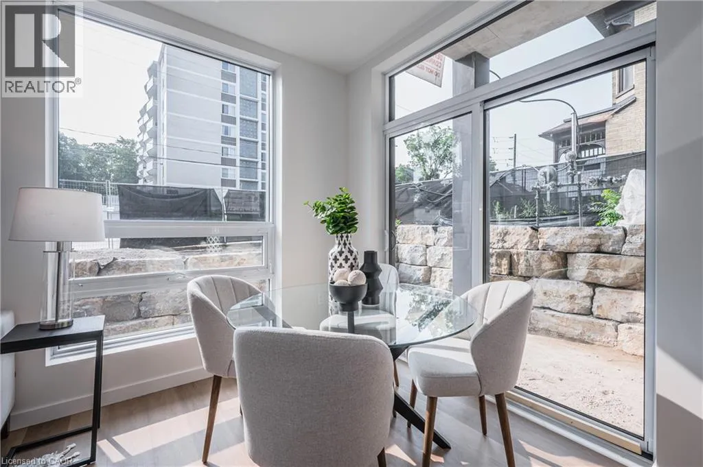 KING AND UNION STRIDE on Union! Welcome to elevated living in Mary Allen, walkable to Uptown Waterloo and Belmont Village. This upscale purpose-built rental building is finished to the highest quality. The 1 bed, 1 bath John floor plan is an executive corner unit featuring luxury finishes, 5-pc cheater ensuite, and walk-in closet. This suite is outfitted with luxury vinyl plank, splendid noir quartz countertops in the kitchen, along with black lower cabinetry and wooden style upper cabinetry, anatolia davenport ash tile in the bathrooms, white subway tile, and sleek black hardware throughout. Steps from Mary Allen Park, the Spur Line trail, Vincenzo's boutique grocer, the LRT, LCBO, Grand River Hospital, and all the amazing restaurants and retail you would come to expect: Arabella, Janet Lynn's Bistro, Casa Rugantino, Beertown, and so much more - an amazing opportunity for spacious living in an unbeatable location! Utilities & parking are extra, high-speed Internet included. Get in touch for more information! Photos are of the model suite, showing similar finishes. (id:27476)