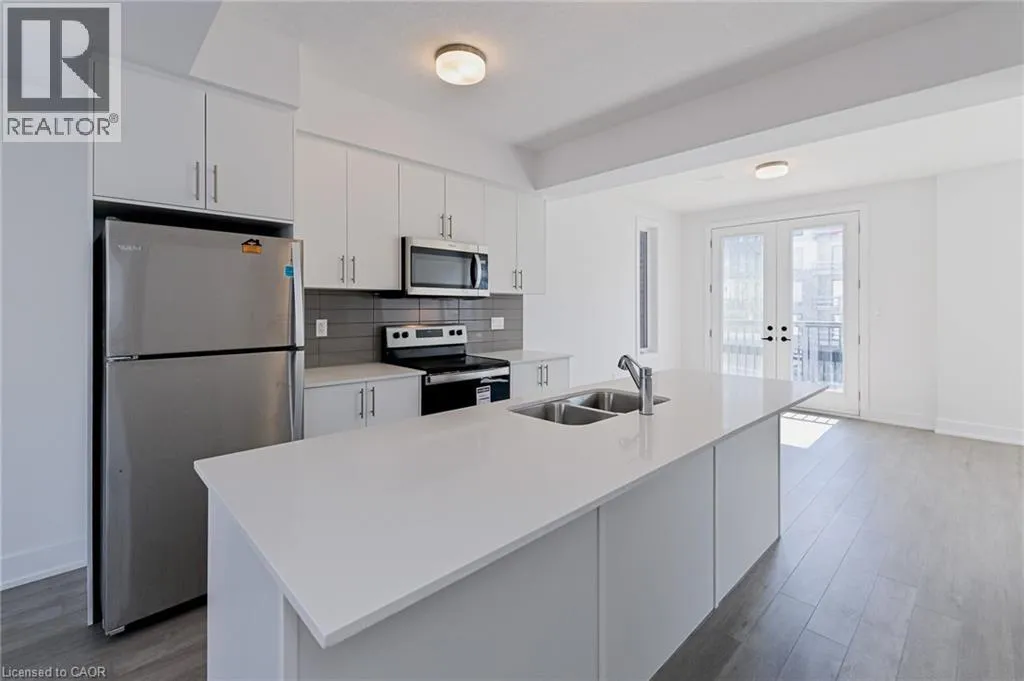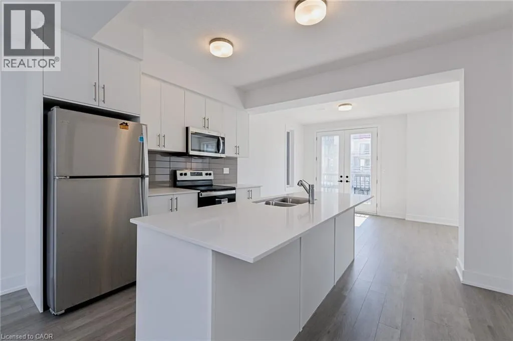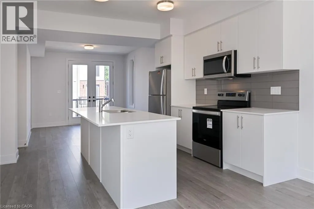 Union St E between Moore Ave S and Herbert St Needing an upgrade in your life! Be the first to call Spur Line Towns your home! This 1856 sq ft stunning 3 bedroom, 3 bath luxury townhouse offers 1,856 sqft of bright and airy living space. The main floor features 9-foot ceilings, quartz countertops, stainless steel appliances, huge breakfast island, luxury vinyl plank flooring, in-suite laundry/utility room and your own private terrace off of your living room. Moving upstairs, youâll find 3 generously sized bedrooms, including a primary suite complete with walk-in closet, ensuite bath and a second private terrace. This unit comes with parking for 2, including a private garage with direct access into the unit. The location canât be beat! Within walking distance to the LRT, Uptown Waterloo & Downtown Kitchener, Google & the Tech Community, restaurants, the LRT takes you to both Universities in 10 minutes, shopping and parks...Not to mention, the Spur Line trail right next door! Located in a comfortable safe established Waterloo neighbourhood (id:27476)
